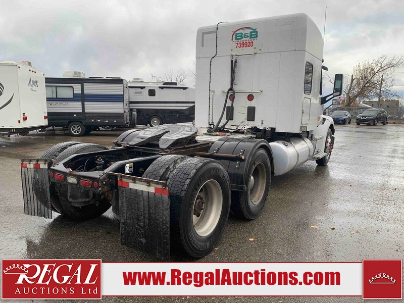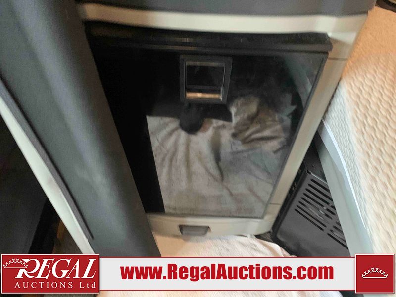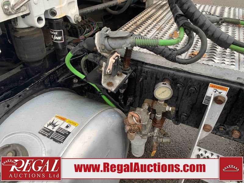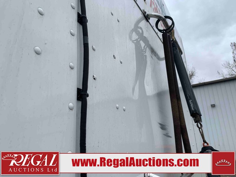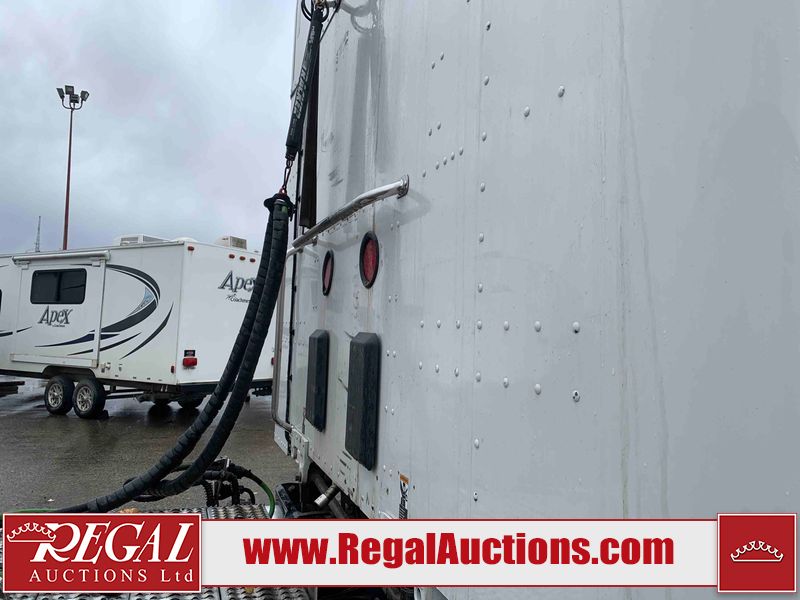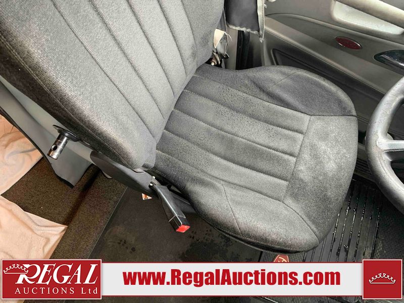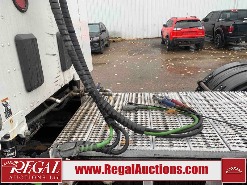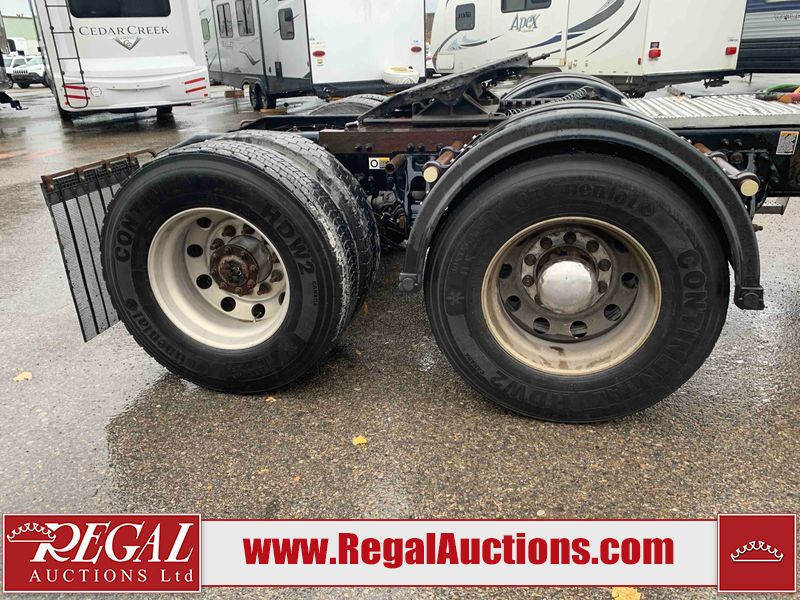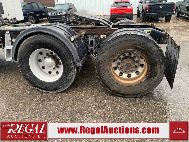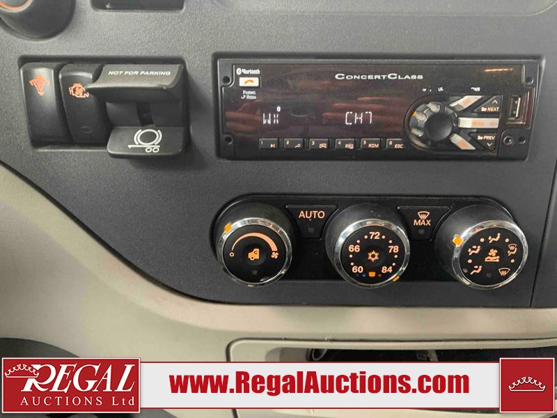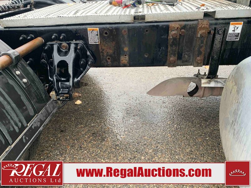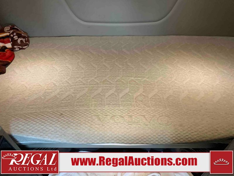 This unit is a 2019 Peterbuilt 579 single sleeper tandem axle Highway tractor. The odometer shows 870,524 km and 14,784 engine hours. It’s GVWR is 53,200 pounds. It’s CV is 04/2026. The interior is dirty. The driver and passenger seat are worn. Both the driver and passenger seat armrest are disconnected and missing. The steering wheel is worn. The bed is stained. The left cab light is missing. There are scratches and scuffs on most panels. It is equipped with a bed, refrigerator, rear climate control, stereo system, and a CB radio. The front end is showing scratches and scuffs. The front bumper has a piece missing. The engine cover has peeling paint. Both front doors, side and rear cab are showing scratches, scuffs, and dents. The rear part of the frame has a dent. This unit starts and runs without a boost. This unit is power by a Paccar MX13 12.9 L six cylinder turbo diesel engine and an automatic transmission. the tires are mounted to steel rims and appear to be in good enough condition for use. This unit is equipped with air brakes, air suspension, rear locking axles, and a PTO kit. It has a front axle of 13,200 pounds and a rear axle of 40,000 pounds.