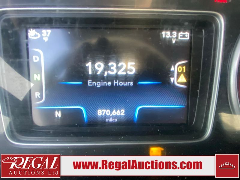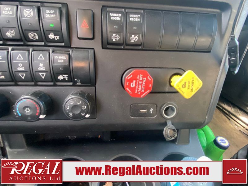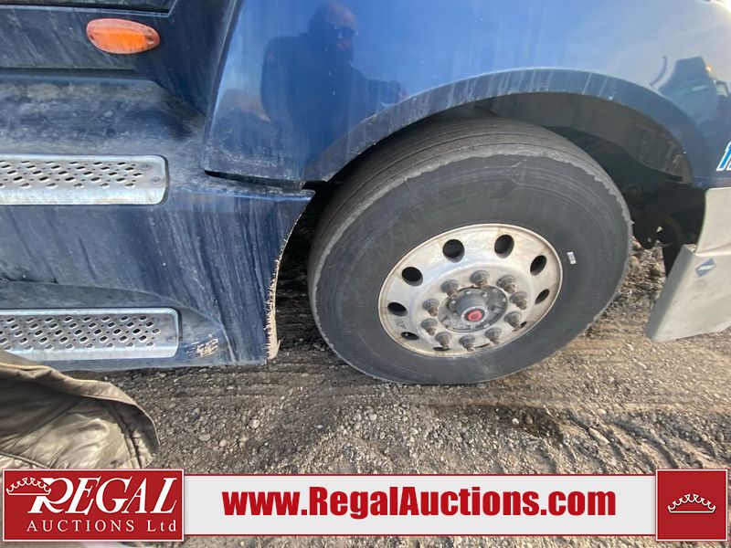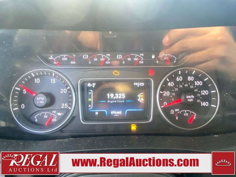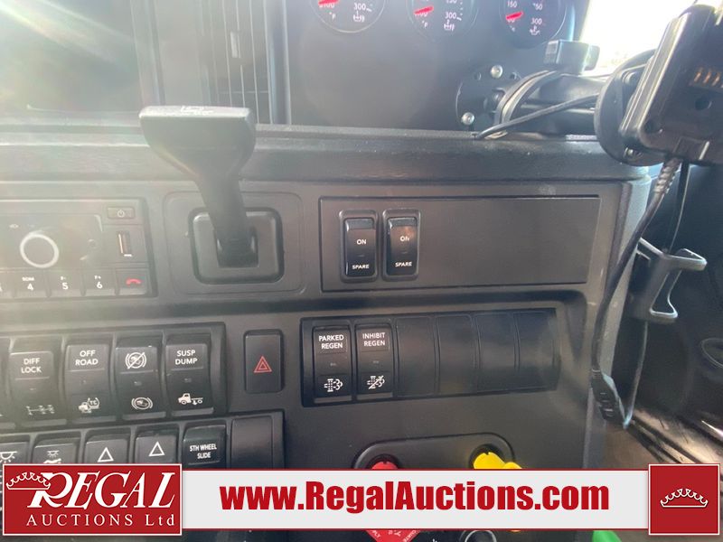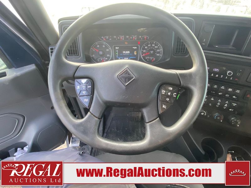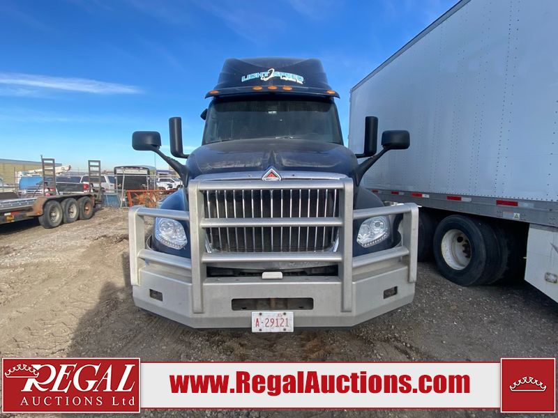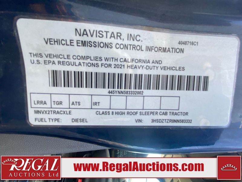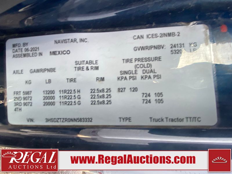 This unit is a 2021 international LT265 6 x 4 dual sleeper tandem axle highway tractor. The odometer shows 1401130km and 19,325 engine hours. It’s GVWR is 53,200 pounds. It has a CVIP of 08/2026. The interior is dirty. Both seats are stained. Both armrest are torn. The driver door controls are missing. The upper bunk is worn. This unit is equipped with a stereo system, climate controls, refrigerator, and an interior camera. All panels are showing chips, scratches, and scuffs. The engine cover is cracked. The grill has peel and chrome. Both front mirrors have plastic missing. The driver door mirror has plastic missing. The driver door, and both cap sides have dense. The rear cab has peeling paint. This unit starts and runs without a boost. This unit is powered by a Navistar A26 12.9L six cylinder turbo diesel engine and an automatic transmission. The check engine light is on. The tires are mounted too our rims and appear being good enough condition for use. This unit is equipped with air brakes, air suspension, locking differential, sledding fifth wheel, and rear sliding axles. It has a 13,200 pound front axle and 40,000 pound rear axles.
