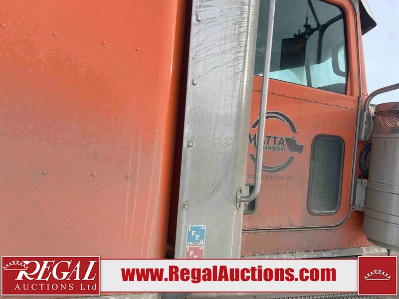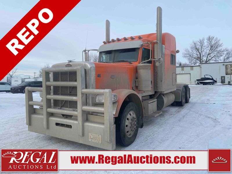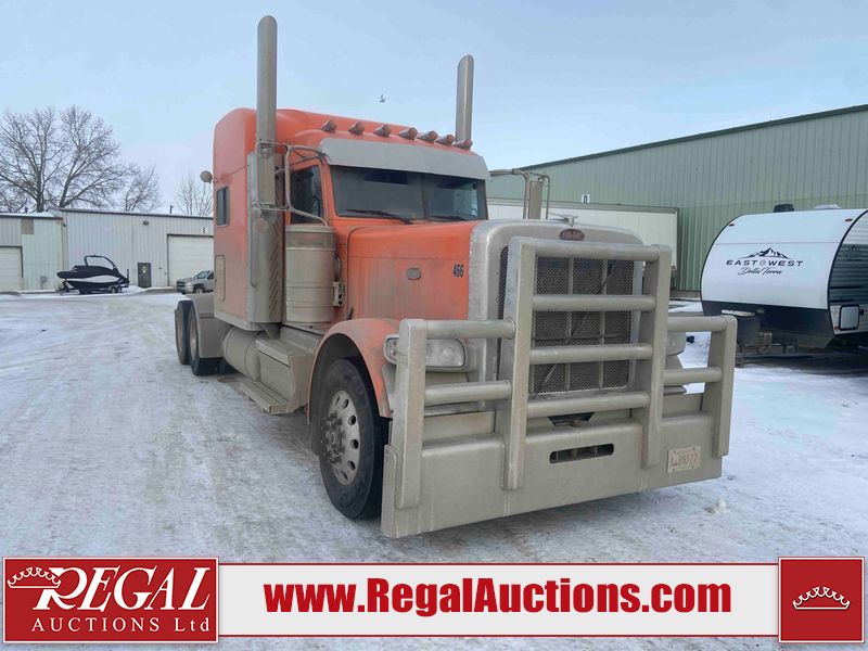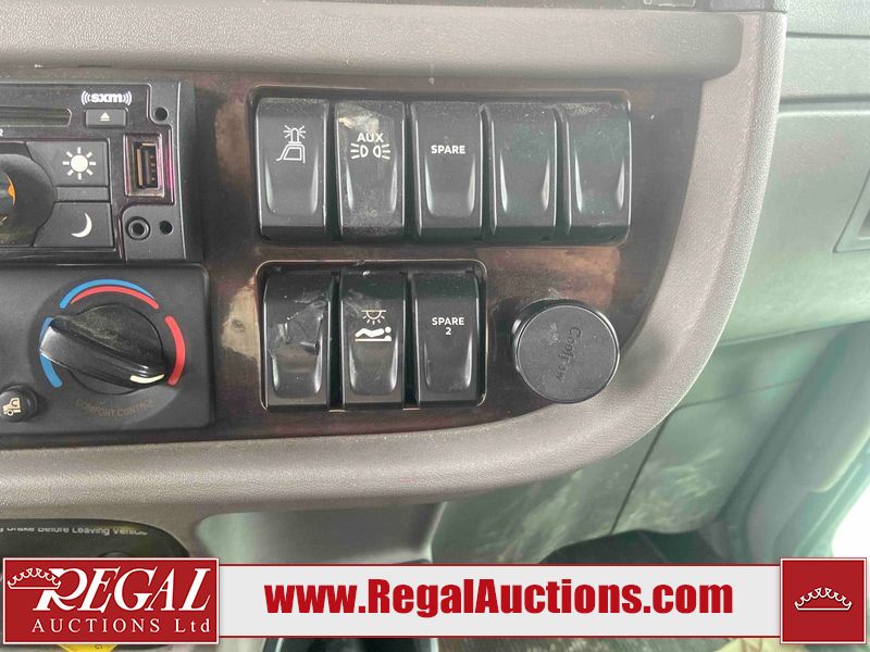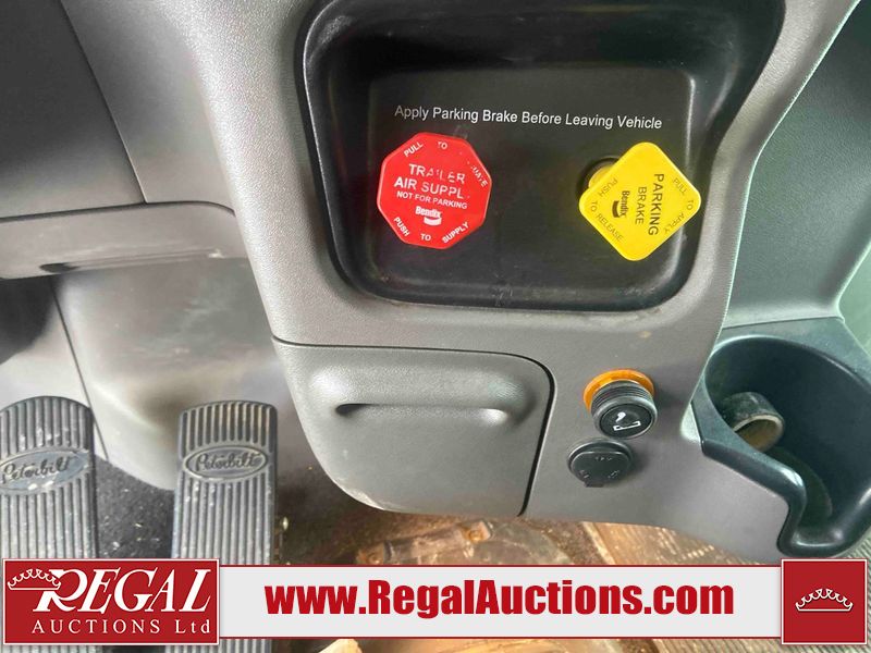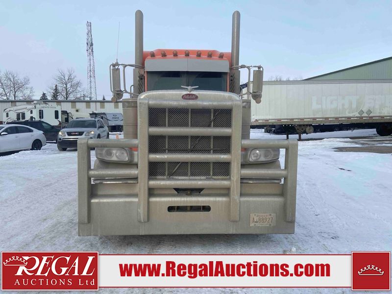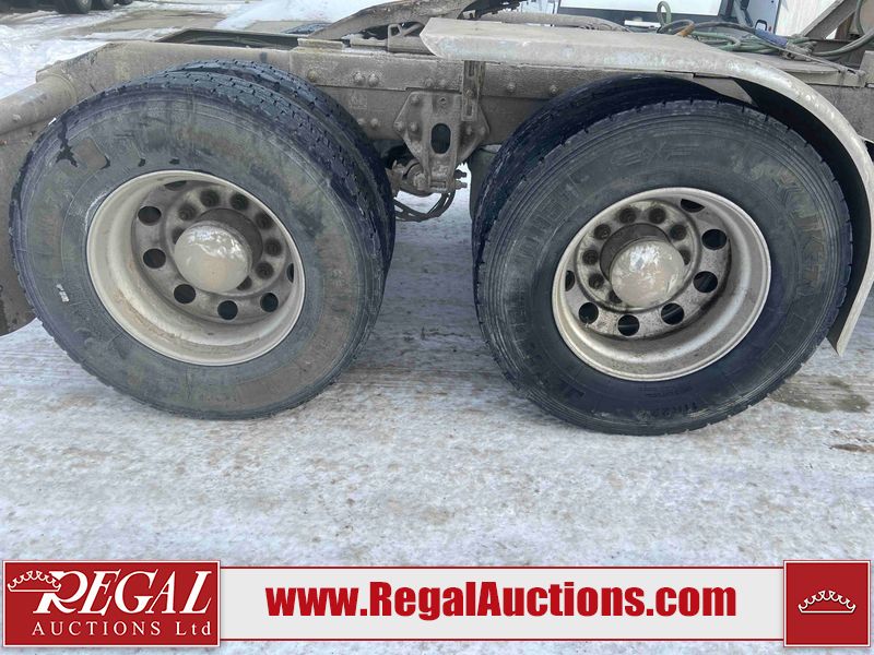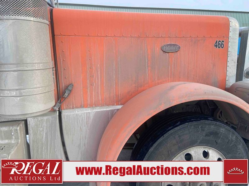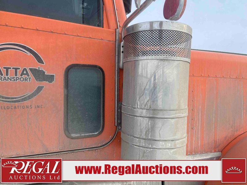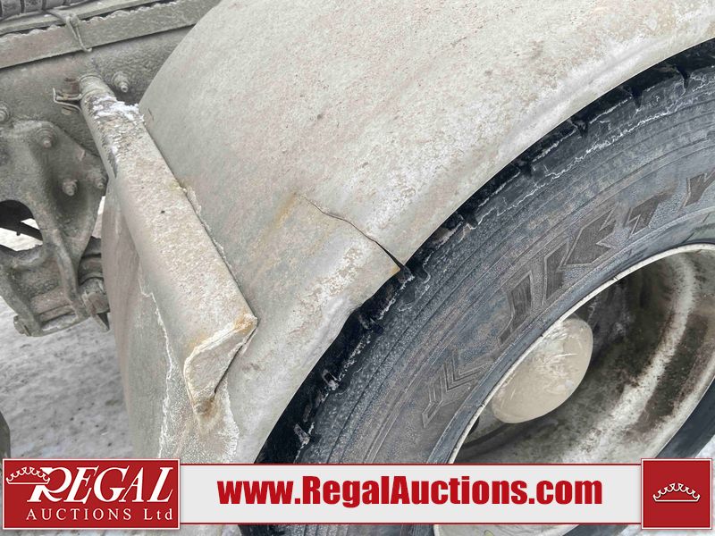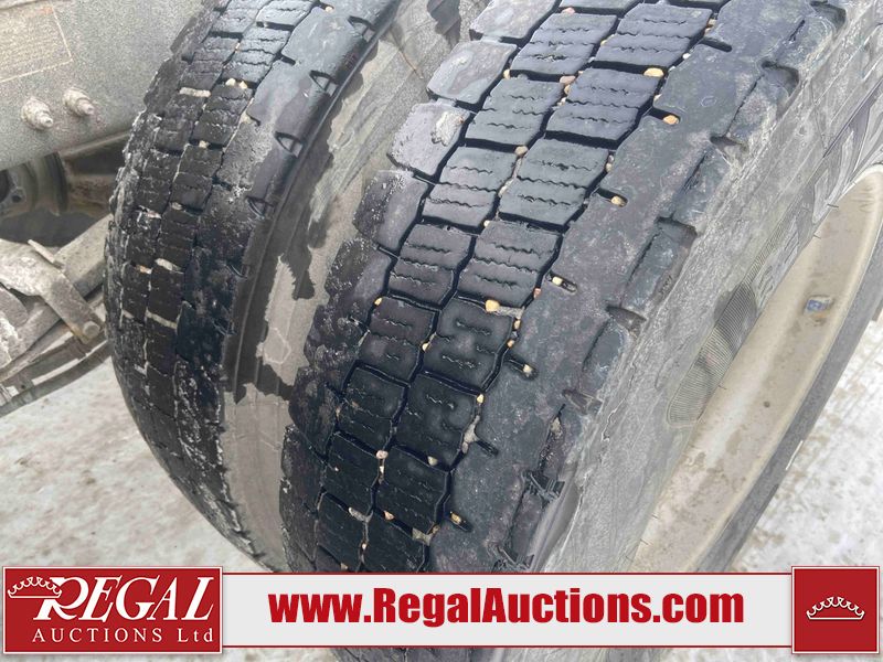 This unit is a 2023 Peterbilt 389 mid roof dual sleeper highway tractor. The odometer reads 528,674 km and 8256 engine hours. It’s GWR is 53,200 pounds. It has a CVP of 05/2026. The interior is dirty. The driver seat is torn. The bed is stained and worn. Some plastics are scuffed. This unit is equipped with rear climate control, refrigerator, and ACB radio. This unit is dirty, not all damages can be determined. The front crash bar is chipped. All panels are showing scratches and scuffs. The cab guard is cracked and dented. The left rear fender is cracked. This unit starts and runs without a boost. This unit is powered by a Cummins X15 14.9L 6 cylinder turbo diesel engine with a 18 speed Eaton transmission. The tires are mounted to alloy rims and appear to be in good enough condition for use. This unit is equipped with Air suspension, air, brakes, and rear sliding axles. It has a 13,200 pound front axle and a 40,000 pound rear axles.