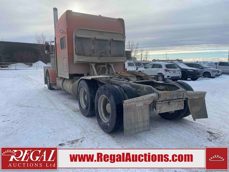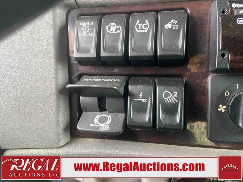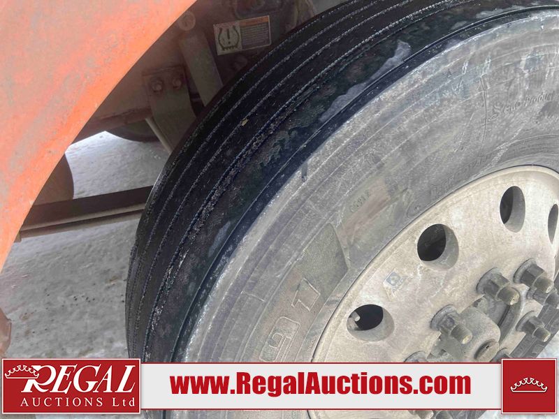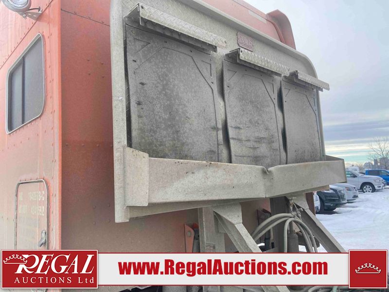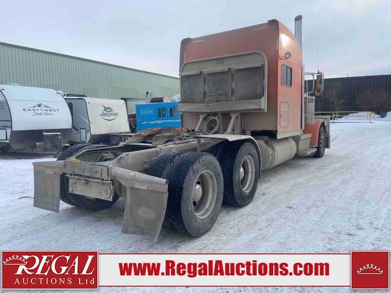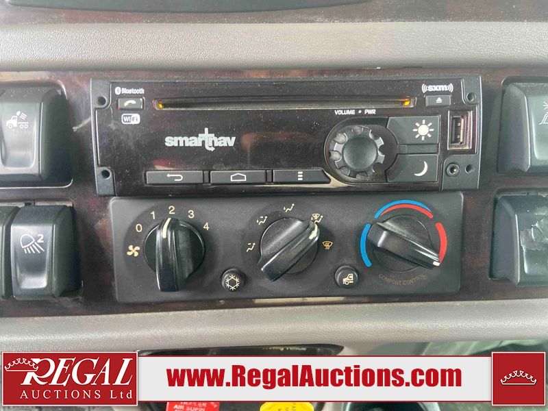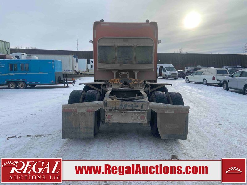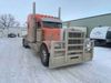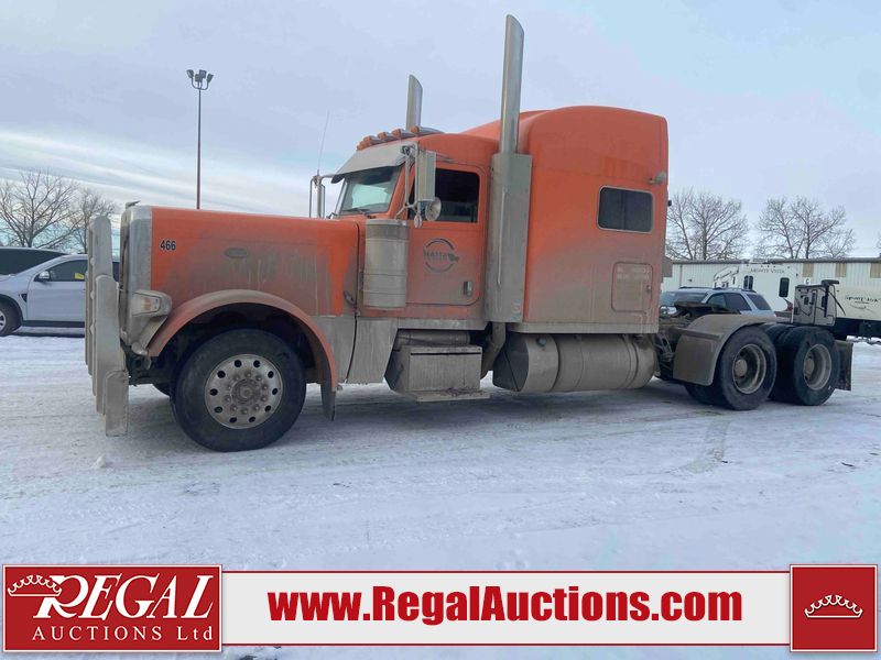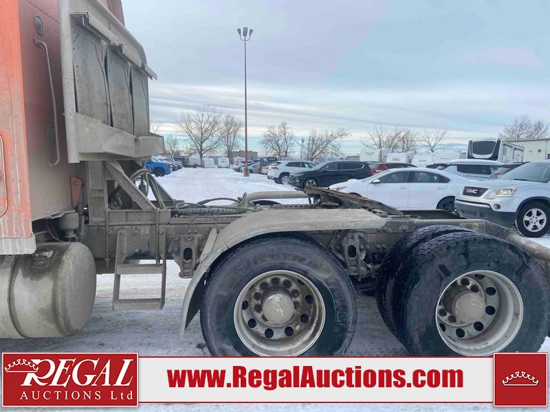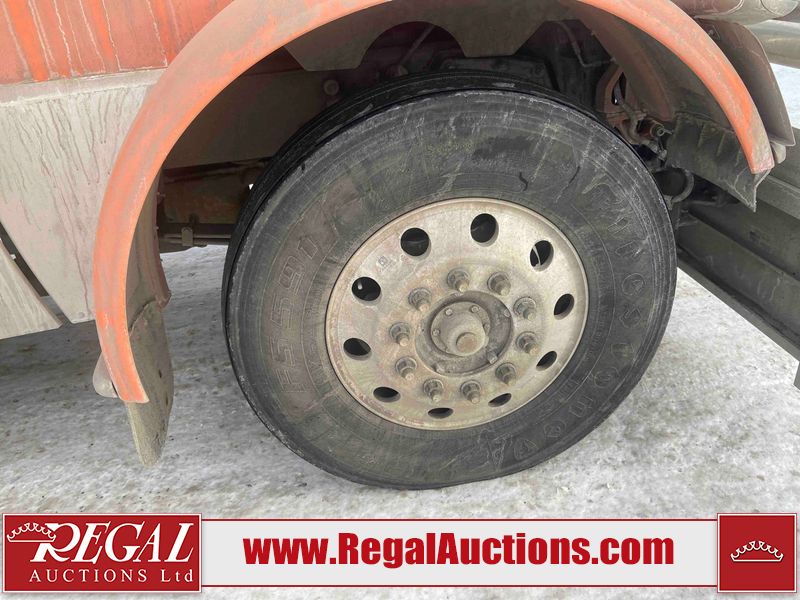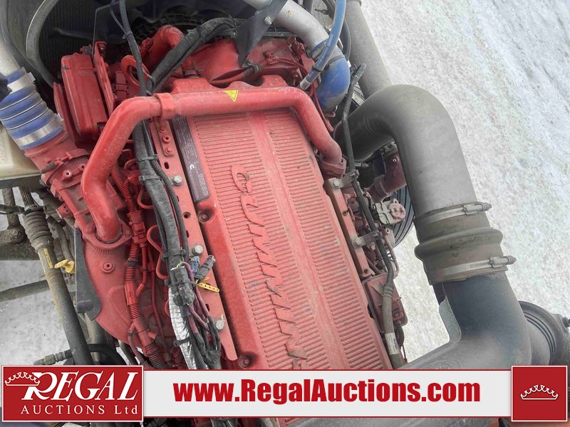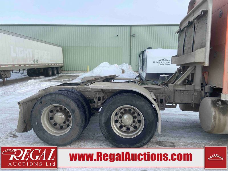 This unit is a 2023 Peterbilt 389 mid roof dual sleeper highway tractor. The odometer reads 528,674 km and 8256 engine hours. It’s GWR is 53,200 pounds. It has a CVP of 05/2026. The interior is dirty. The driver seat is torn. The bed is stained and worn. Some plastics are scuffed. This unit is equipped with rear climate control, refrigerator, and ACB radio. This unit is dirty, not all damages can be determined. The front crash bar is chipped. All panels are showing scratches and scuffs. The cab guard is cracked and dented. The left rear fender is cracked. This unit starts and runs without a boost. This unit is powered by a Cummins X15 14.9L 6 cylinder turbo diesel engine with a 18 speed Eaton transmission. The tires are mounted to alloy rims and appear to be in good enough condition for use. This unit is equipped with Air suspension, air, brakes, and rear sliding axles. It has a 13,200 pound front axle and a 40,000 pound rear axles.