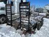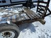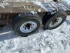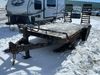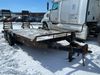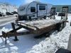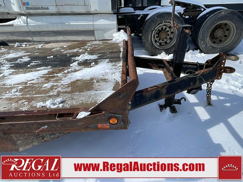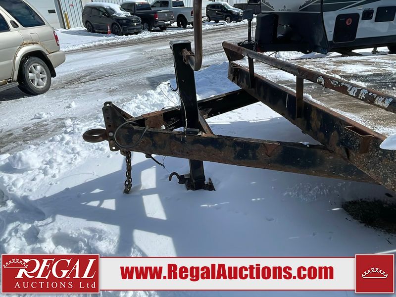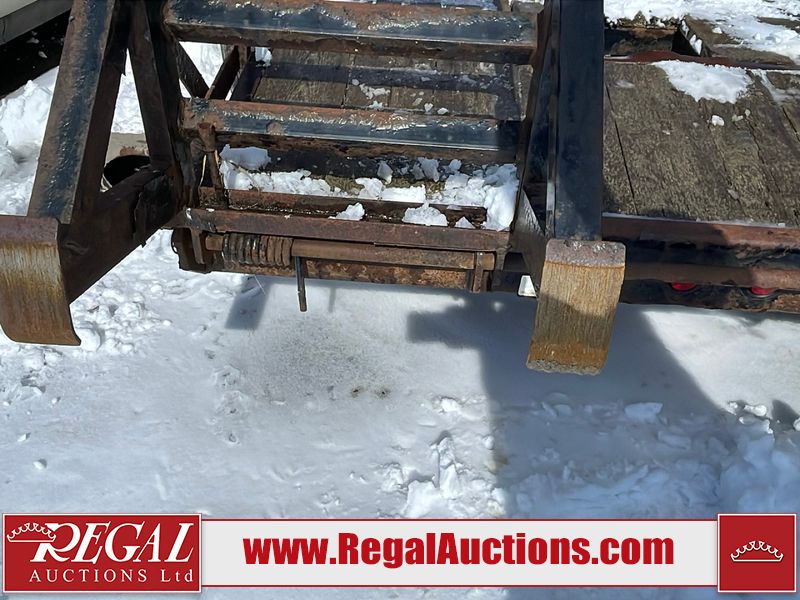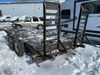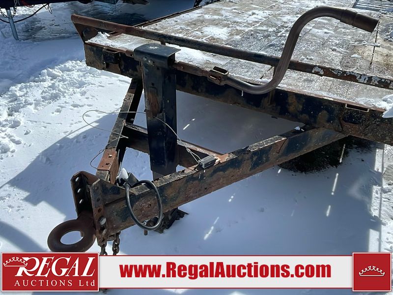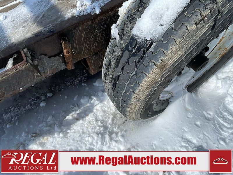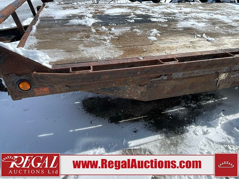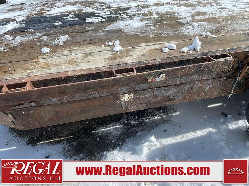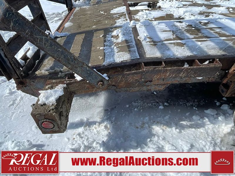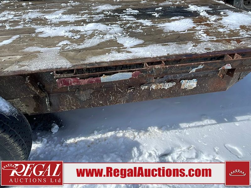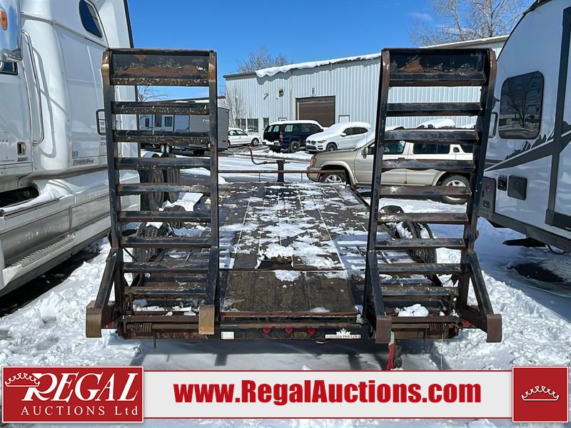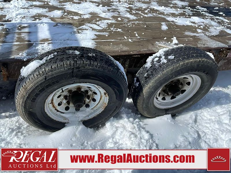 This unit is a 16FT Canada trailers homemade model Tandem axle flatbed utility trailer. Its GVWR is 11,308 pounds. The V.I.N cannot be made displayed, one will need to be assigned. The deck is made of wooden boards. All panels have peeling paint. Both the left and right side have loose wiring. The left rear brake light bracket is gouged, both rear brake lights are missing. This unit is equipped with leaf spring suspension. The tires are mounted to alloy rims and be good enough condition for use. This unit is equipped with fold down ramps.