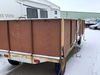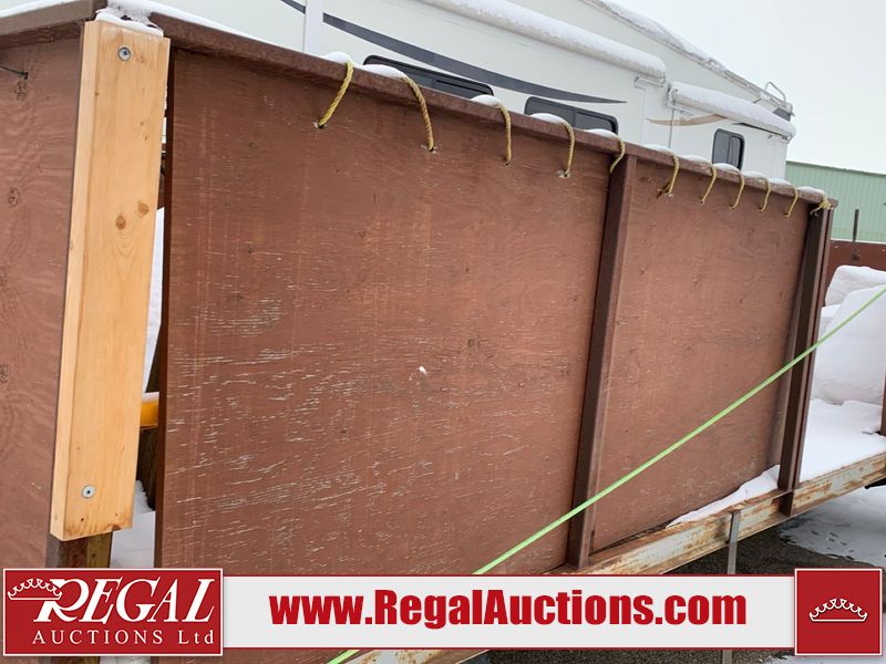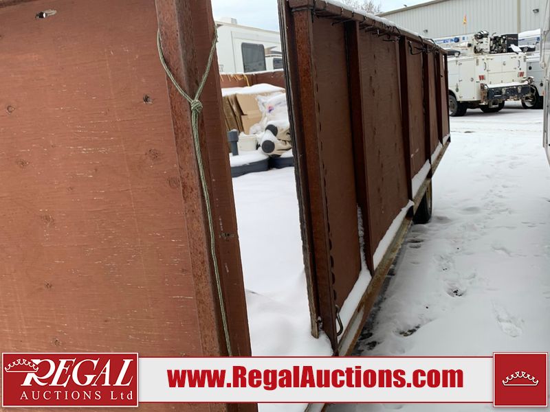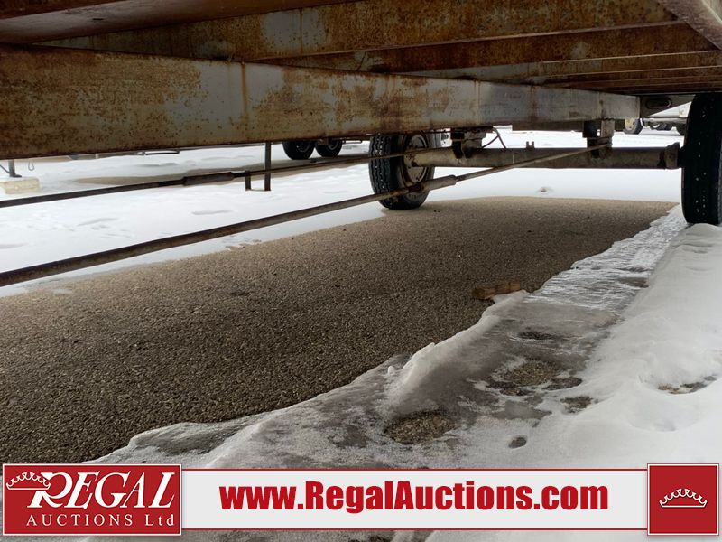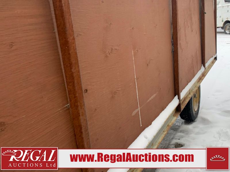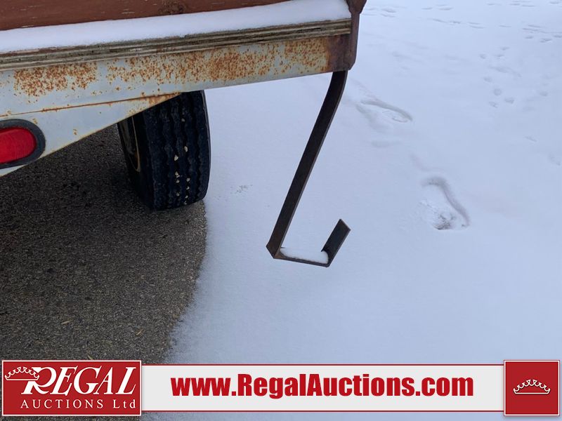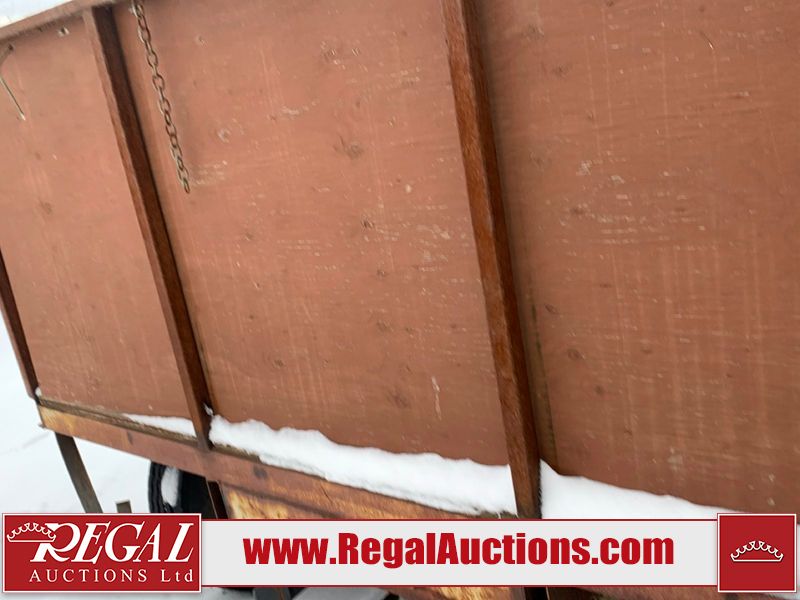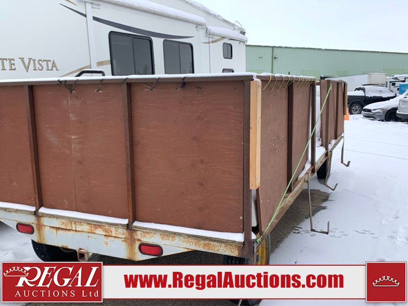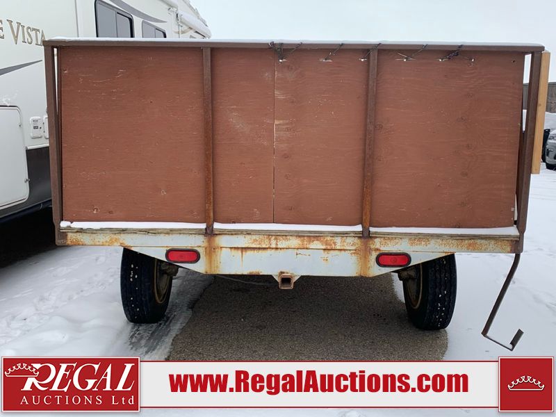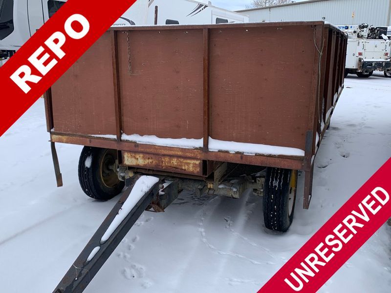 This unit is a pintle hitch Wagon trailer. This unit does not have a Vin plate and may require an assigned Vin. The exact model cannot be confirmed. The unit has been heavily modified. There is rust all around. Sidewalk scratches, and scrapes. The right side brackets are bent. This unit does not have any suspension. Steel rims are mounted, the tires appear to be in good enough condition for use.