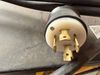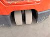 This forklift is a Toyota 7FBEHU18. The engine hours show 25,617 hours. It has a maximum lift capacity of 2500 pounds. Most panels are showing chips, scratches, and scuffs. The counterweight is chipped and has peeling paint. This unit comes with an energic plus NG–TST–D 36/160 18 cell 213139 model RLC battery charger. This unit is electric powered. The tires are mounted to steel rims and appear to be in good enough condition for use. This unit is equipped with 3 foot forks, and a three stage mast.