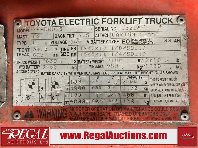 2007 TOYOTA 7FBEHU18 ELECTRIC FORKLIFT