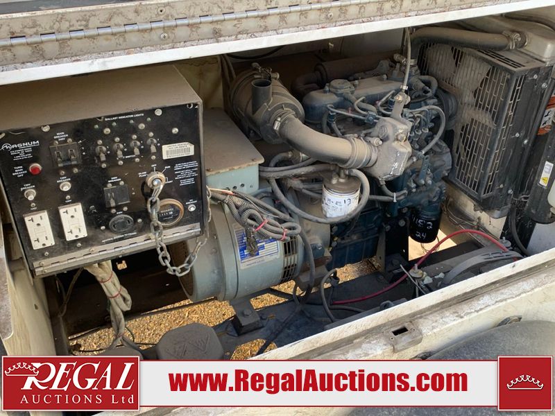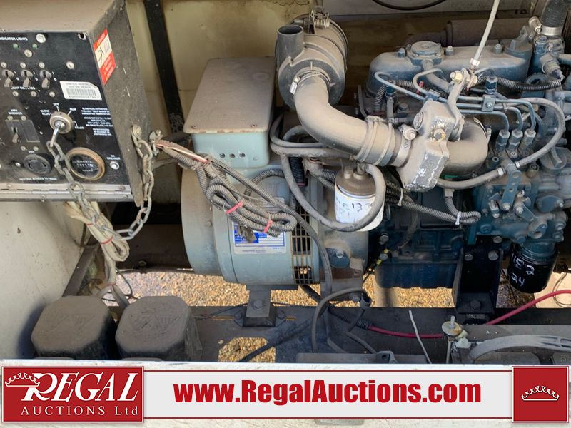 This unit is a 2012 magnum generator trailer. The hour metre reads 14,593 hours. The generator turns over but does not start. The electrical cable that runs the length of the mast to power the lights is cut and missing The exterior panelling has scratches and scuffs. The control panel is dented. The unit is powered by a Kubota 1.1 L three cylinder diesel engine with a pancake synchronous 120/240 AC generator. A diagnostic will need to to determine the exact problem. It comes with four ballast lights.