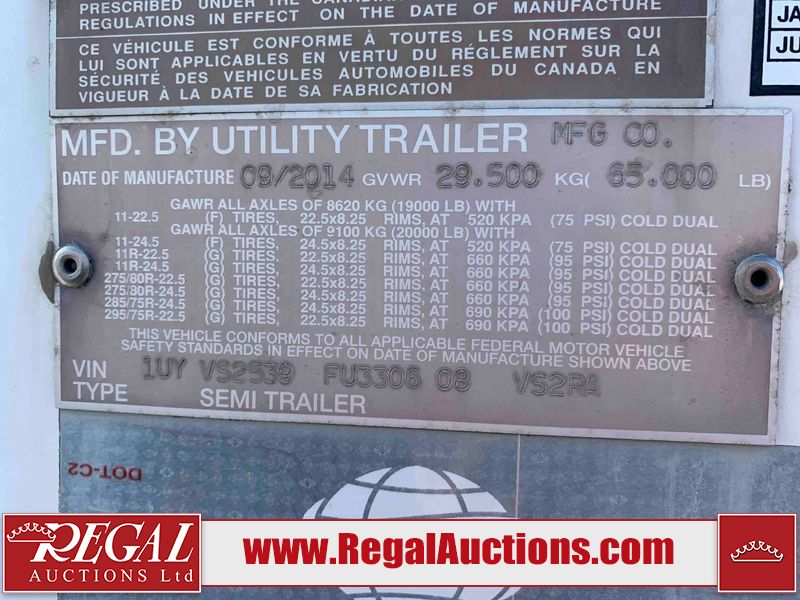 This unit is a 2015 Utility 53ft VS2RA tandem axle reefer trailer. This unit is equipped with a thermal king Carrier refrigerator unit. The hour meter reads 13,353 hours. It has a GVWR of 65,000 pounds. It has a CVIP of 11/22. The battery is dead, the reefer gets powered by external power applied. The interior is equipped with ducted floors, an air chute and E track. The floors and walls have scratches. The exteriors made out of steel/aluminum combination frame. The front of the reefer cover is cracked, and has been taped. Most walls are showing moderate dents, scratches, and scuffs. The right side are wall is showing more prominent dents and scratches. The battery is dead, the reefer gets powered by external power applied. The tires are mounted to steel wheels and appear to be good enough good condition to use. The unit is equipped with air suspension, ABS, and sliding rear axles.