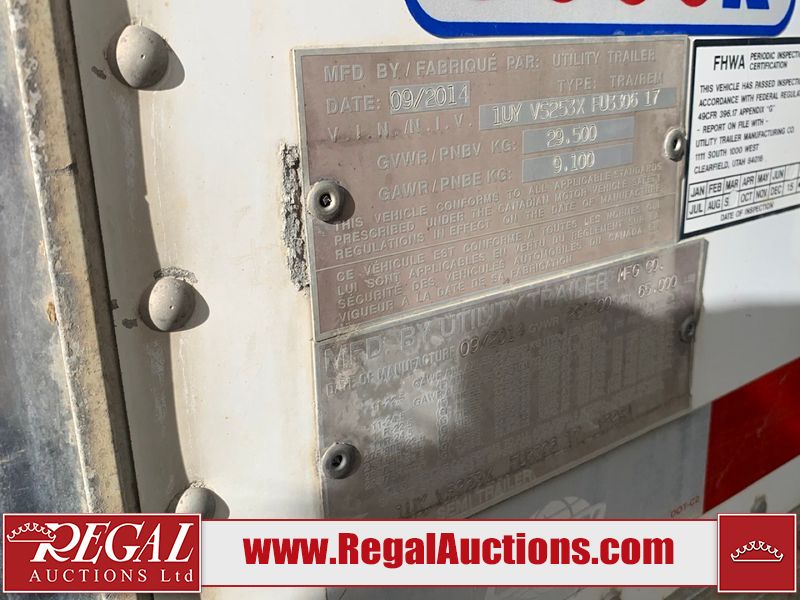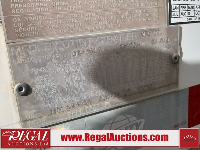 This unit is a 2015 Utility 53ft VS2RA tandem axle reefer trailer. This unit is equipped with a Thermal king refrigerator unit. The hour meter reads 15,480 engine hours. It has a GVWR of 65,000 pounds. It has a CVIP sticker is missing. The interior is equipped with ducted floors, an air chute and E track. The floors and walls have scratches. This unit is equipped with steel/aluminum combination frame. The front panel and sidewalls have scratched and scrapes. Both sidewalks have dents along the side panels and the rub rail. The refrigerator unit cover has scratches and peeling decals. The reefer battery is dead, the unit starts at runs with a boost. Alloy rims are mounted, the tires appear to be in good enough condition for use. The unit is equipped with air suspension and sliding rear axles.