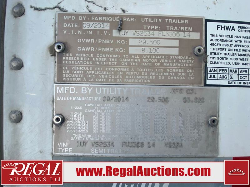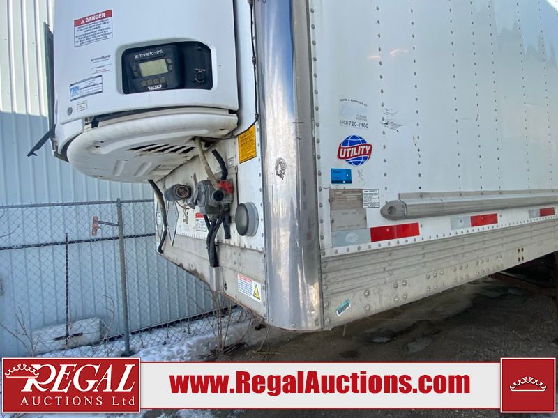 This unit is a 2015 Utility 53ft VS2RA tandem axle reefer trailer. This unit is equipped with a thermal king refrigerator unit. The hour meter reads 14,509 hours engine hours. It has a GVWR of 65,000 pounds. It has a CVIP of 08/2022. The interior is equipped with an air chute, and duct flooring. Some walls are showing scratches and scuffs. This unit is equipped with a steel/aluminum composite frame. Most walls are showing chips, scratches, and scuffs. The reefer cover is cracked and has been poorly resealed. The front left upper corner is gouged. The rear roof is peeling. The rear bumper. Has been poorly repaired. This unit starts and runs with a boost. The battery is dead. Alloy rims have been mounted, the tires have plenty of tread remaining. This unit is equipped with air suspension, air brakes, ABS, and an air foil.