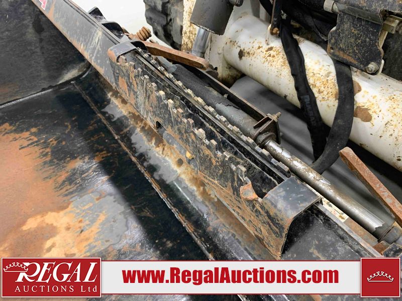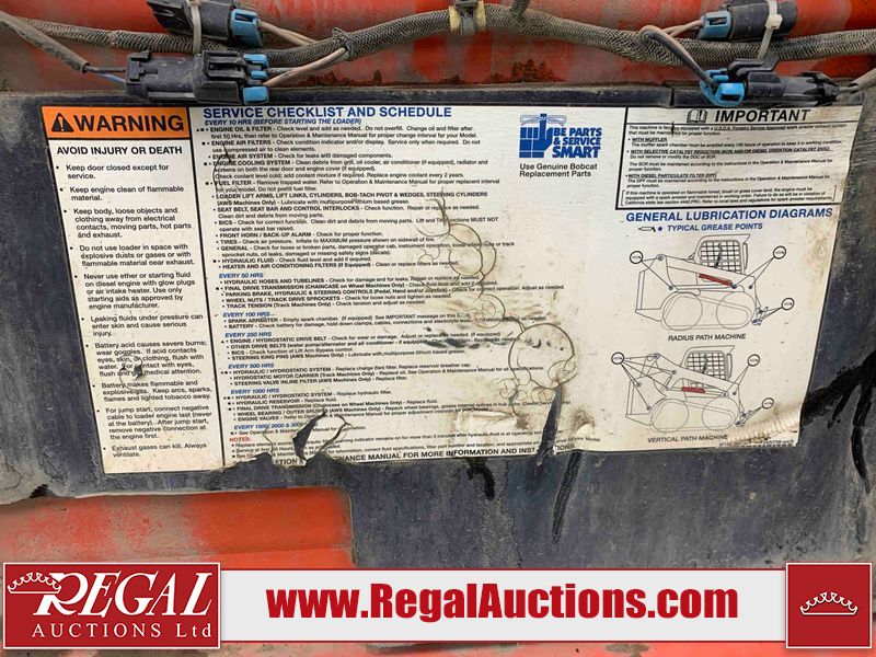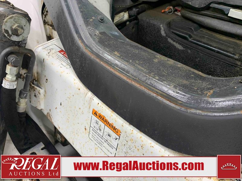 This unit is a 2016 bobcat T870 SJC compact skid steer track loader model. The hour metre shows 819 hours. The interior is dirty. The operator seat appears to be slightly worn but is in good condition. The right lower foot well panel is misaligned. The front door is missing. The bucket step is bent. The front lower hydraulic arms have dents. All panels are showing scratches and scuffs. The engine cover has peeling paint. The rear hydraulic arms are gouged. The rear bumper has dents and surface rust. Some decals are peeling. This unit is in limp mode. This unit starts and runs with a boost. The battery is dead. This unit is showing codes (E005246-22) (DOSING INTERRUPTED FAULT) (SCR) (SELECTIVE CATALYTIC REDUCTION) resulting in not throttling up. This unit is powered by a bobcat 3.4 L four-cylinder liquid cooled turbo charged diesel engine and a two speed manual transmission. The tracks appeared to be worn condition and will need to be replaced. This unit is equipped with a 6 foot wide bucket attachment. The rated operating capacity is 3525 lbs. There is no emission sticker.
