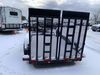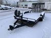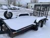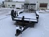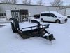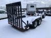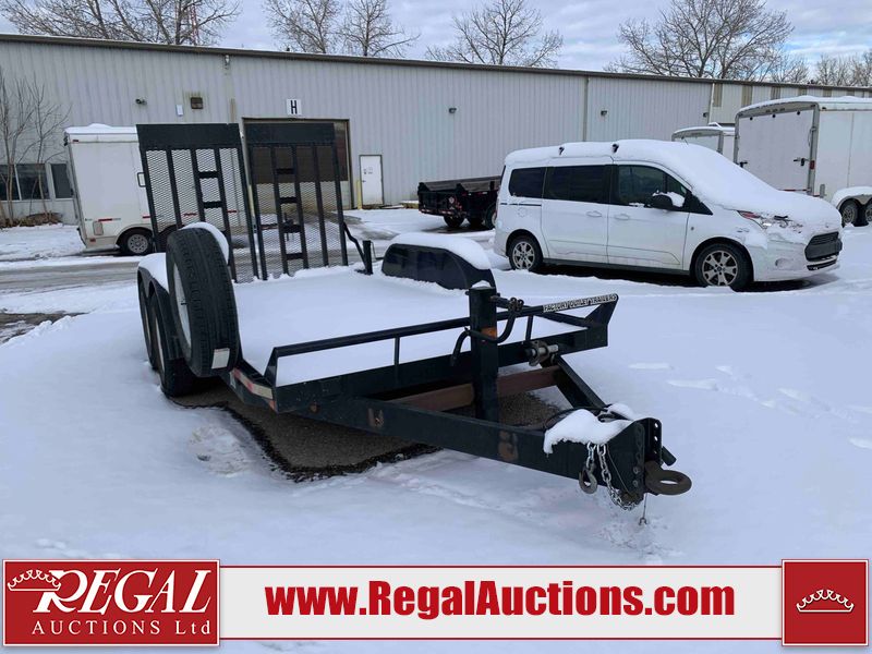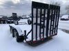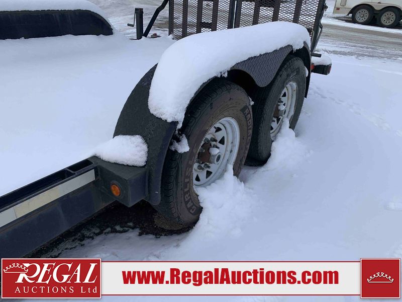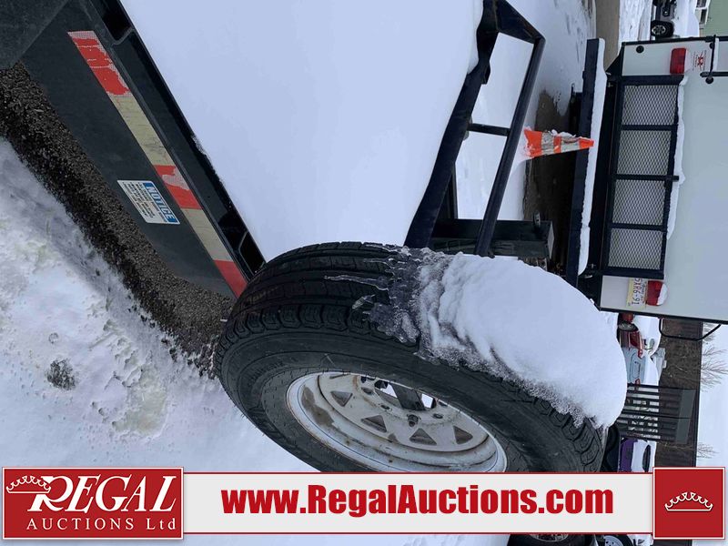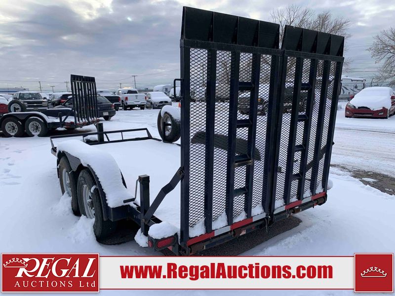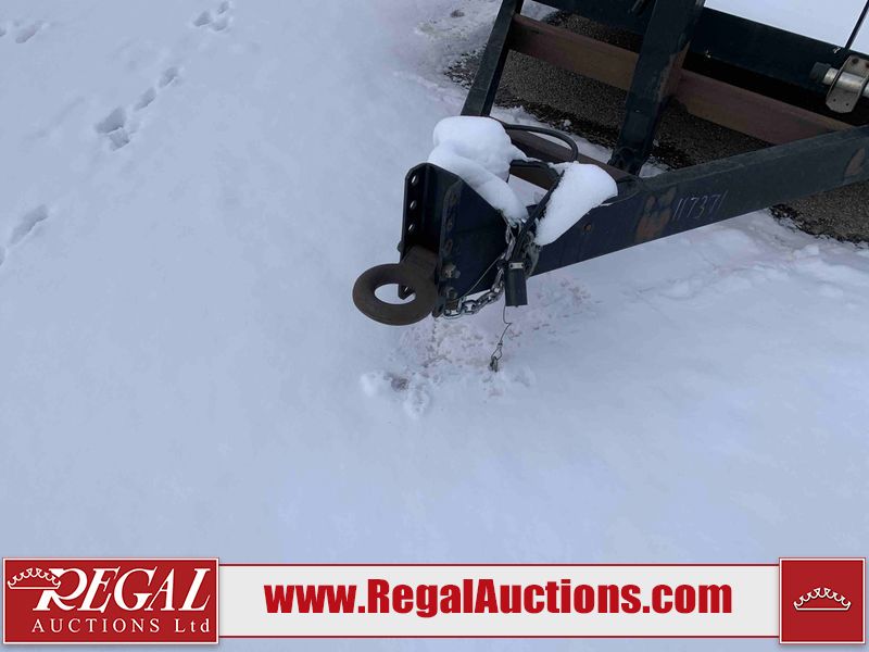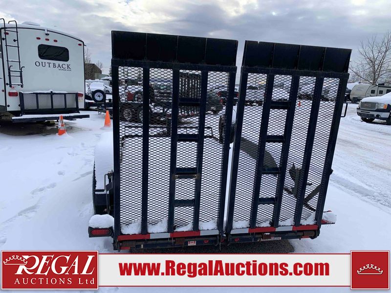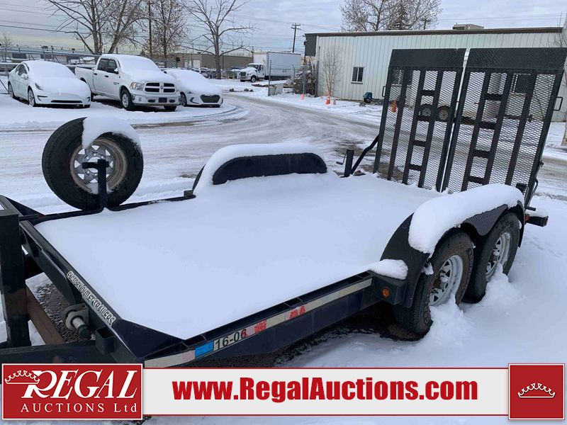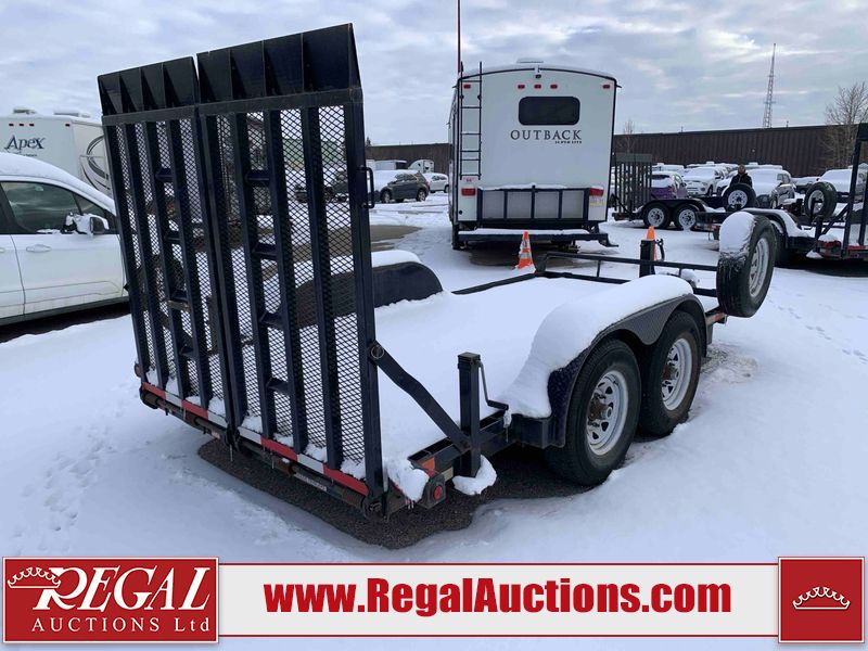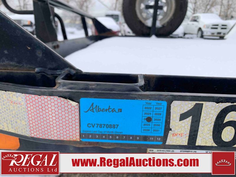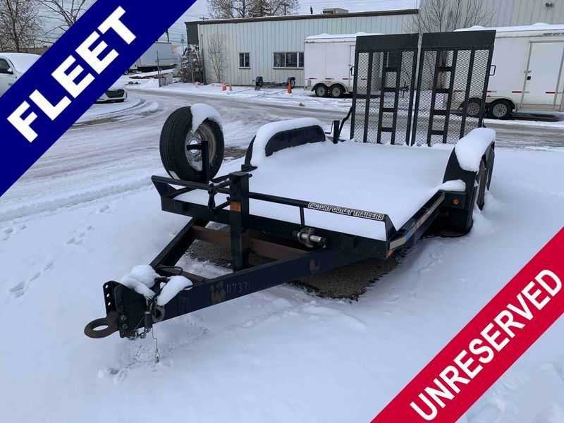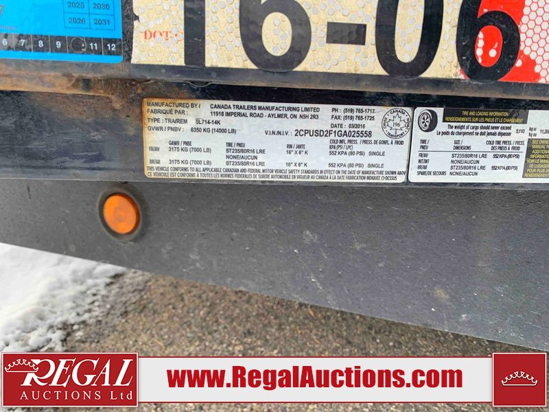 This unit is a 2017 Canada trailers manufacturing limited SL 7 14–14 K model to axle flat deck trailer. The frame has chips. Steel rims mounted, the tires appear to be in good enough condition for use. The unit unit is equipped with a pin hitch and comes with a spare tire. This unit has beaver tail style ramps.