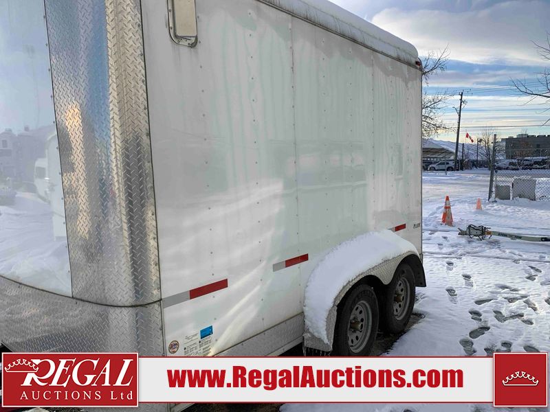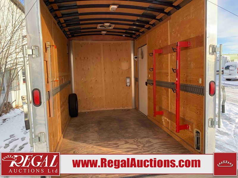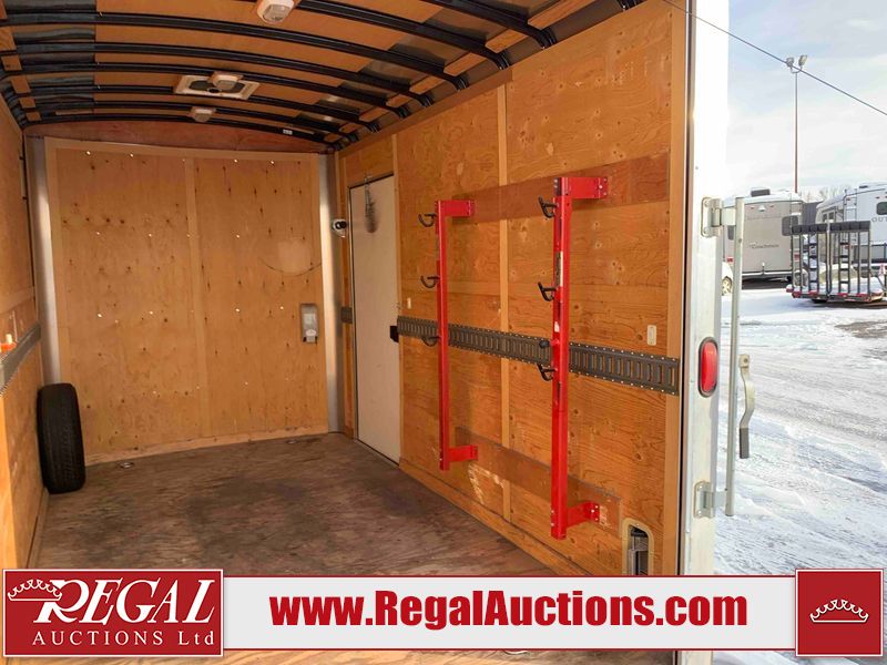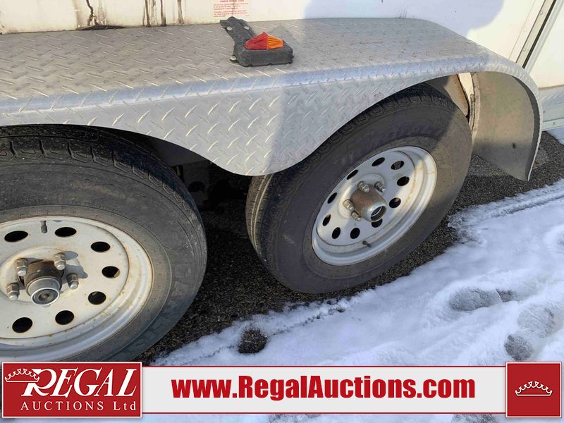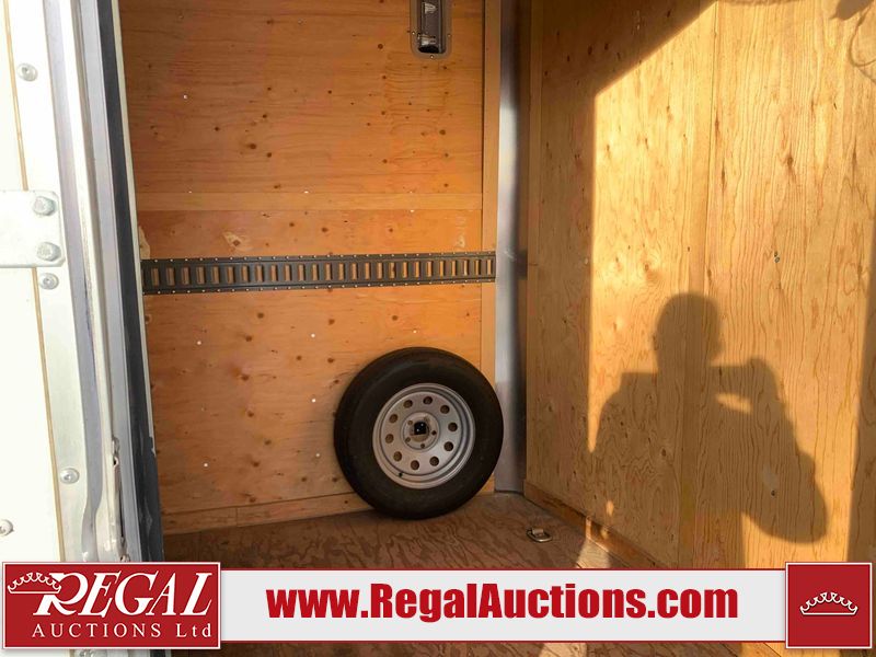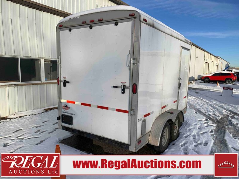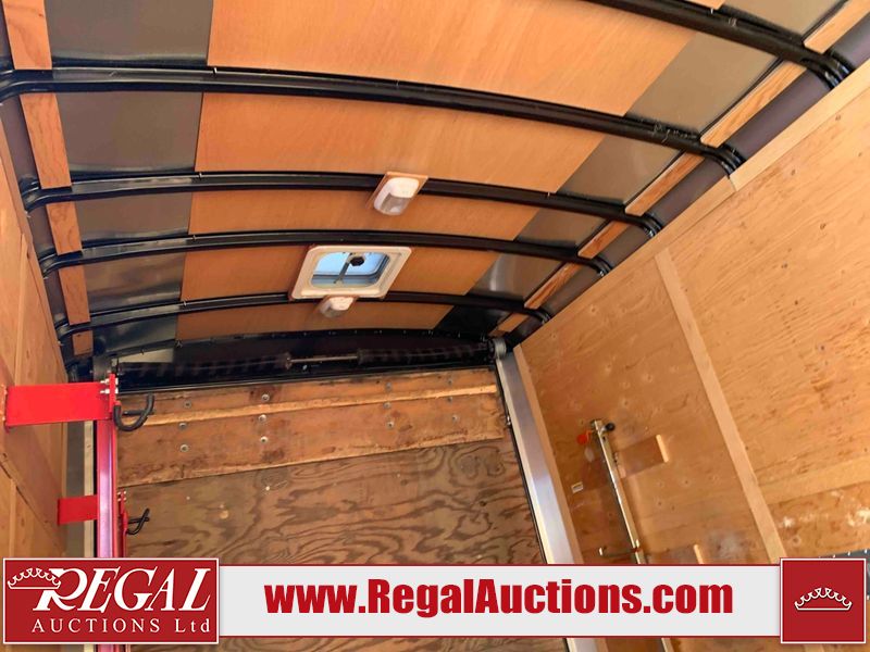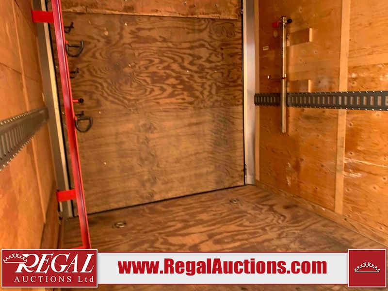 This unit is a 12' 2019 Cargomate Blazer model tandem axle enclosed cargo trailer. This unit does not have keys. The ramp has scratches. The floor and walls have scratches. The checker plate is bent. The fenders have cuts. There are chips across the front end. Both sidewalks have scratches and dents. The side entry door has pride and metal trim. Steel rims are mounted, the tires have plenty of tread remaining. This unit is equipped with a rear ramp style door. The interior walls have mounting racks and E tracks. This unit is equipped with a pintle hitch.