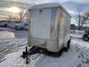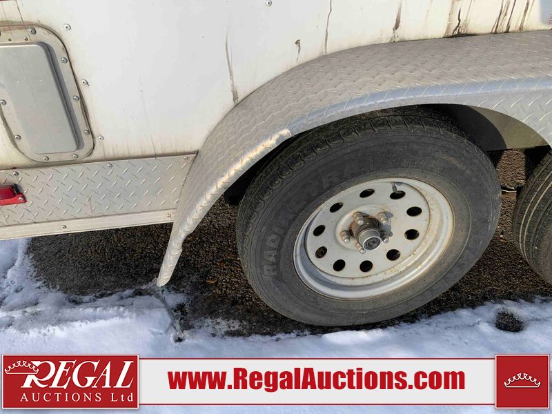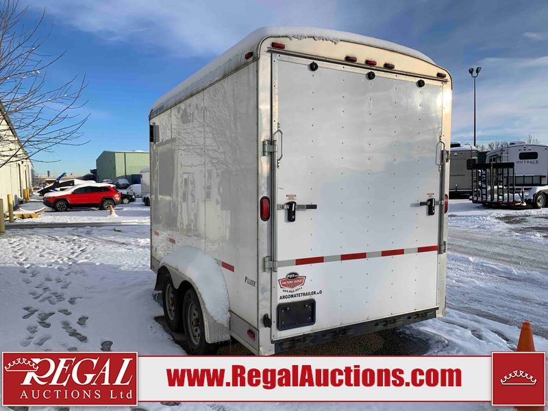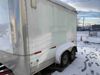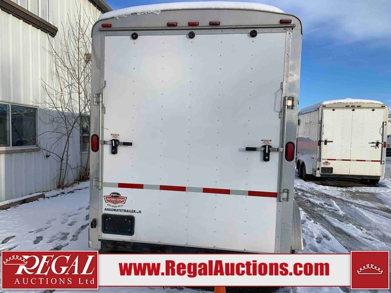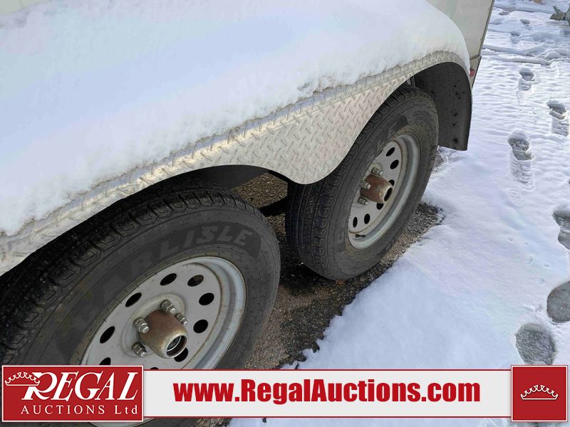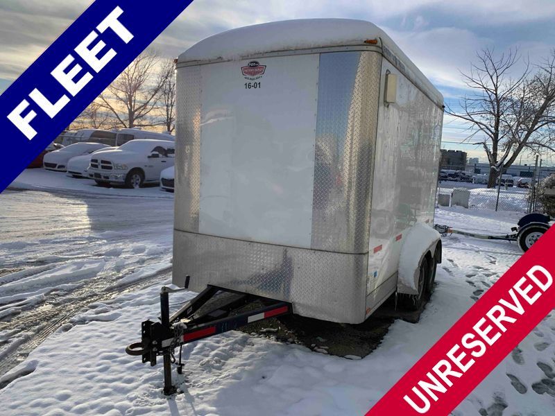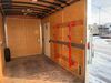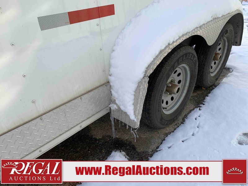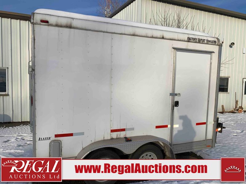 This unit is a 12' 2019 Cargomate Blazer model tandem axle enclosed cargo trailer. This unit does not have keys. The ramp has scratches. The floor and walls have scratches. The checker plate is bent. The fenders have cuts. There are chips across the front end. Both sidewalks have scratches and dents. The side entry door has pride and metal trim. Steel rims are mounted, the tires have plenty of tread remaining. This unit is equipped with a rear ramp style door. The interior walls have mounting racks and E tracks. This unit is equipped with a pintle hitch.