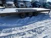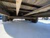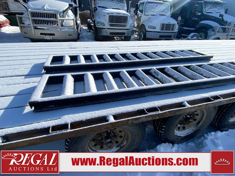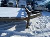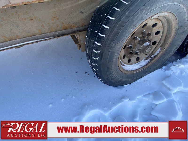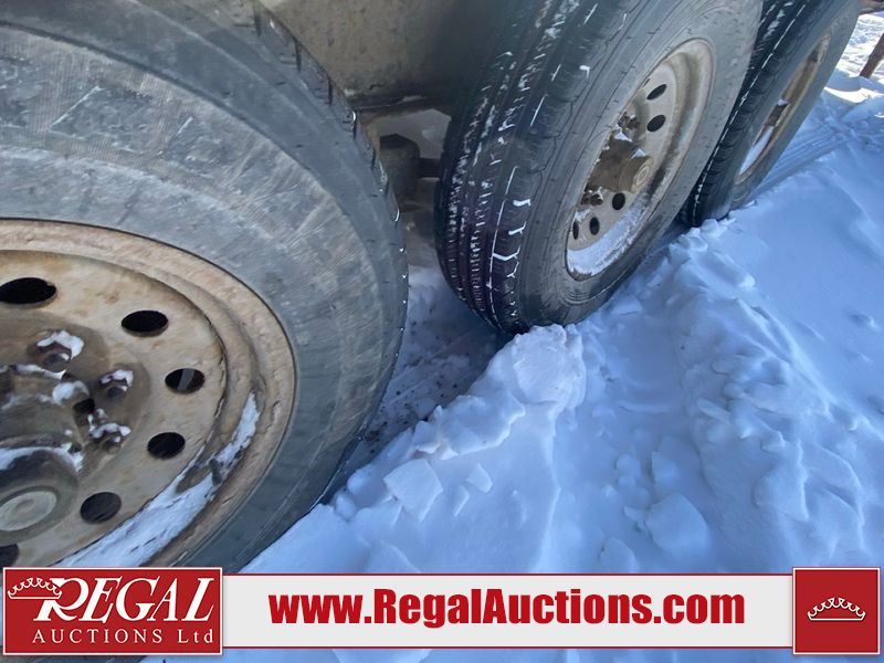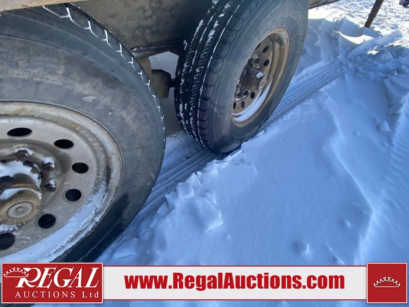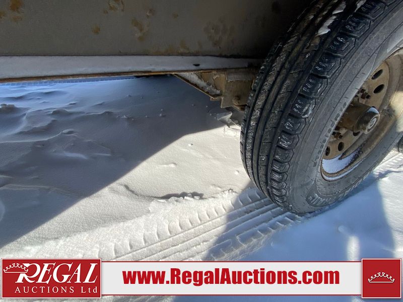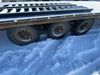This unit is a 2016 24 foot boat trail standard pin hitch tri-axle utility trailer. It’s GVWR is 7000 pounds. Most panels are showing chips, scratches, and scuffs. There is peeling paint all around. The tires are mounted to steel rims and appear being good condition for use. This unit is equipped with leaf spring suspension. This unit is equipped with slide out ramps.