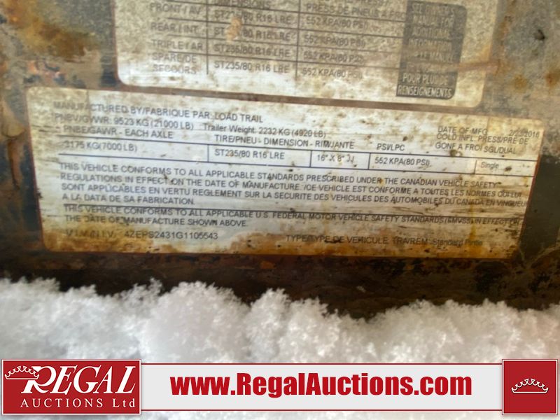 2016 LOAD TRAIL STANDARD PINTLE TRI/A 24FT DECKOVER TRAILER