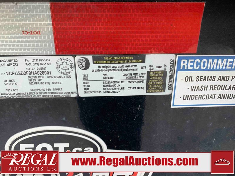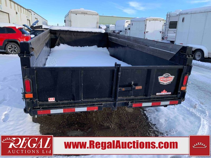This unit is a 14 foot 2017 Canada Trailers Manufacturing LTD tandem axle hydraulic dump trailer. There are chips on the front end and both sides. The box has scratches and surface rust. This unit is equipped with steel rims, the tires have plenty of tread remaining. This unit has a retractable mesh cover. The hydraulic pump battery is dead, the hydraulics are operational when power is applied.