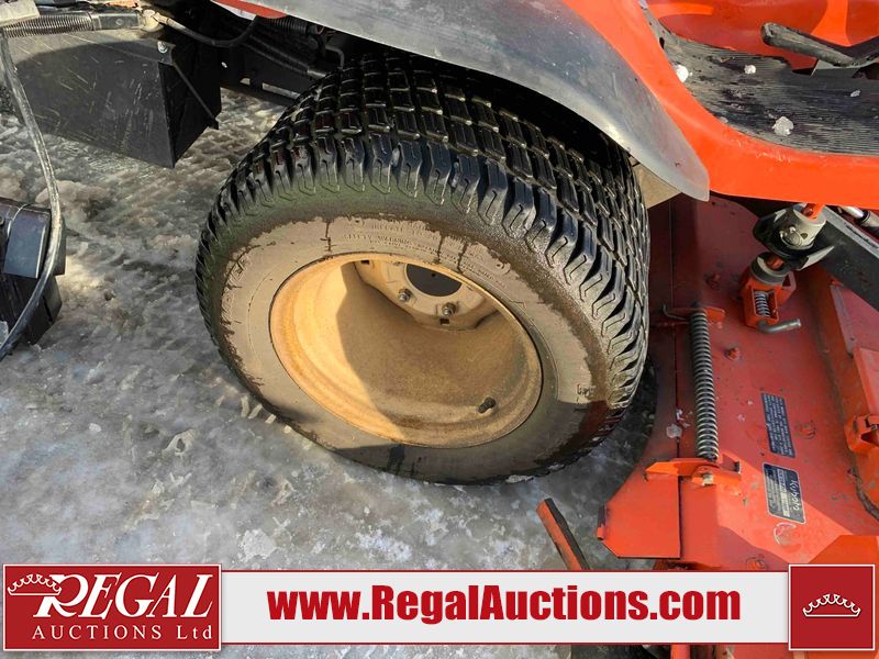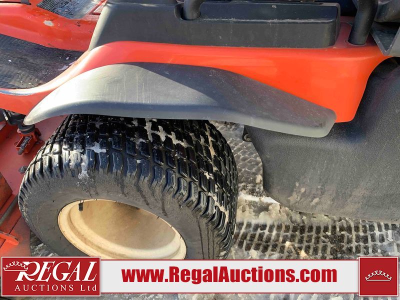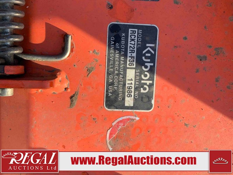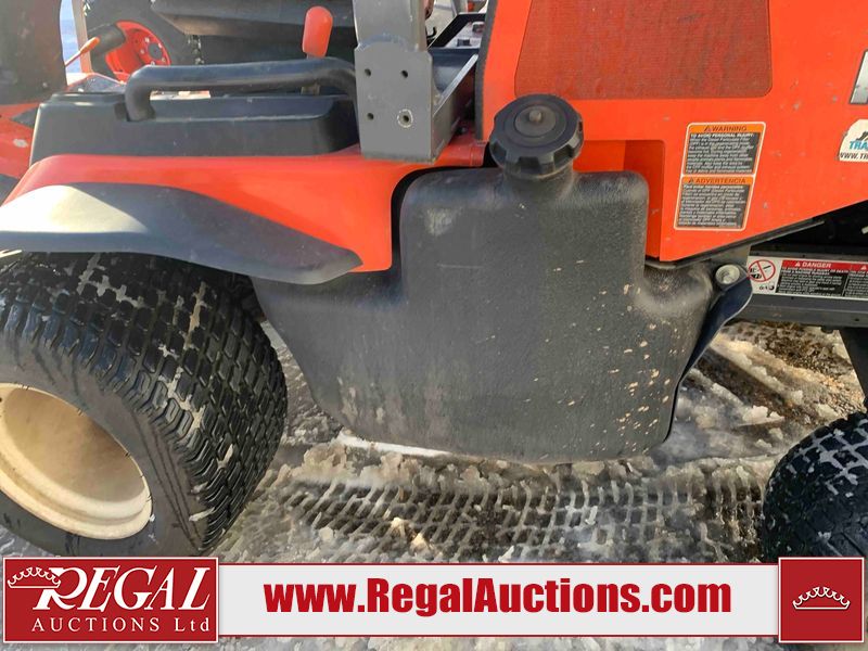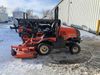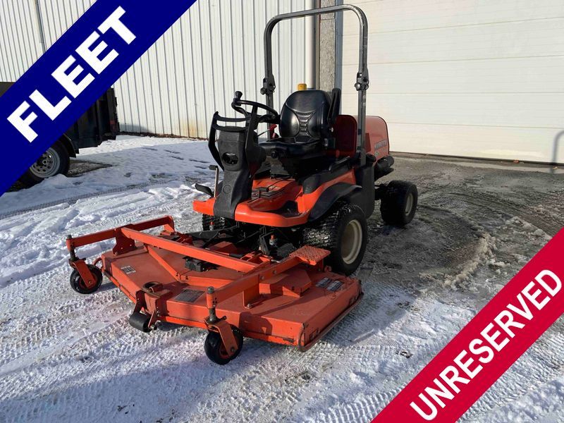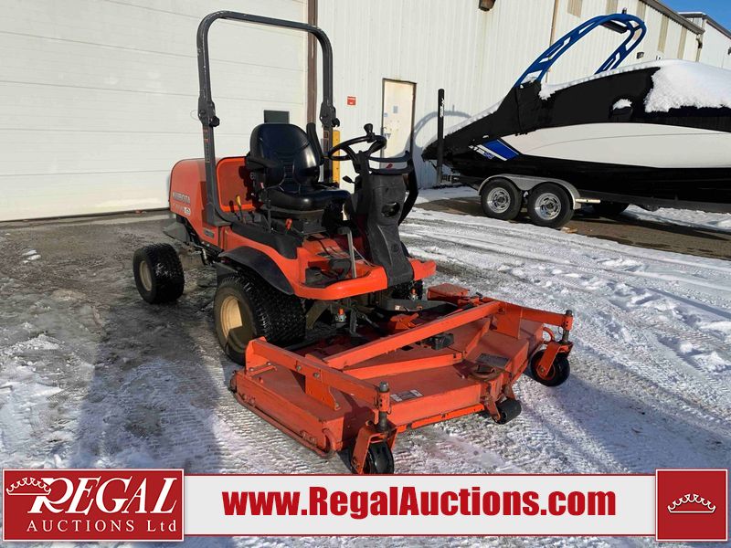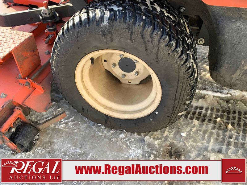 This unit is a 2019 Kubota F3 990 four-wheel-drive front mower. This unit is dirty and will require detail. The seat is torn. The engine cover has dents, all plastics have scratches and scrapes. This unit start to run with a boost. The battery will need to be replaced. This unit has an abnormal idle. Diagnostic will need to be performed to determine its exact problem. This unit is powered by a Kubota four-cylinder 1.5 L diesel engine with a hydraulic drive. Steel rims have been mounted, the tires are appear to be in good enough condition. The hydraulics and mower plate plates are operational. Unit is quick with 72 inch lower deck that uses three individual blades. It also has a tilt steering wheel and a front spotlight.