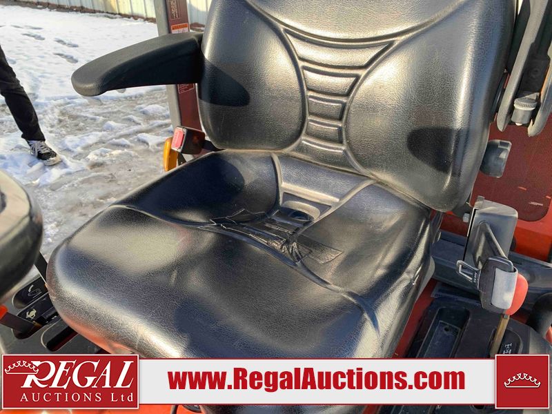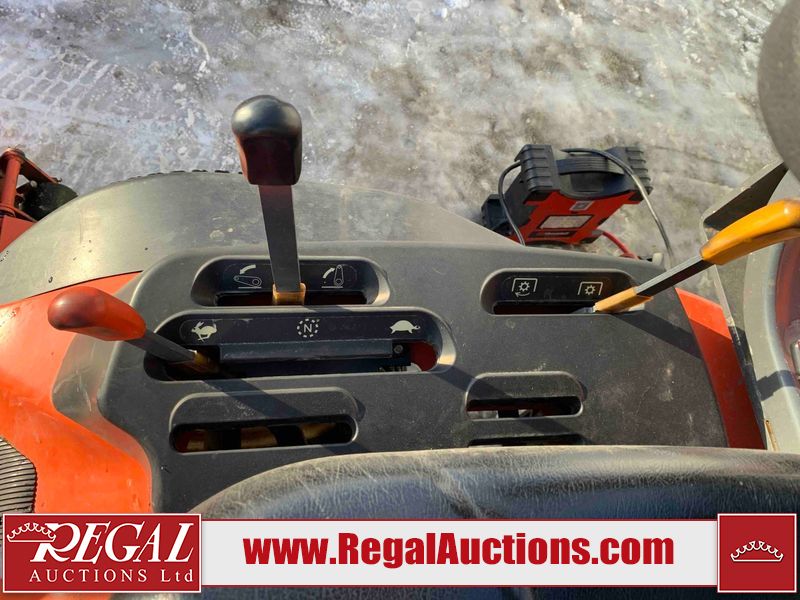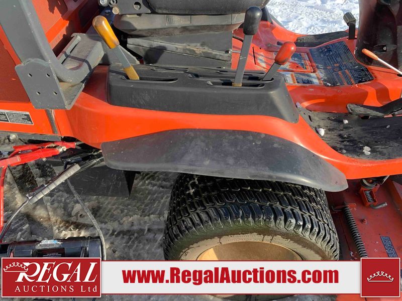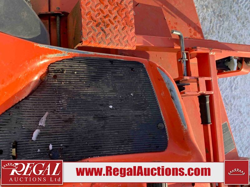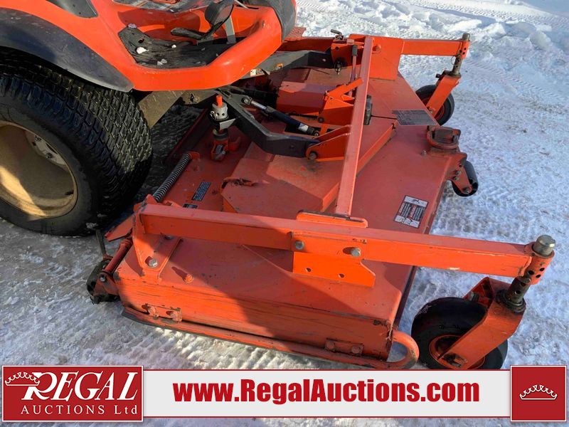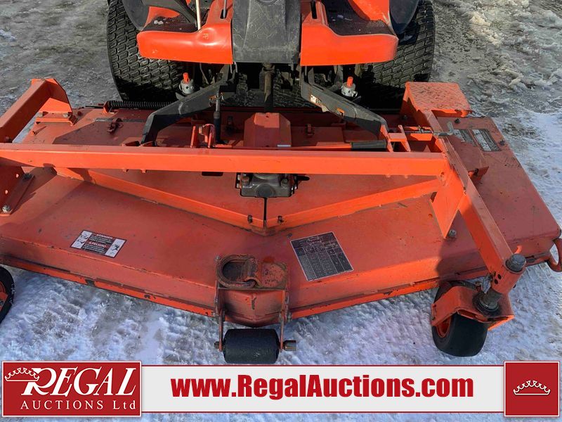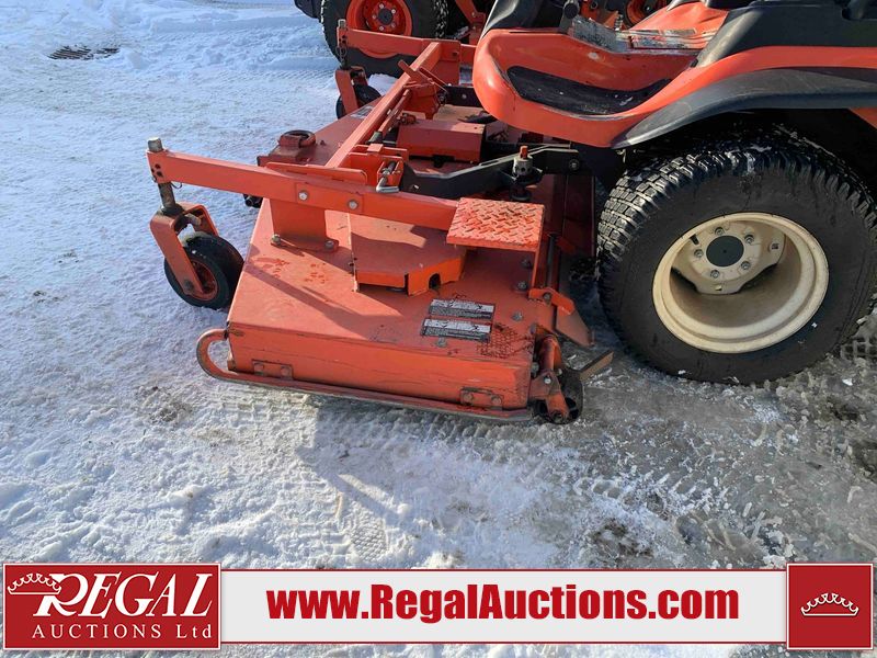 This unit is a 2019 Kubota F3 990 four-wheel-drive front mower. This unit is dirty and will require detail. The seat is torn. The engine cover has dents, all plastics have scratches and scrapes. This unit start to run with a boost. The battery will need to be replaced. This unit has an abnormal idle. Diagnostic will need to be performed to determine its exact problem. This unit is powered by a Kubota four-cylinder 1.5 L diesel engine with a hydraulic drive. Steel rims have been mounted, the tires are appear to be in good enough condition. The hydraulics and mower plate plates are operational. Unit is quick with 72 inch lower deck that uses three individual blades. It also has a tilt steering wheel and a front spotlight.