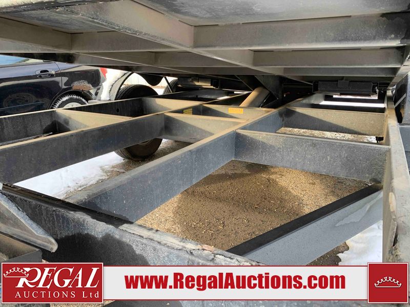 This unit is a 14 foot 2017 Canada trailers manufacturing LTD hydraulic tandem axle dump box trailer. There are chips on the front end and both sides. The box has scratches and surface rust. The front jackstand and frame are bent. This unit is equipped with steel rims, the tires have plenty of tread remaining. This unit has a retractable mesh cover. The hydraulic pump battery is dead, the hydraulics are operational when power is applied.