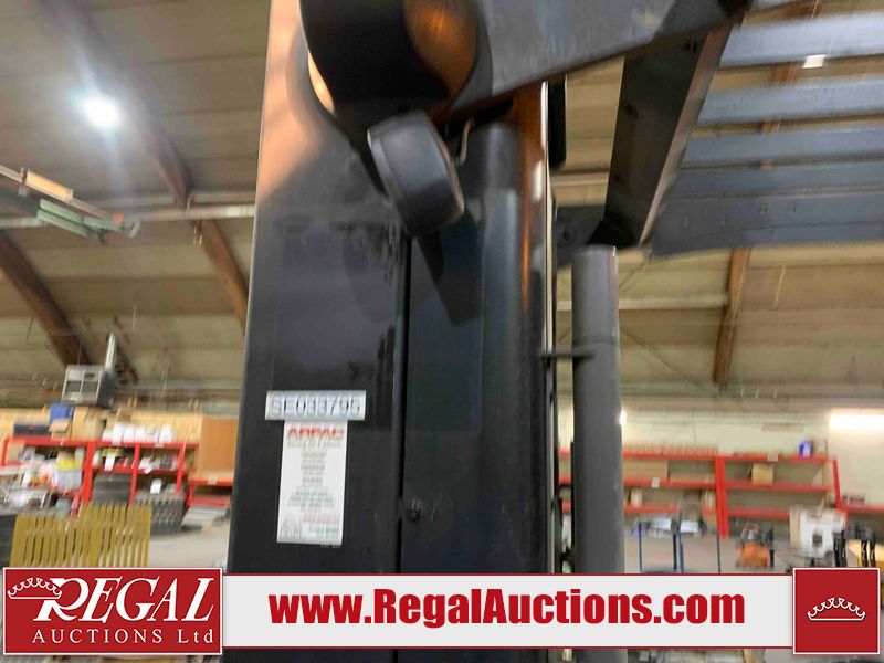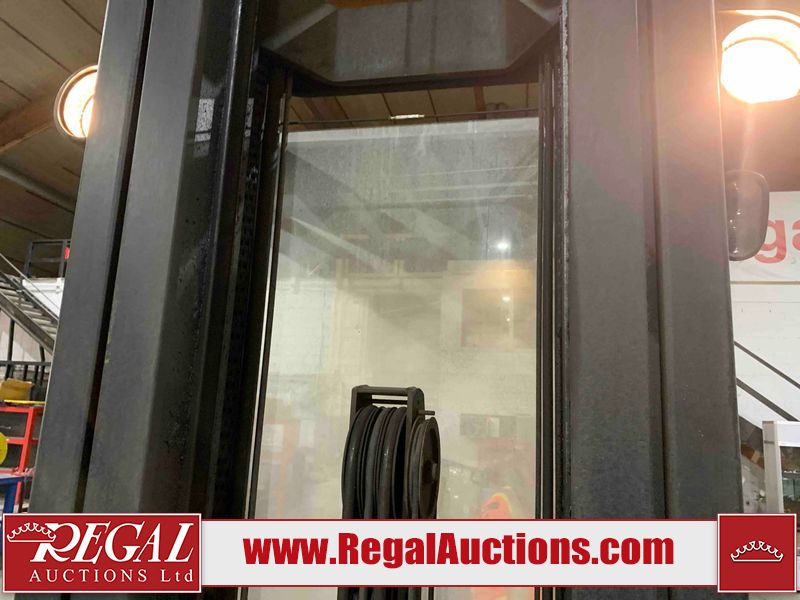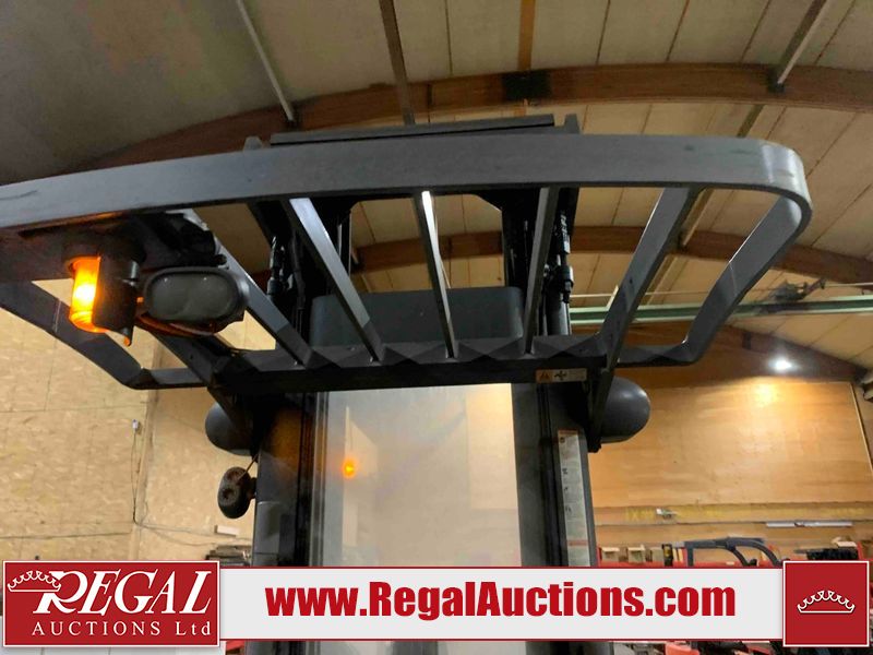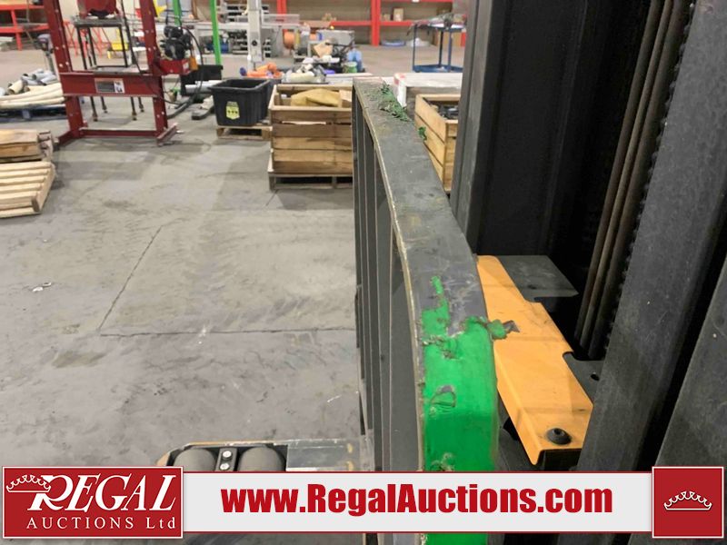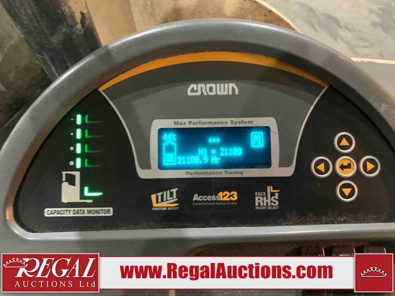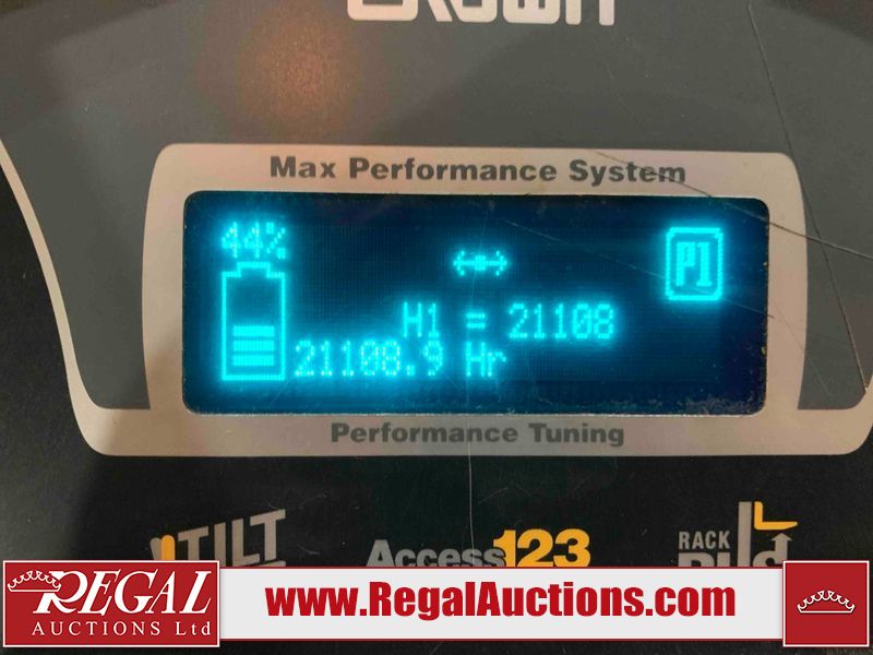 This unit is a 2019 Crown RR5700 series 5795S model sit down reach truck. The engine hour metre shows 21,108 hours. It has a max lift capacity of 4500 pounds. The interior is dirty. The lower panels have scratches and scuffs. The plexiglass is cracked. All panels are showing scratches and scuffs. Some decals are peeling. This unit powers on and is powered by a 36 Volt system with a lead acid battery. The tires appear to be in ok enough condition for use. This unit starts and runs without a boost. The hydraulics are operational and do not appear to have any leaks. This unit is equipped with a 2 stage lift, quick change load, mounted work lights.. This unit has a max lift height of 400 in.