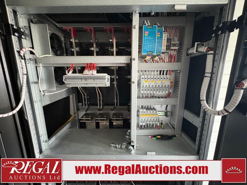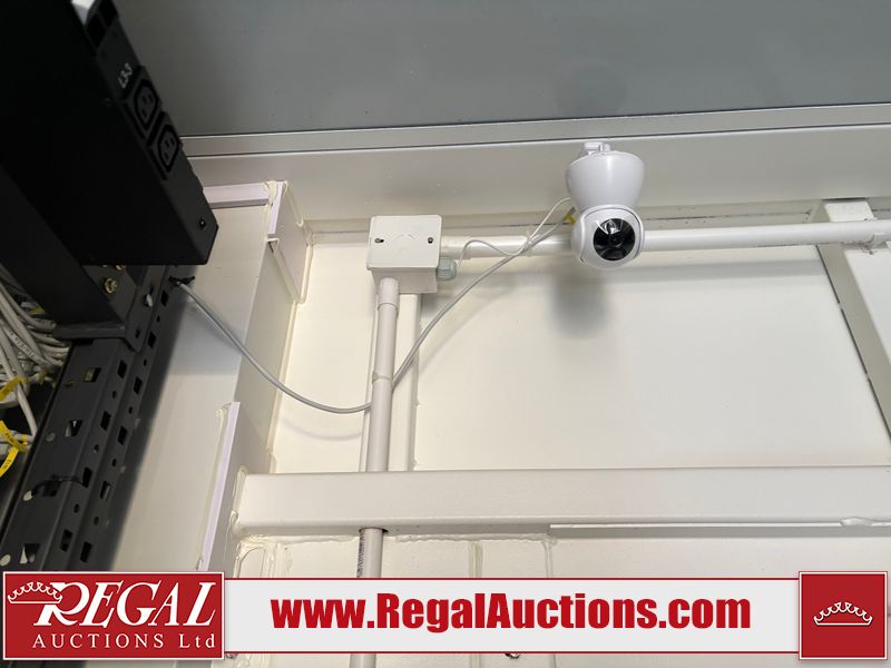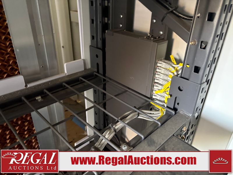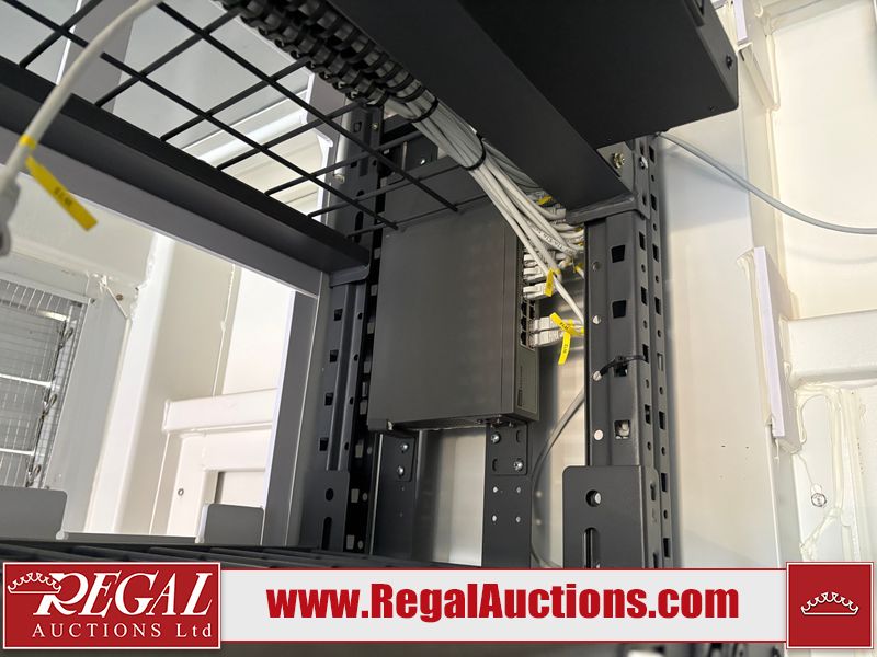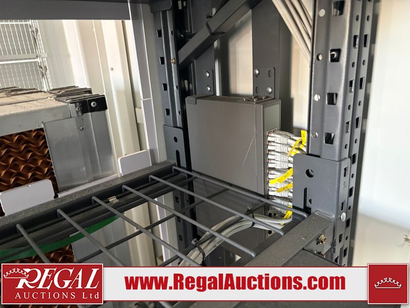 Interior of the unit looks to be in fair condition.  The unit is equipped with breakers, server racks with supporting networking equipment, power cables and security system. The completeness and operation of the contents is unknown.