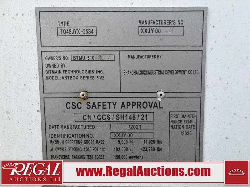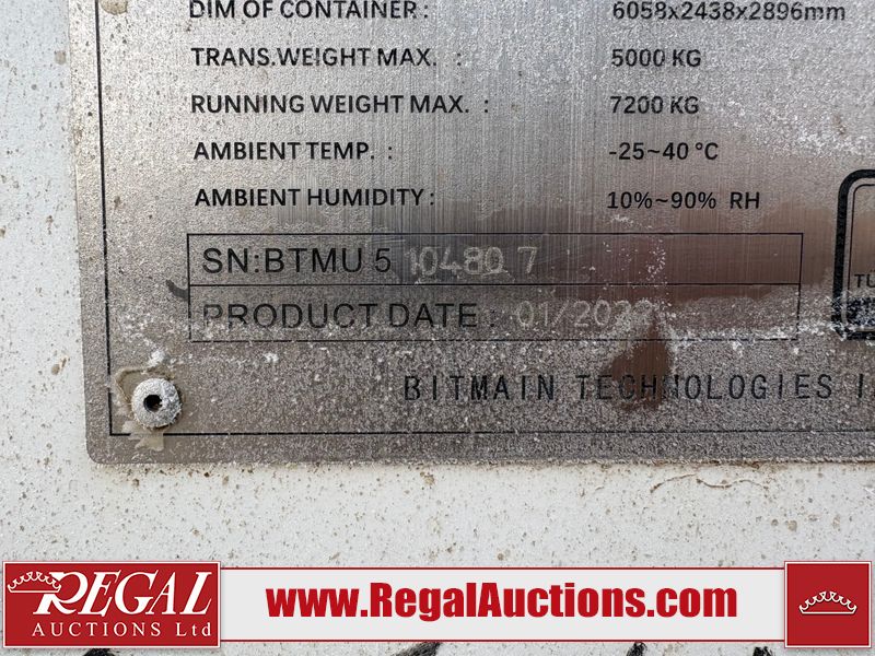 This asset is a BITMAIN ANTBOX N5 V2 model mobile mining container. The unit is 20ft long and 9.5ft tall.  It is equipped with server racking and electrical for crypto mining operations.