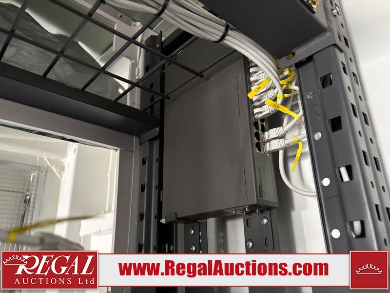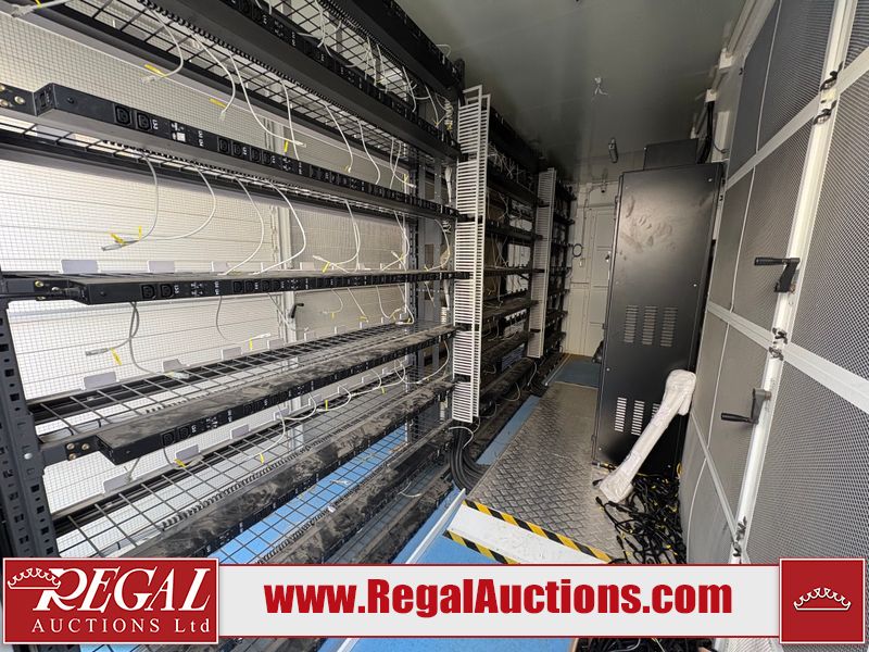 Interior of the unit looks to be in fair condition.  The unit is equipped with breakers, server racks with supporting networking equipment, power cables and security system. The completeness and operation of the contents is unknown.