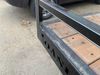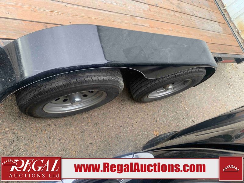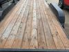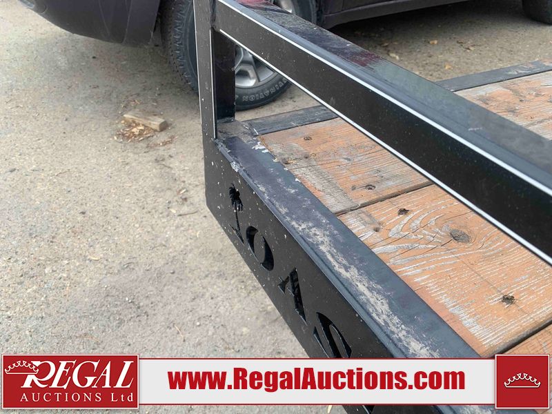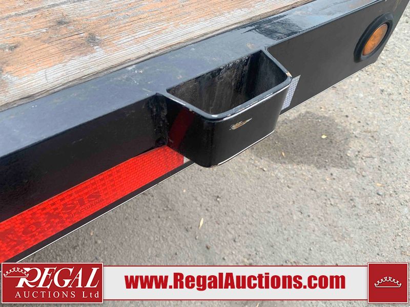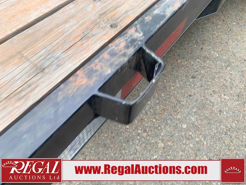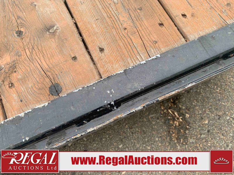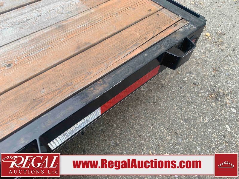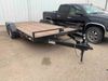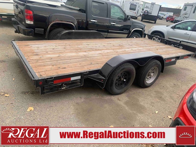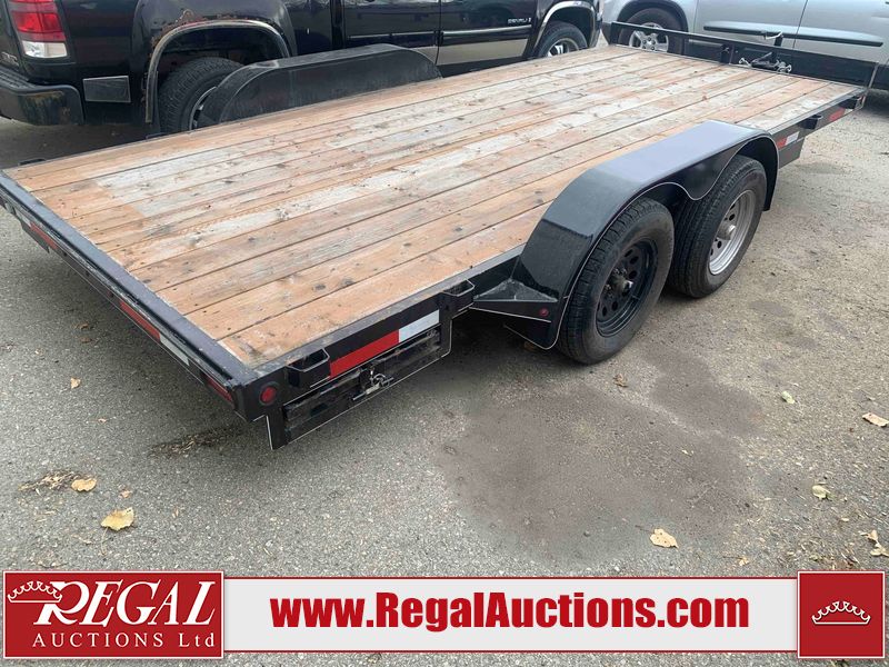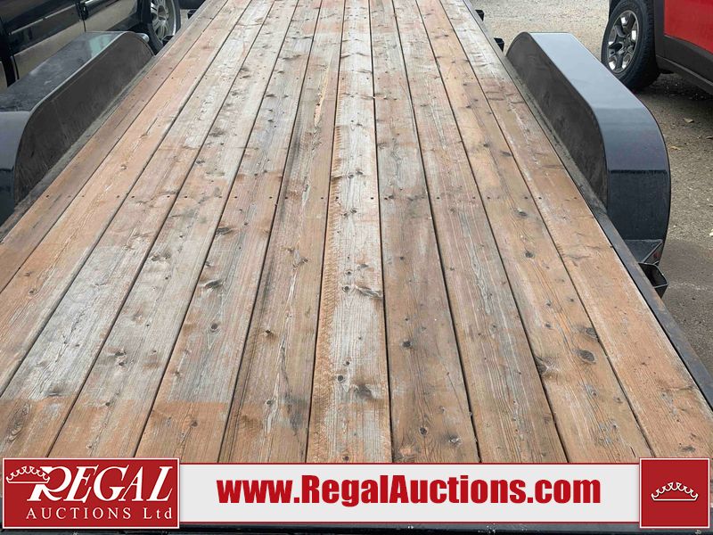This unit is a 2023 oasis 16 foot lowboy tandem axle car hauler. The GVWR is 8047 pounds. The floors are made of plank decking. The plank is split. The frame is gouge and has peeling paint. All panels are showing scratches and scuffs. The right and left fender has dents. The tires are mounted to steel rims and appear to be in good enough condition for use. This unit is equipped with two ramps.
