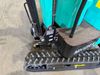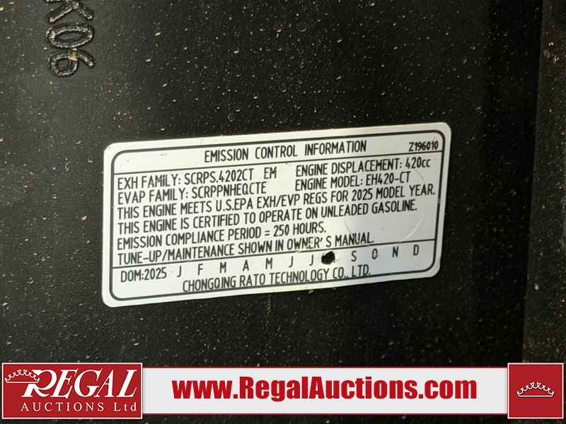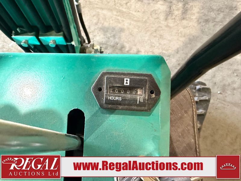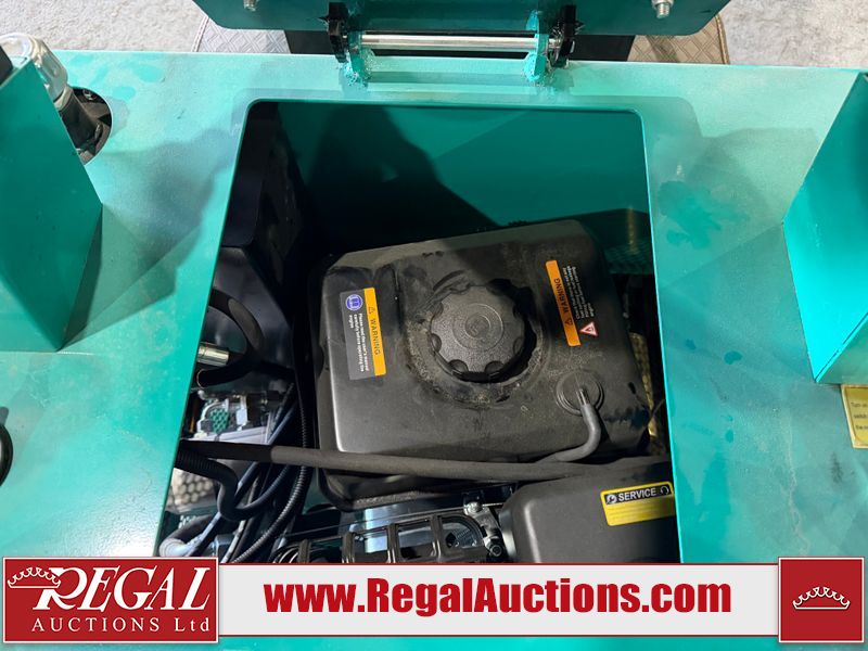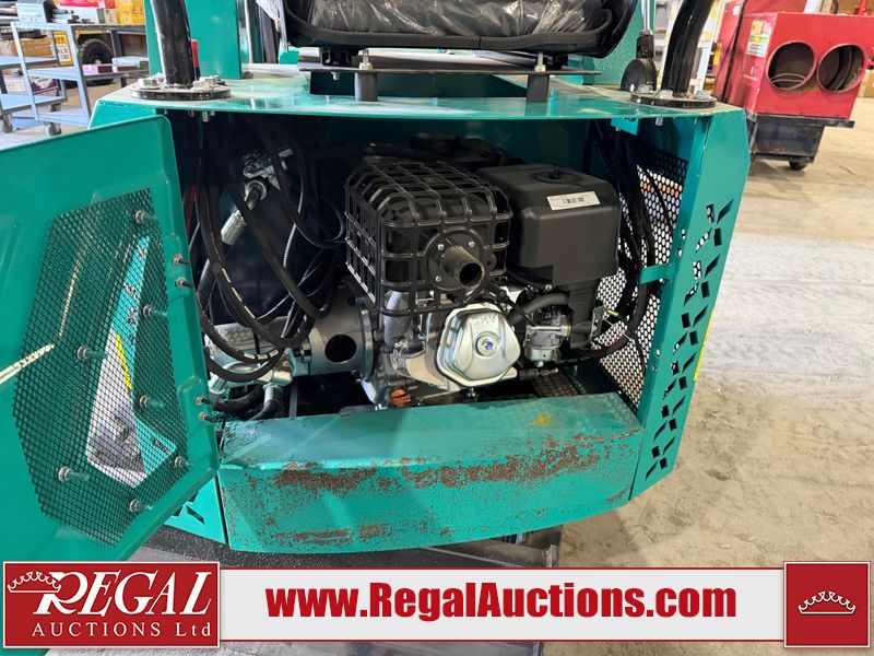 The unit is a 2025 CFG Industrial MH12RZ Mini Excavator. The hour meter reads 0 hours. There is some rust on the back panel of the unit. The unit still has shipping straps on the boom. The unit starts and runs without a boost. It is equipped with a 420cc Gasoline Engine.