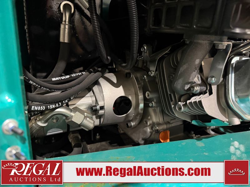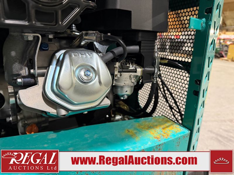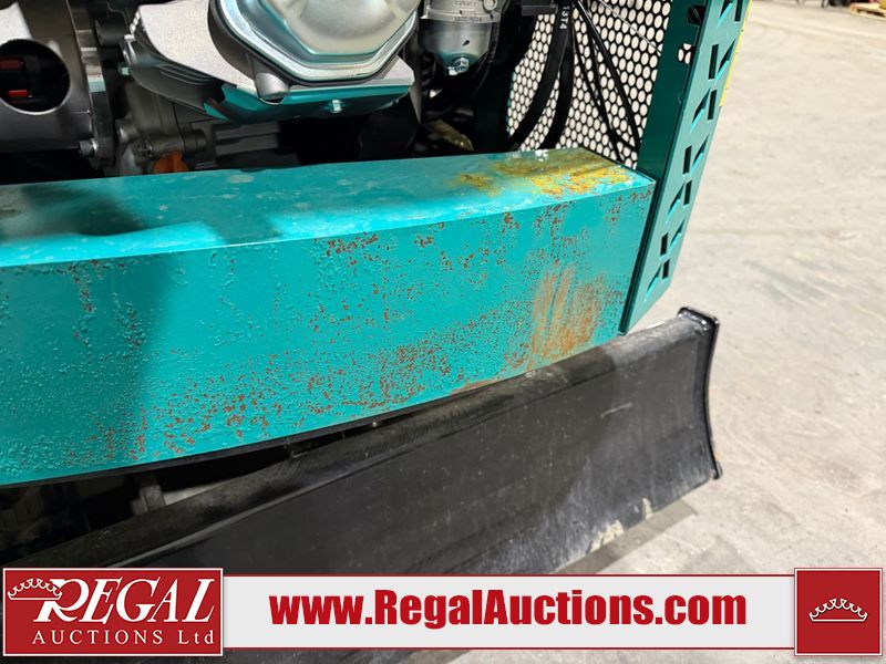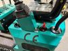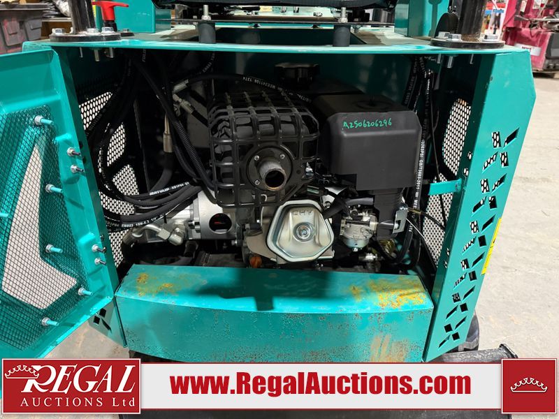 The unit is a 2025 CFG Industrial MH12RZ Mini Excavator. The hour meter reads 0 hours. There is some rust on the back panel of the unit. The unit still has shipping straps on the boom. The unit starts and runs without a boost. It is equipped with a 420cc Gasoline Engine.
