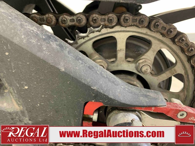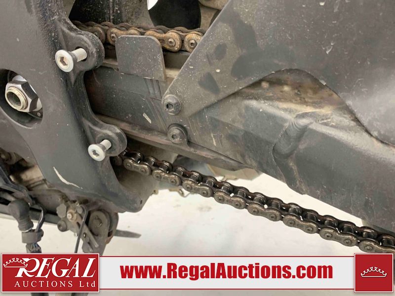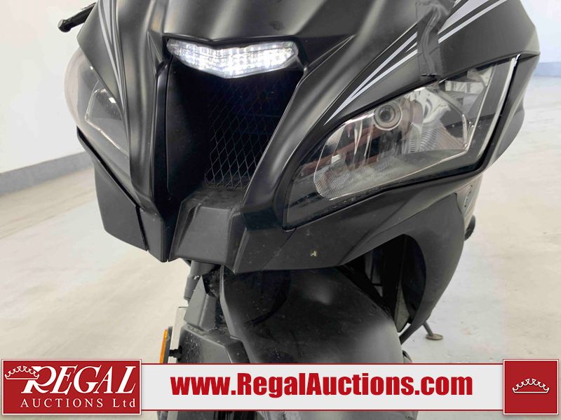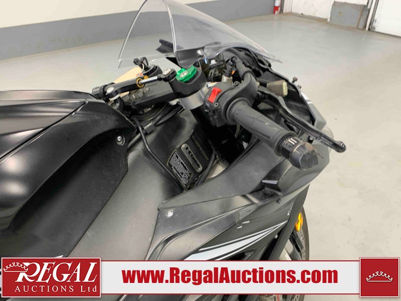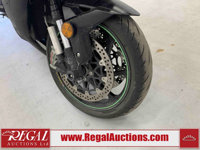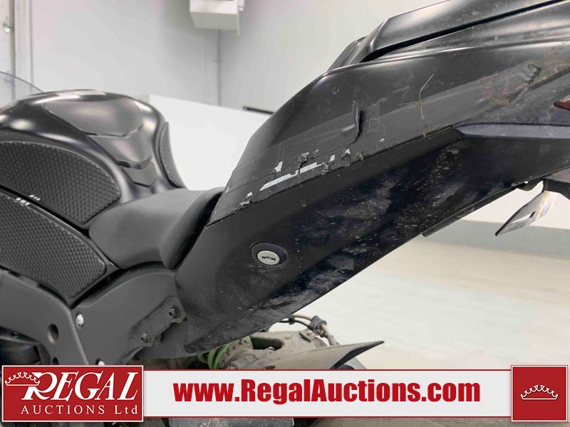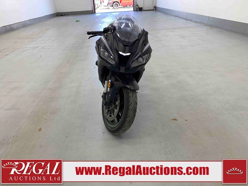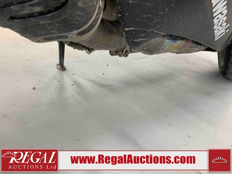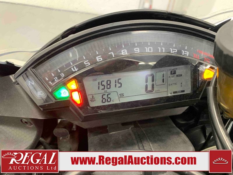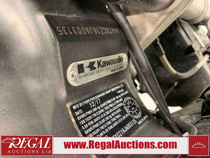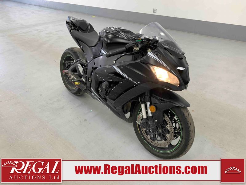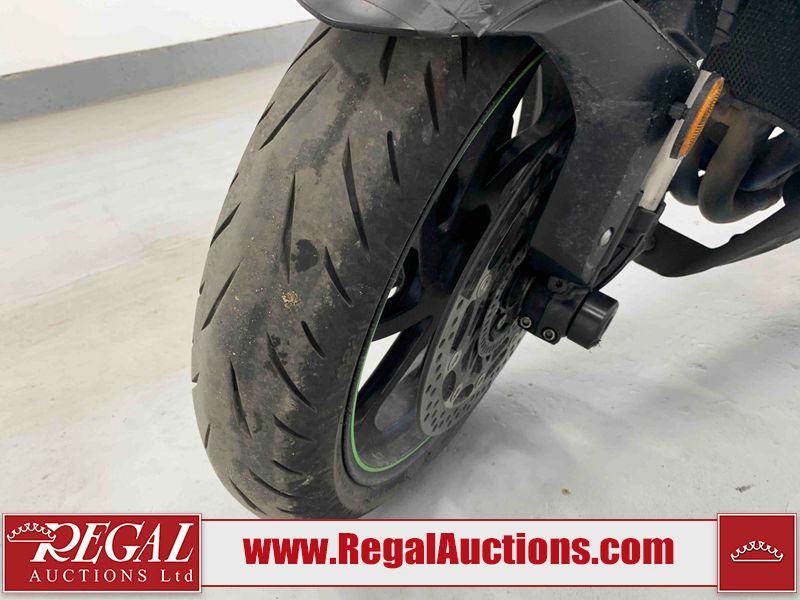 This sports style motorcycle is a 2018 Kawasaki ZX1000ZJF NINJA ZX10RR ABS model. The odometer reads 15,815 km. This unit has been dropped. Most plastics are broken and scraped. The mirrors are missing. The handlebar ends and brake levers have scrapes. The braking clutch lever are bent. The forks are bent. There are scrapes all along the left and right side of the motorcycle. The exhaust is broken. The shift lever and foot peg are missing. And aftermarket exhaust, and a swing arm extension kit have been installed. The seat is torn. The gas tank has dents. The rear mudflap and license plate bracket have been replaced. The signal lights are missing. This unit will need to be towed through the auction, the side engine plate has a punctured a hole and leaks oil. The engine starts and runs. This unit is powered by a 998 cc in-line four-cylinder liquid cooled engine with a six speed manual transmission. Sprocket and chain appears to be in OK condition for you. The rear tire is worn and will need to be replaced. Due to the missing shift lever, the condition of the transmission cannot be confirmed.