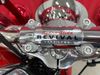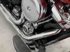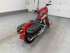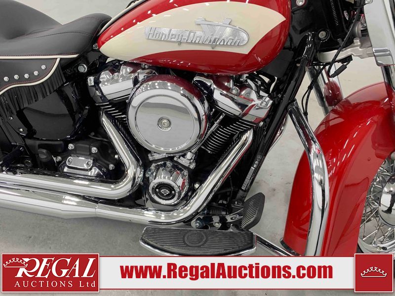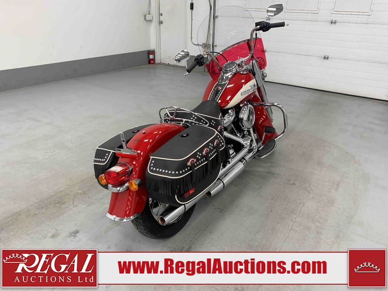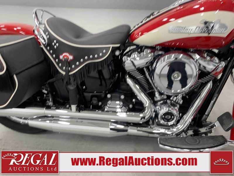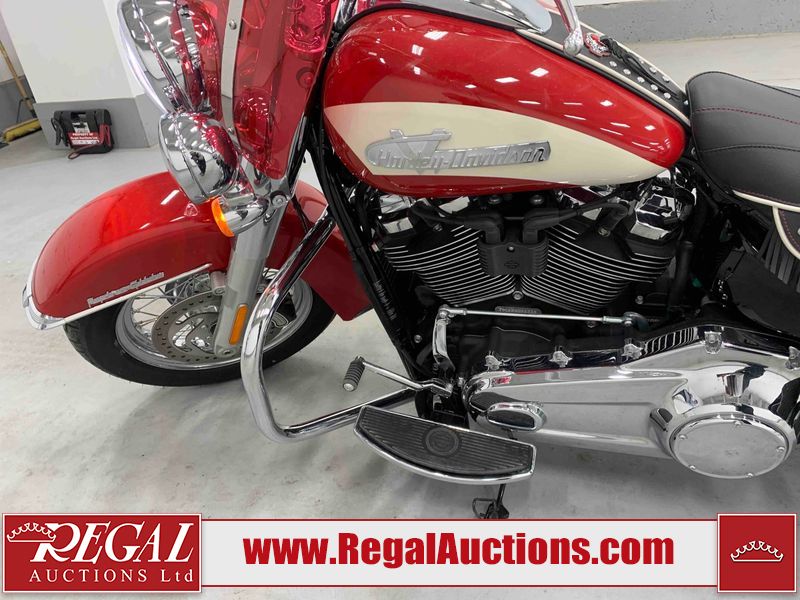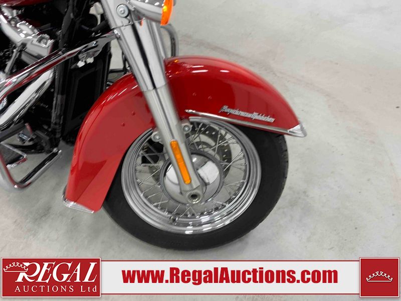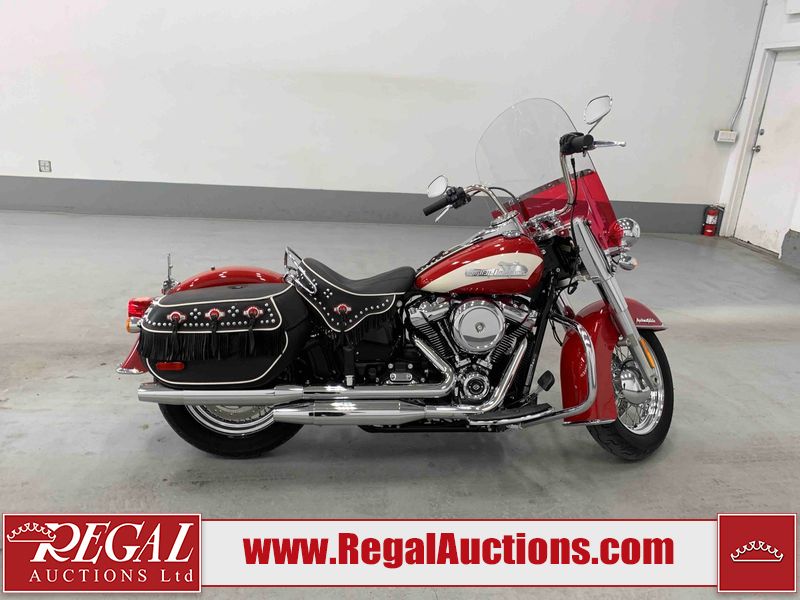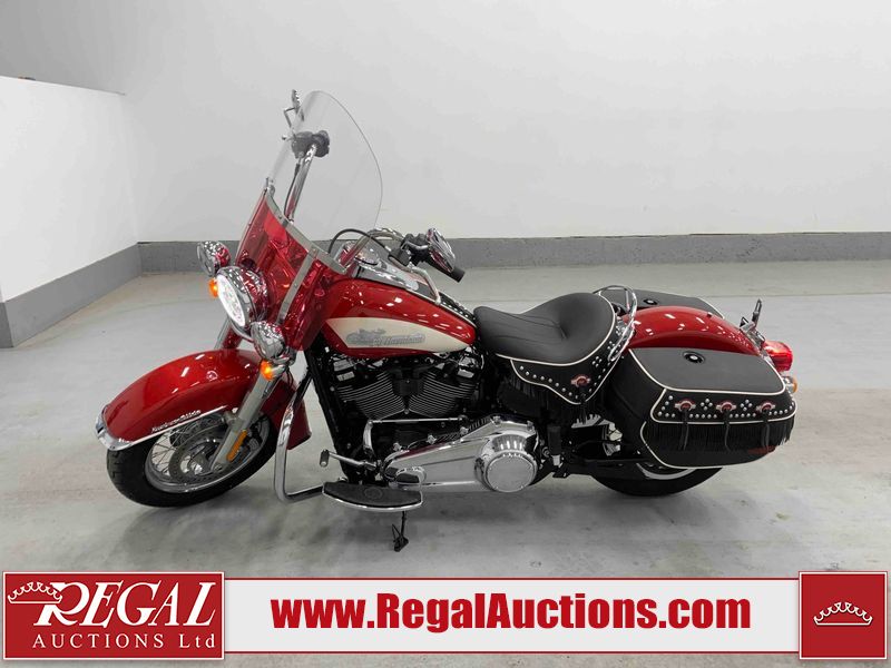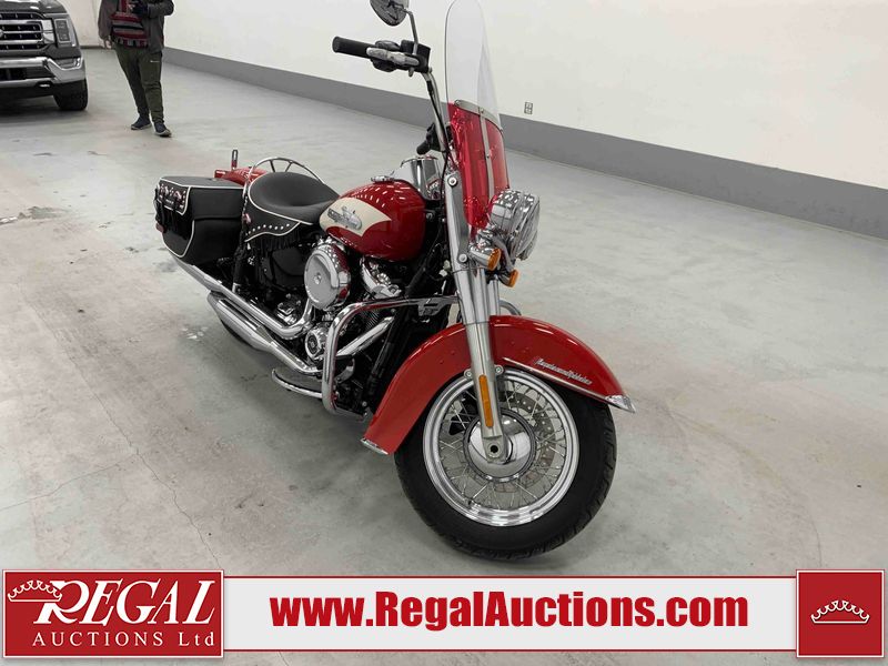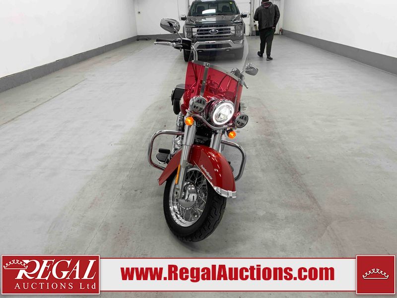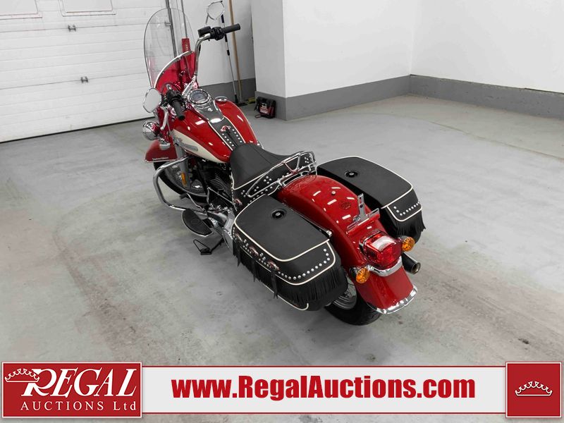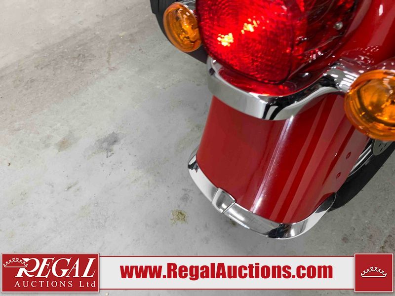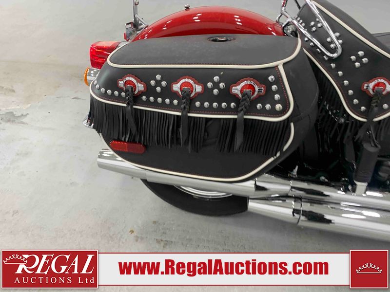 This cruise style motorcycle is a Harley Davidson FLI hydra glide revival model. The odometer reads 1446 km. The gas tank has minor scuffs. This unit starts and runs without a boost. This unit is powered by a 1868 cc air/oil cooled the V twin engine and a six speed manual transmission with a chain final drive. This unit is equipped with cruise control, a second seat, trickle charger, and a cover.