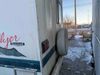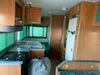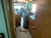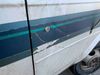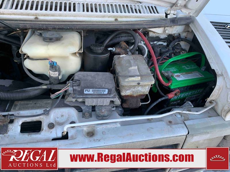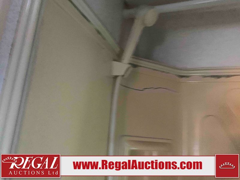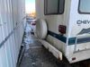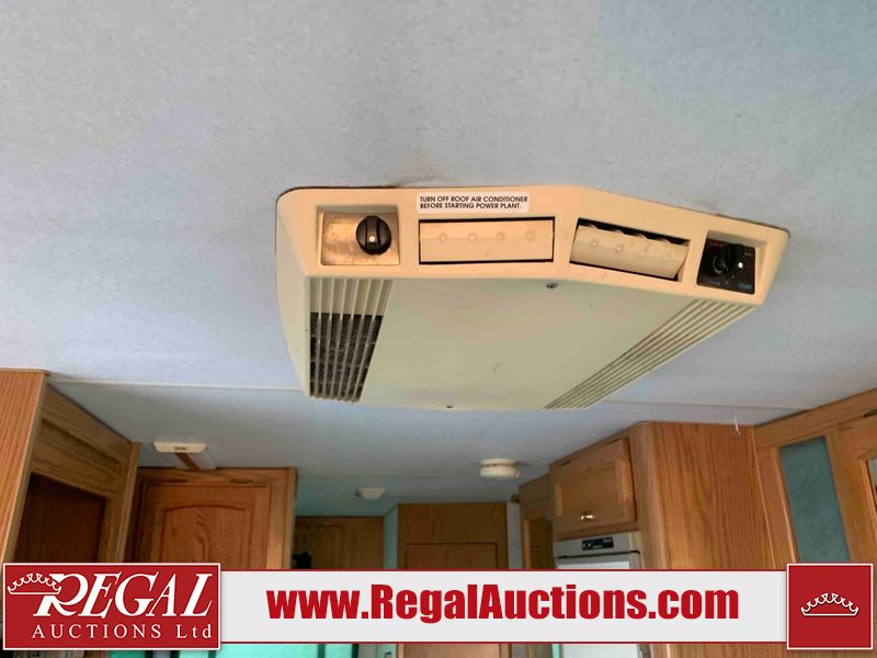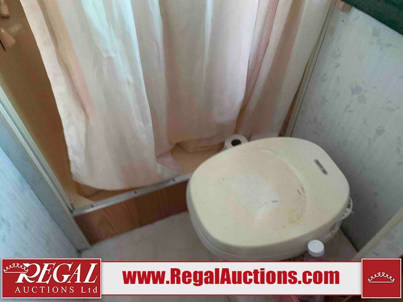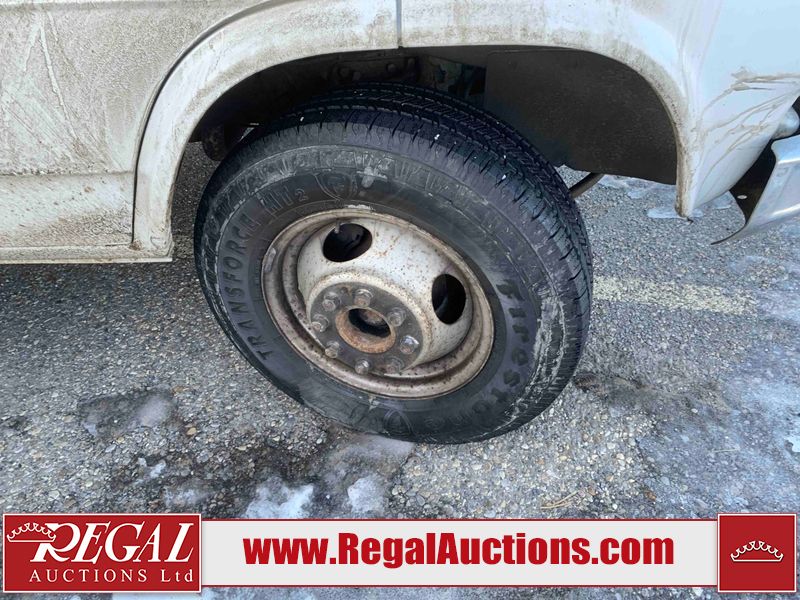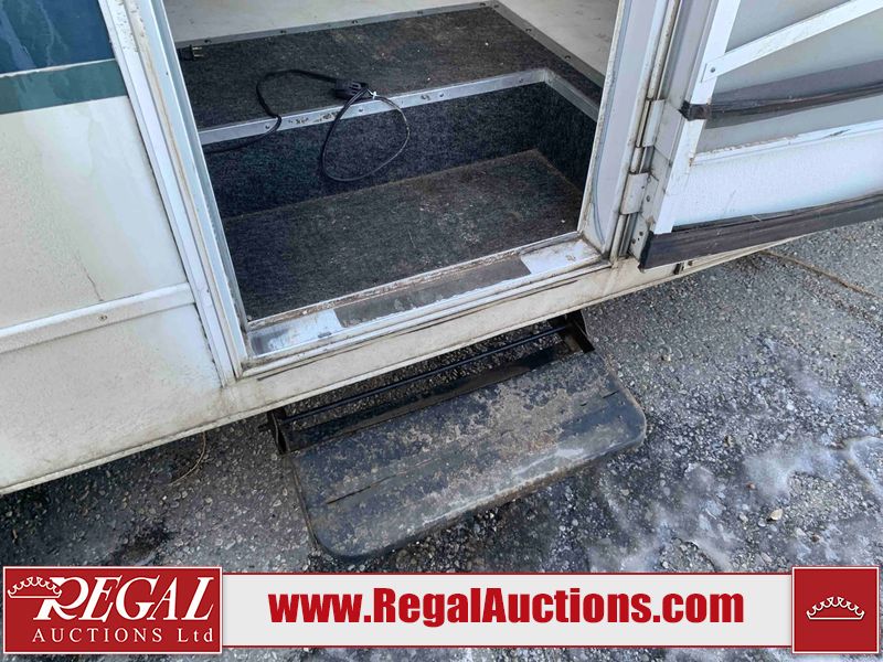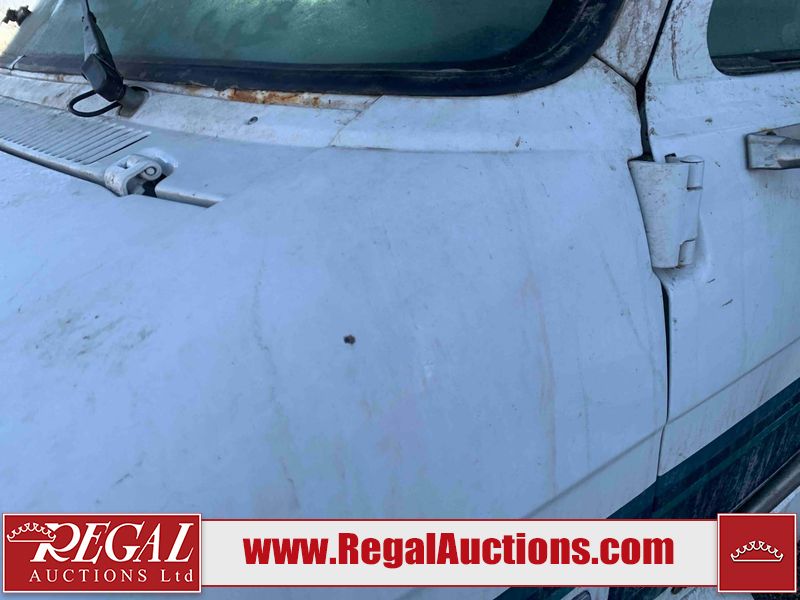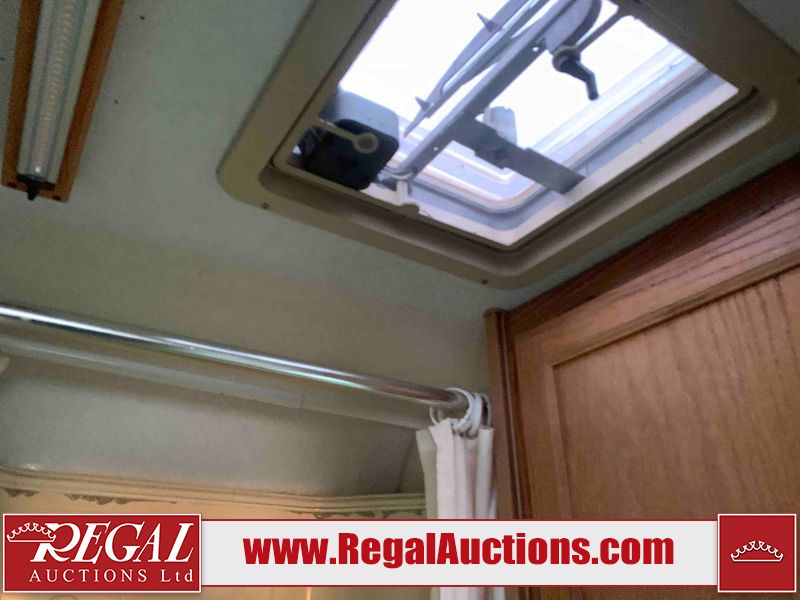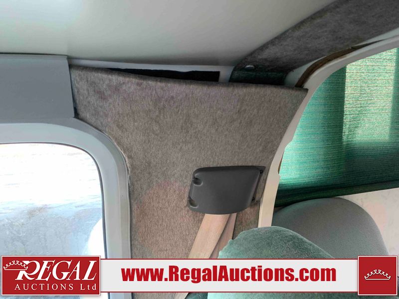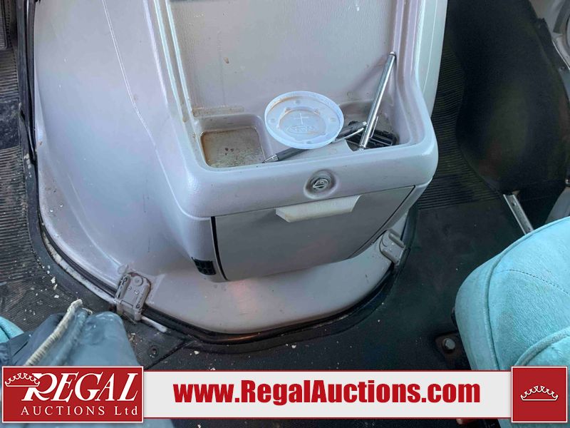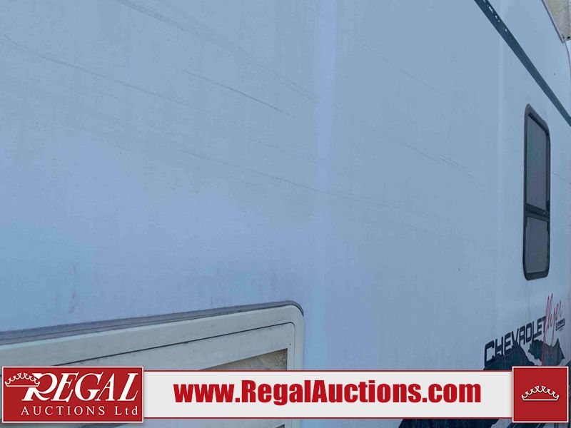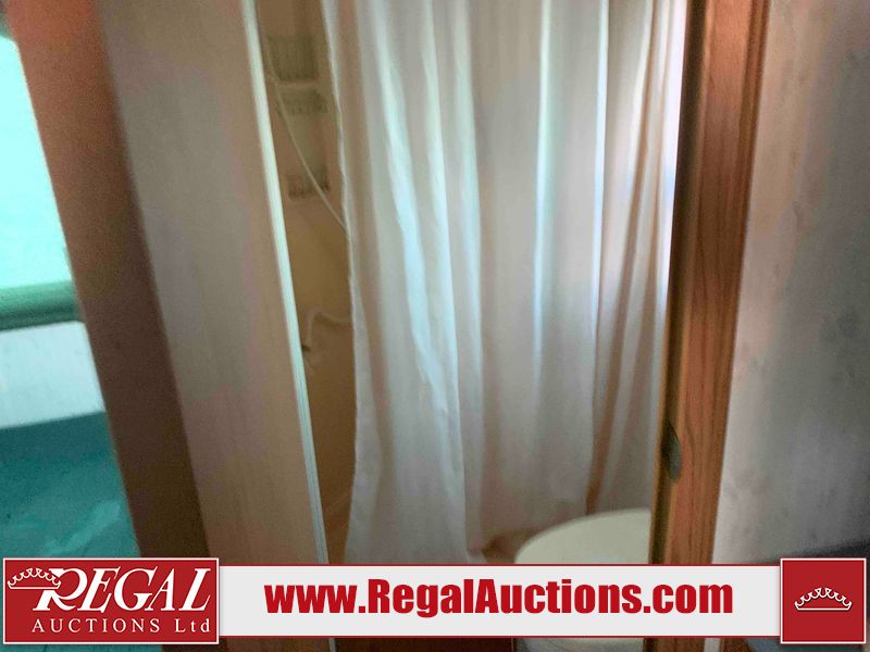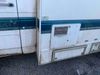 This Class C RV is a 1995 Chevrolet C30 Chassis with a model Fleetwood Flyer special coach. The odometre reads 251,003 kilometres. The chassis vin has been removed, and cannot be confirmed. This unit is equipped with a single door entry, and roof air. The interior is dirty. The coach fabrics are stained. The mattress is stained. The rear wall is cracked and peeling. One of the kitchen cabinet doors has been removed. The cab wall trim is peeling. Some of the cab walls are separating. Exterior walls are made of hard wall fiberglass. All are showing scratches and stuff. Some decals are peeling. Both The left, and right wall are showing water delamination. The rear bumper has peeling paint, surface rust, and is misaligned. The right wall is gouged. The right cab door is dented. The roof has peeling paint. This unit starts and runs with a booth. This unit is powered by a 5.7 Litre eight cylinder GM engine and an automatic transmission. The serpentine belt is noisy. The tires are mounted to steel rims and appear to be good enough for you. This unit is equipped with a refrigerator, three burner stove top, and a oven. The layout consists of a dinette in the front, catching it in the center, and a bed/bathroom in the rear.