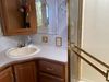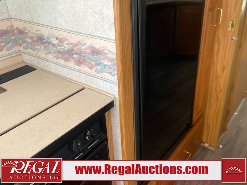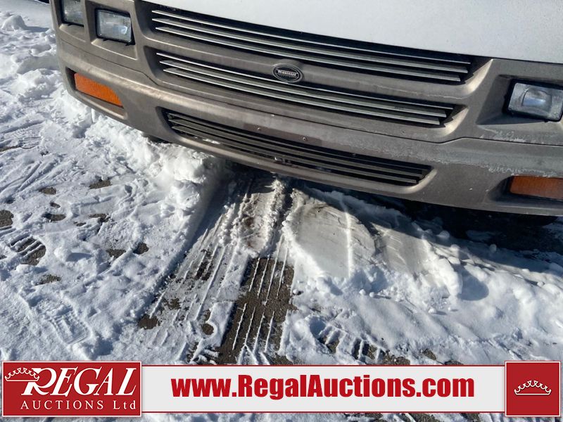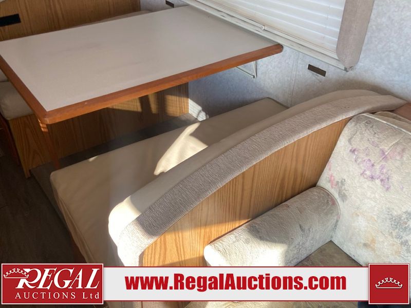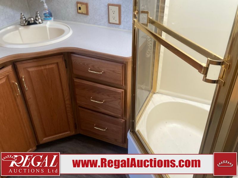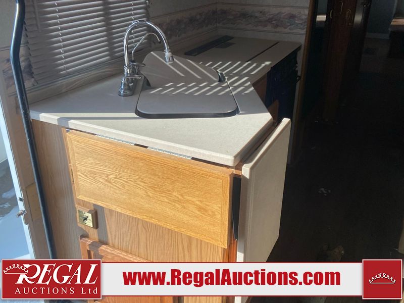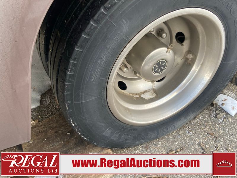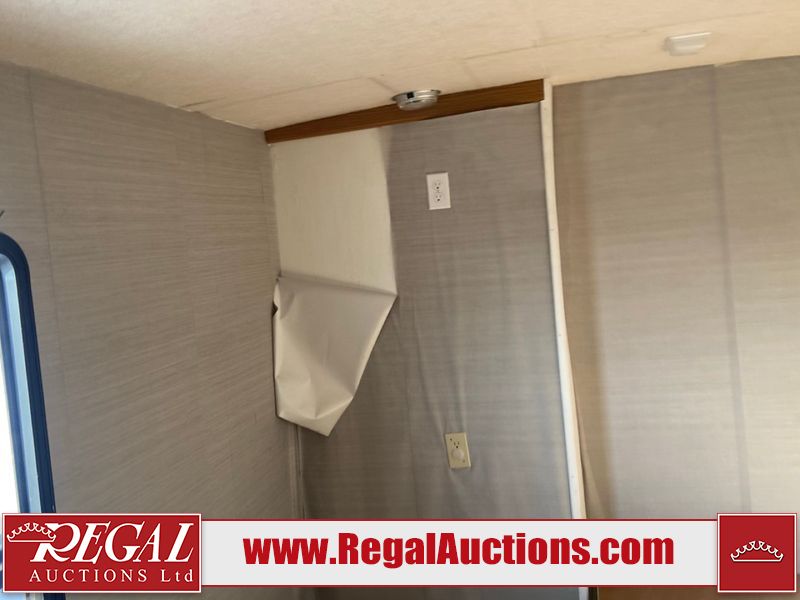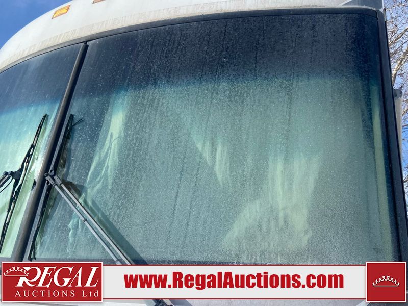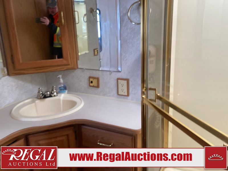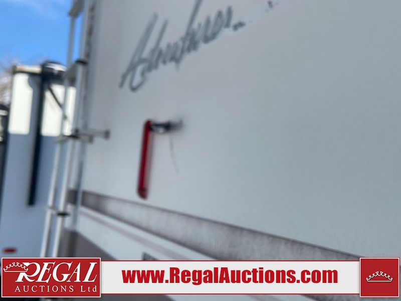 This unit is a 1999 Winnebago adventure model coach on a Ford chassis. The odometer reads 51,106 miles. This unit has two entry doors, roof air and a single slide out, accommodating the living area/dinette. The interior is dirty. The flooring has been replaced. The wooden trim has scratches and scuffs. The dashboard is peeling. The bedroom wall is peeling. The exterior walls are made of Hard wall fiberglass. The front end has chips. The top marker lights are cracked. Most decals are appealing. The side walls have scratches and scrapes. The left side wall has water delamination. The left rear corner has deep scrapes and cracks. All tail lights are cracked/broken. The right side window seal is broken. The engine turns over but will not start. Both batteries are missing. The driveshaft has been disconnected, the condition of the transmission and rear end are unknown. This unit is powered by a 6.8 L 10 cylinder engine and an automatic transmission. The tires appear to be in good enough condition for use. This unit is equipped with a Cummins ONAN 5000 generator. The layout consists of a living area/kitchen at the front, a washroom at the center and a master bedroom at the rear. This unit is equipped with a three burner stove, top, oven, microwave, refrigerator, and a stereo system. It also has a front mounted television.