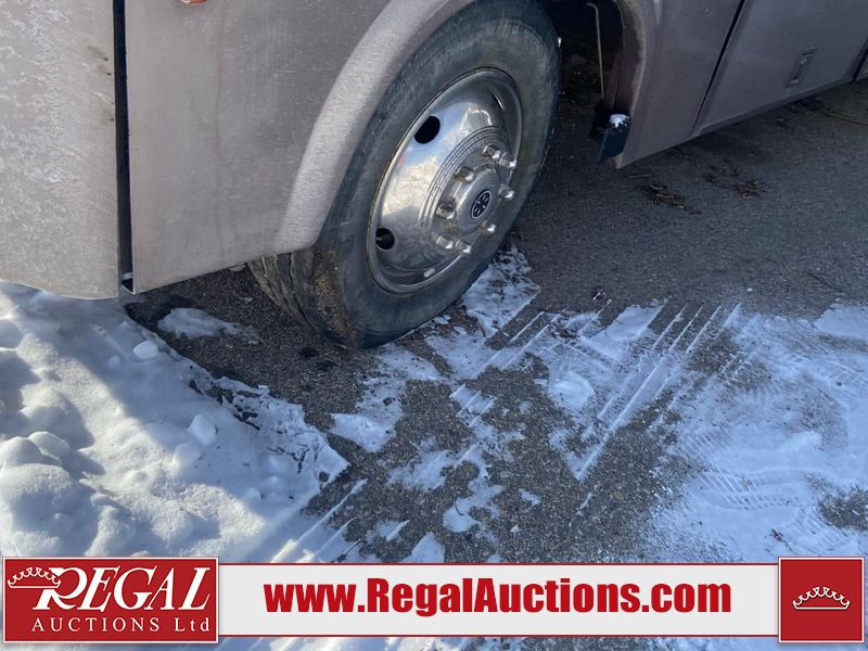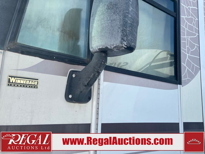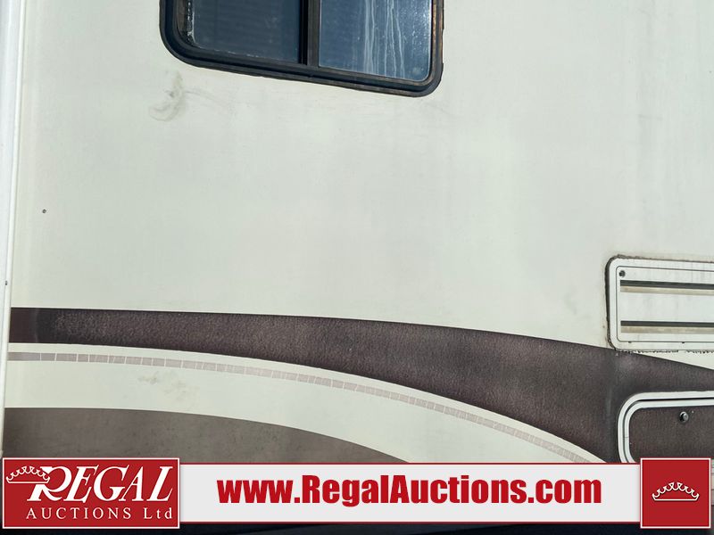 This unit is a 1999 Winnebago Adventure WFG37G Class A Motorhome on a Ford chassis. The odometer reads 51,106 miles. This unit has two entry doors, roof air and a single slide out, accommodating the living area/dinette. The interior is dirty. The flooring has been replaced. The wooden trim has scratches and scuffs. The dashboard is peeling. The bedroom wall is peeling. The exterior walls are made of Hard wall fiberglass. The front end has chips. The top marker lights are cracked. Most decals are appealing. The side walls have scratches and scrapes. The left side wall has water delamination. The left rear corner has deep scrapes and cracks. All tail lights are cracked/broken. The right side window seal is broken. The engine only starts when the battery boost button is pressed. The driveshaft has been disconnected, the condition of the transmission and rear end are unknown. This unit is powered by a 6.8 L 10 cylinder engine and an automatic transmission. The tires appear to be in good enough condition for use. This unit is equipped with a Cummins ONAN 5000 generator. The layout consists of a living area/kitchen at the front, a washroom at the center and a master bedroom at the rear. This unit is equipped with a three burner stove, top, oven, microwave, refrigerator, and a stereo system. It also has a front mounted television.