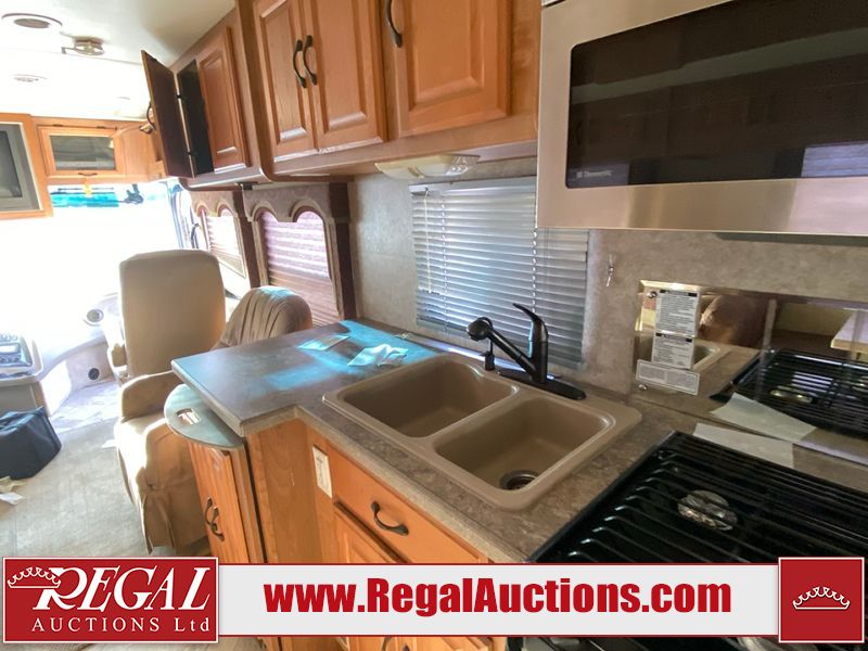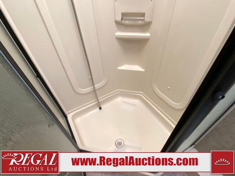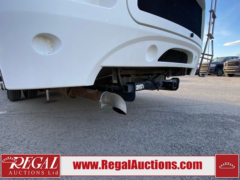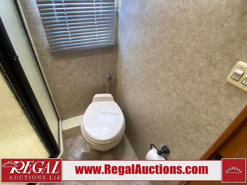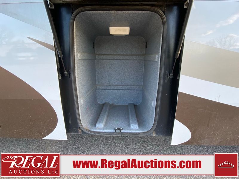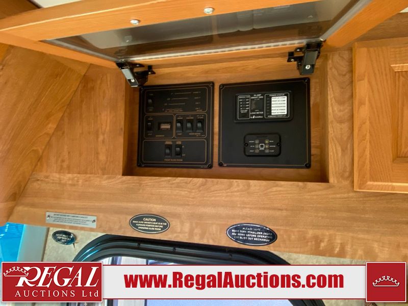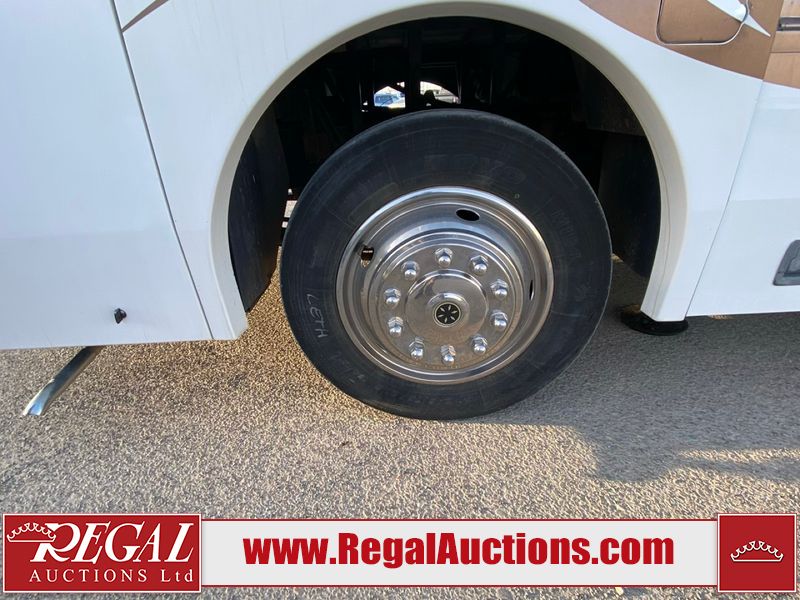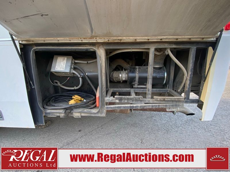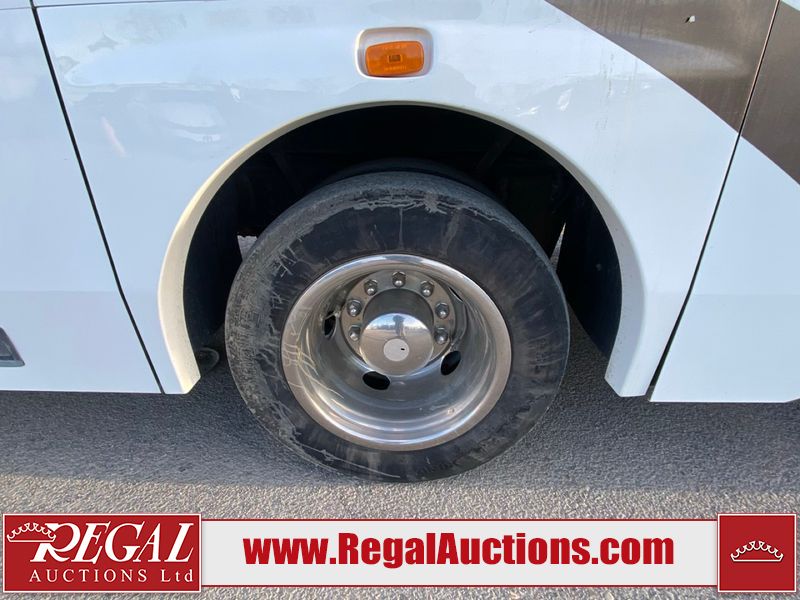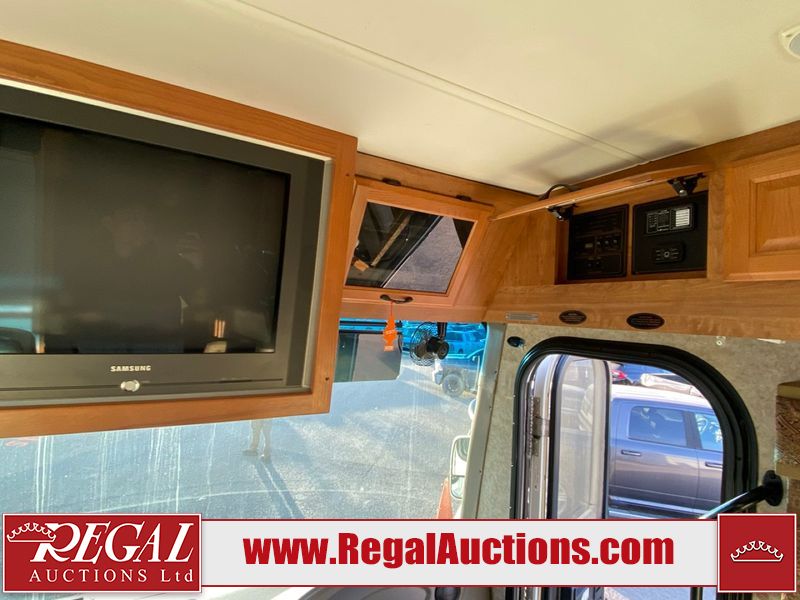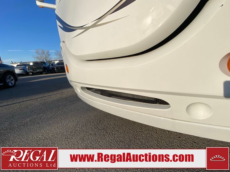 This motorhome is a 2006 coachman Cross country 382DS model built on a freightliner XC – S chassis. The odometer shows 45,640 km. It has a single door entry, roof air, and two slide outs, accommodating the living area. The interior is dirty. The floor is stained. The driver seat armrest is torn. The windshield is cracked. The dashboard is cracked. The roof light is damaged, the floor is cracked and lifting some walls are showing scratches and scuffs. All sky window plastic trims is cracked. The cabin lights has been replaced, and the factory light is missing. The exterior is made out of hard wall fiberglass. All panels are showing chips and scratches. Some decals are peeling and cracking. The left wall has water delamination and is cracked. The rear wall is cracked. The ladder is broken. The slides outs cannot be tested. This unit’s entire interior cab power has been disconnected. It’s condition is unknown. This unit starts and runs without a boost. This unit is powered by a 5.9 L six cylinder turbo, diesel engine and an automatic transmission. This unit is equipped with a Onan quiet diesel 7500 model generator. The engine hours cannot be confirmed. The tires are mounted on steel rims, the rear tires need to be replaced. This this motorhome is equipped with a stereo system, television, DVD player, electric fan, microwave, three burner stove, and a refrigerator. The layout consist of kitchenette/dinette in the front, and a bathroom/master bedroom in the rear.