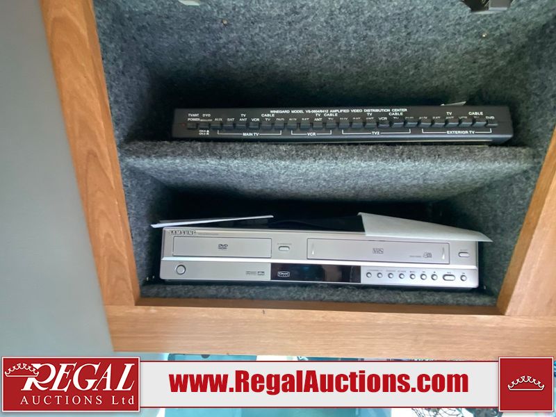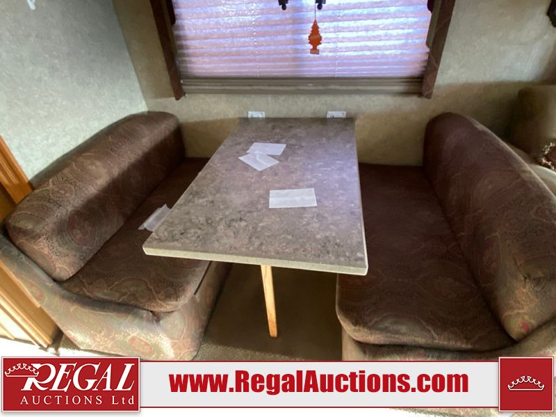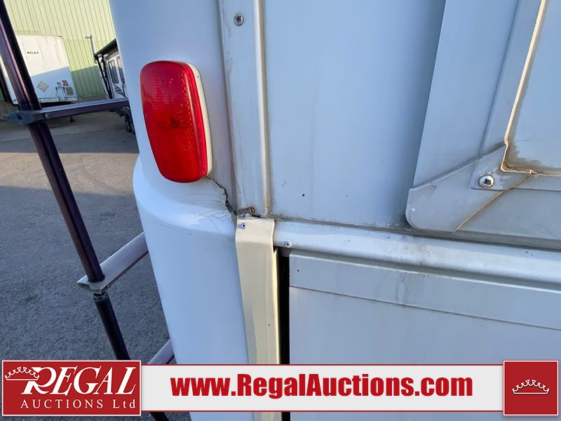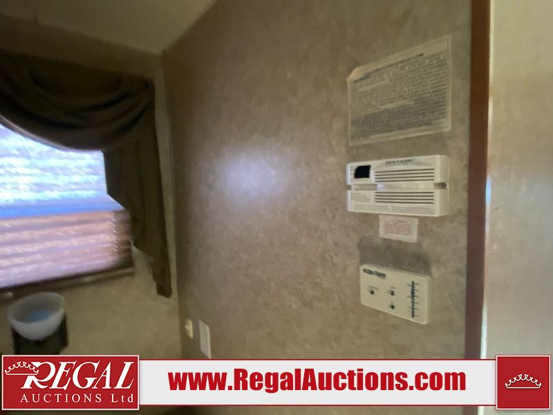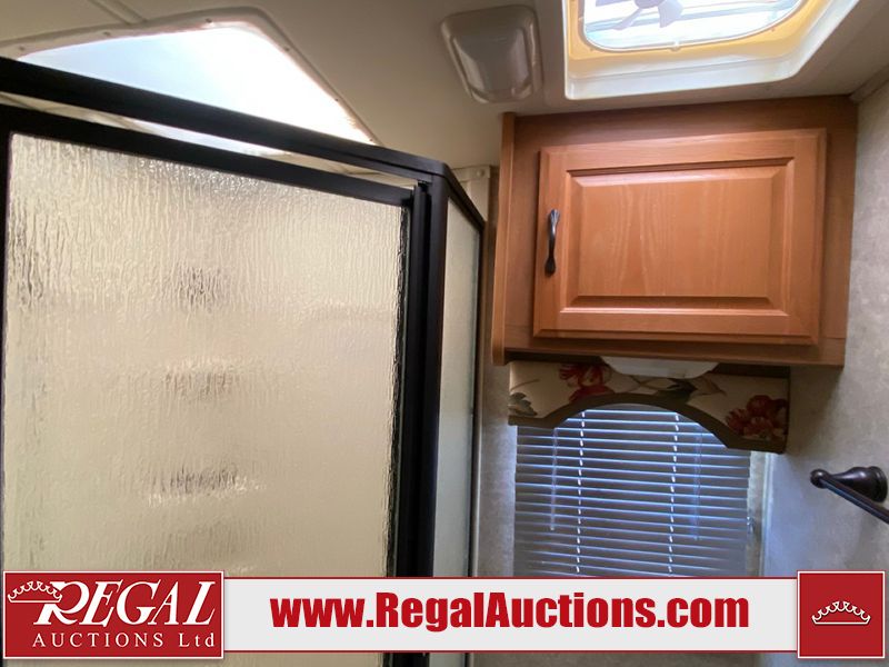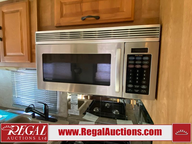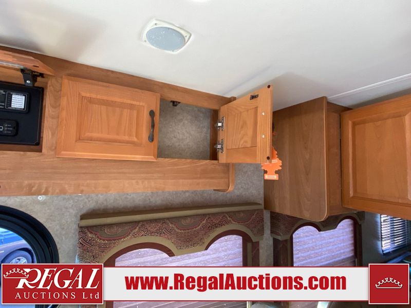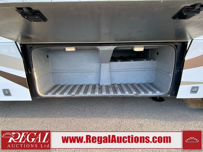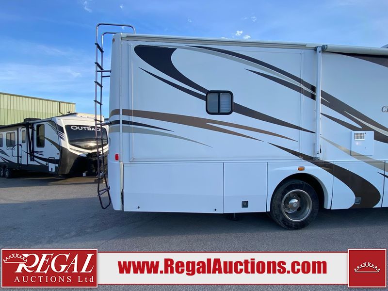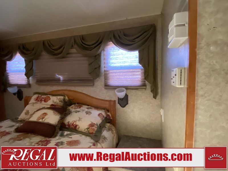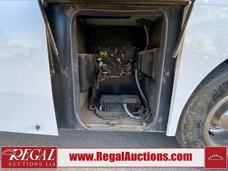 This motorhome is a 2006 coachman Cross country 382DS model built on a freightliner XC – S chassis. The odometer shows 45,640 km. It has a single door entry, roof air, and two slide outs, accommodating the living area. The interior is dirty. The floor is stained. The driver seat armrest is torn. The windshield is cracked. The dashboard is cracked. The roof light is damaged, the floor is cracked and lifting some walls are showing scratches and scuffs. All sky window plastic trims is cracked. The cabin lights has been replaced, and the factory light is missing. The exterior is made out of hard wall fiberglass. All panels are showing chips and scratches. Some decals are peeling and cracking. The left wall has water delamination and is cracked. The rear wall is cracked. The ladder is broken. The slides outs cannot be tested. This unit’s entire interior cab power has been disconnected. It’s condition is unknown. This unit starts and runs without a boost. This unit is powered by a 5.9 L six cylinder turbo, diesel engine and an automatic transmission. This unit is equipped with a Onan quiet diesel 7500 model generator. The engine hours cannot be confirmed. The tires are mounted on steel rims, the rear tires need to be replaced. This this motorhome is equipped with a stereo system, television, DVD player, electric fan, microwave, three burner stove, and a refrigerator. The layout consist of kitchenette/dinette in the front, and a bathroom/master bedroom in the rear.