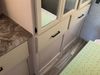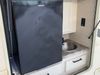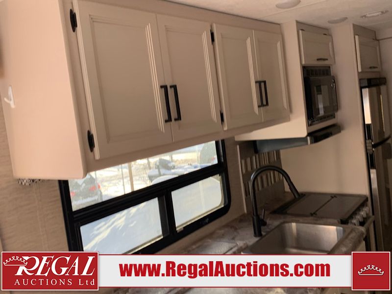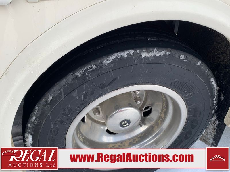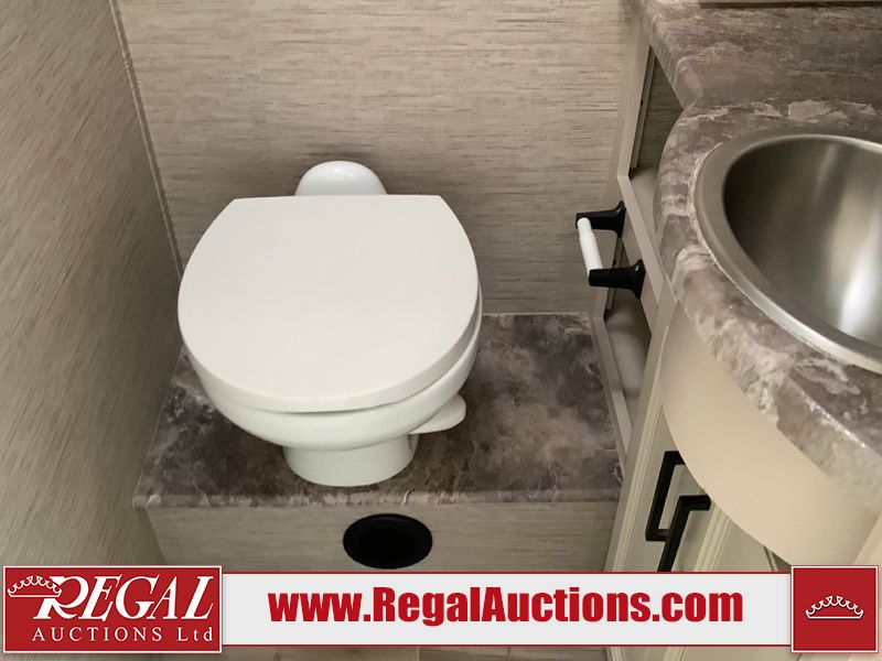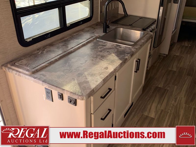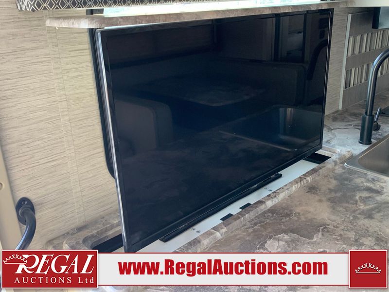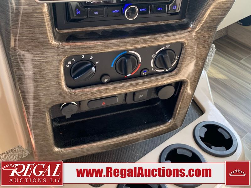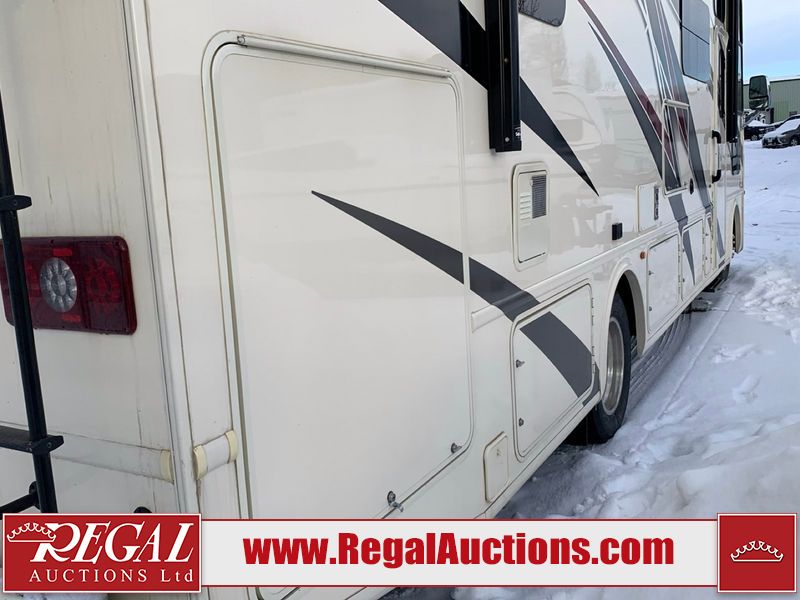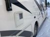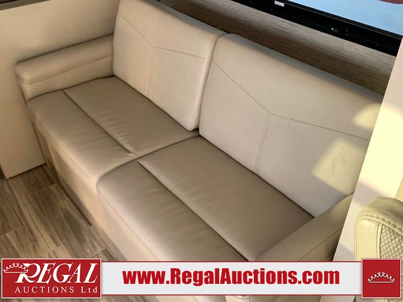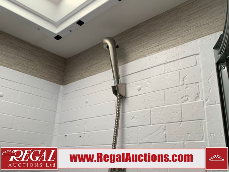This Class C motorhome is a 2022 Thor Motorcoach Ace 30.3 coach on a Ford Chassis. The odometer reads 9760. This unit is cooked with a single entry door, roof air and two slide outs, accommodating, the master bedroom and the living area/kitchen. The exit door gas shock is not attached. The floor is dirty. The front end has chips. There are scratches on the right side wall. The engine starts and runs without a boost. This unit is powered by a 7.3l litre eight cylinder engine and an automatic transmission. Steel rims are mounted, the tires have plenty of tread remaining. The generator has 40 hours. This unit is equipped with an Onan QG 5500 generator. The layout consist a living area/kitchen at the front and a master bedroom at the rear. The unit is equipped with air conditioning, burner, stove, top, oven, microwave, refrigerator, stereo system, and two flatscreen televisions. It also has an exterior kitchen with a sink and mini refrigerator.