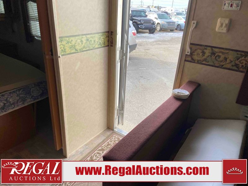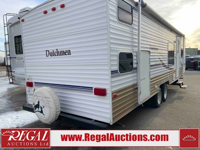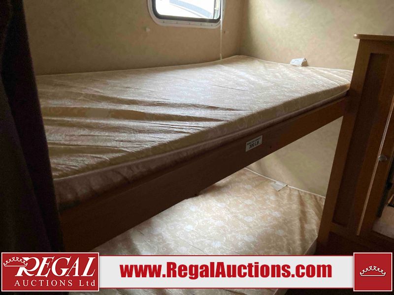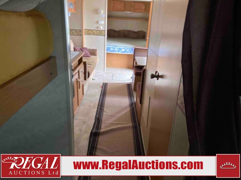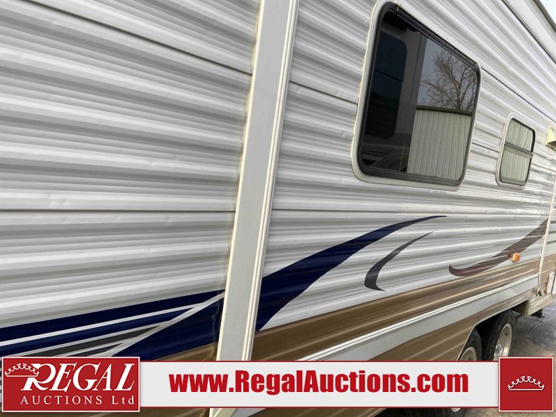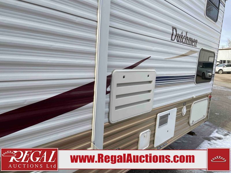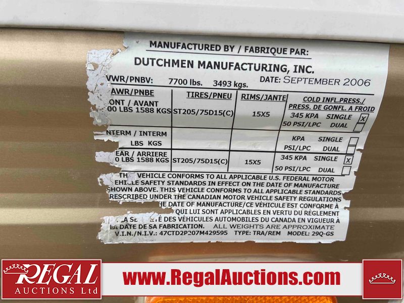 SR is a 2007 Dutchman INC light 29QGS model Tata Maxwell bumper pull trailer. It has a single door entry, roof air, and a single slide out accommodating the living area. The interior is dirty. some walls are showing scratches and scuffs. The bed frame trim is cracked. The shower wall is cracked and separating. Exterior walls are made of softball aluminum. Most panels are showing chips, scratches, and scuffs. The left and rear wall are showing hail damage. The tires are mounted to alloy rims and appear to be in good enough condition for use. This unit is equipped with a microwave, three burner, stove, top, oven,, refrigerator, television, and a stereo system. The layout consist of a master bedroom in the front, kitchenette/dinette in the center, and a bunkhouse/bathroom in the rear.