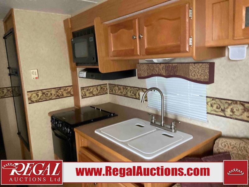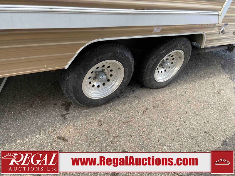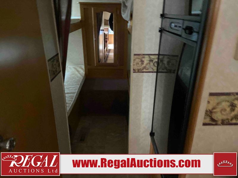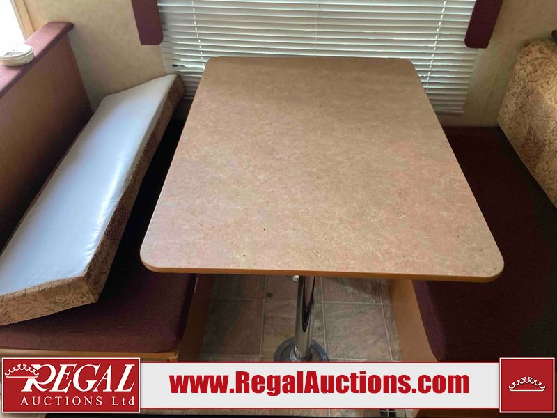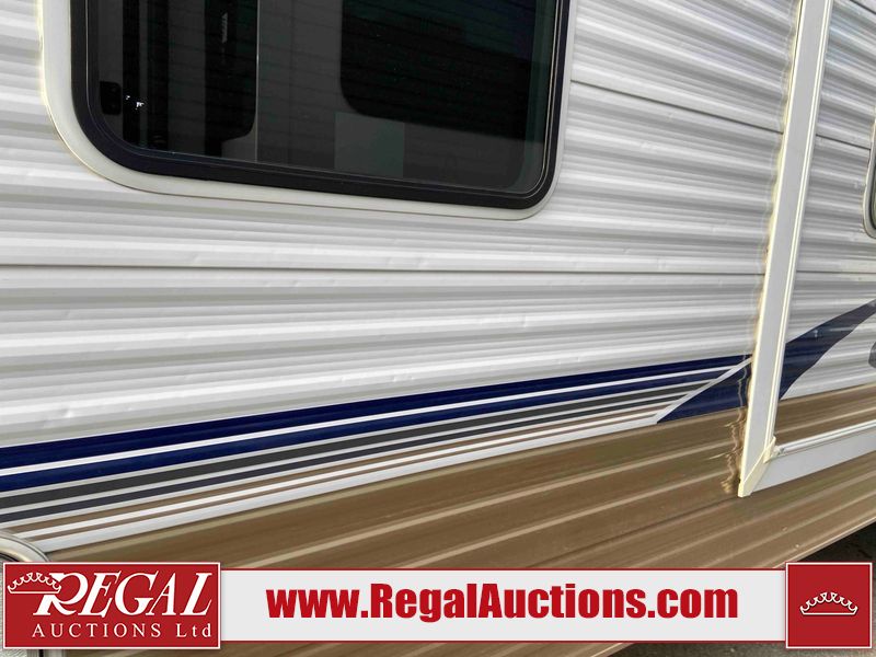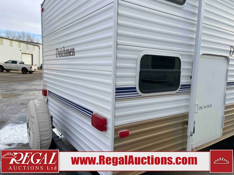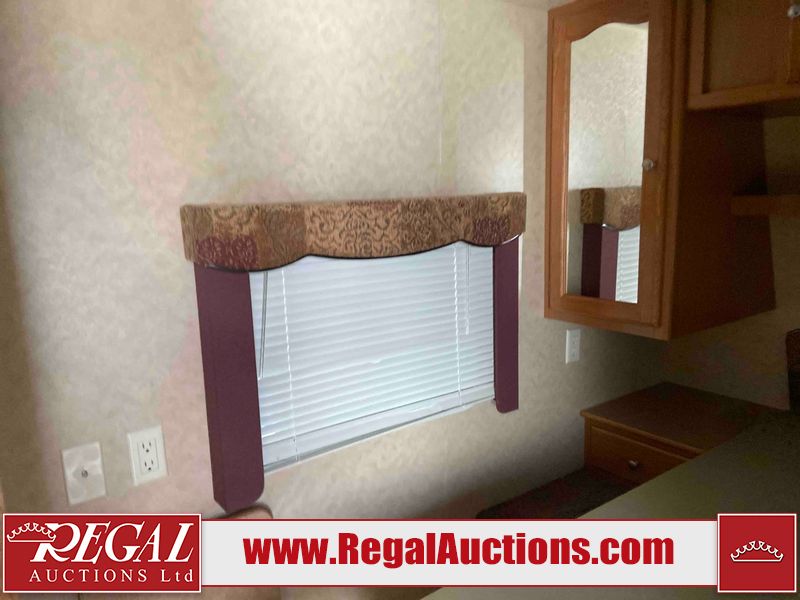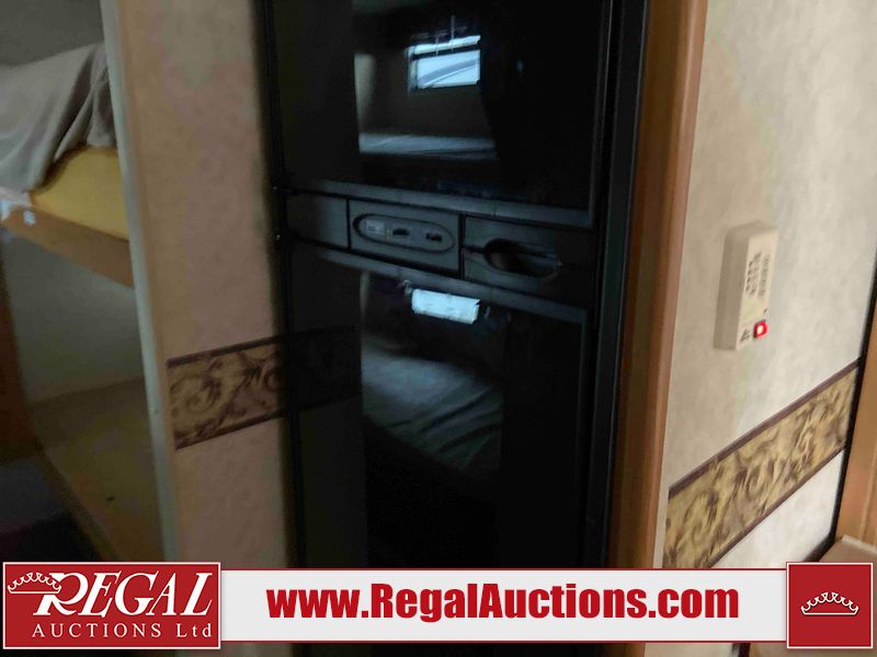 SR is a 2007 Dutchman INC light 29QGS model Tata Maxwell bumper pull trailer. It has a single door entry, roof air, and a single slide out accommodating the living area. The interior is dirty. some walls are showing scratches and scuffs. The bed frame trim is cracked. The shower wall is cracked and separating. Exterior walls are made of softball aluminum. Most panels are showing chips, scratches, and scuffs. The left and rear wall are showing hail damage. The tires are mounted to alloy rims and appear to be in good enough condition for use. This unit is equipped with a microwave, three burner, stove, top, oven,, refrigerator, television, and a stereo system. The layout consist of a master bedroom in the front, kitchenette/dinette in the center, and a bunkhouse/bathroom in the rear.
