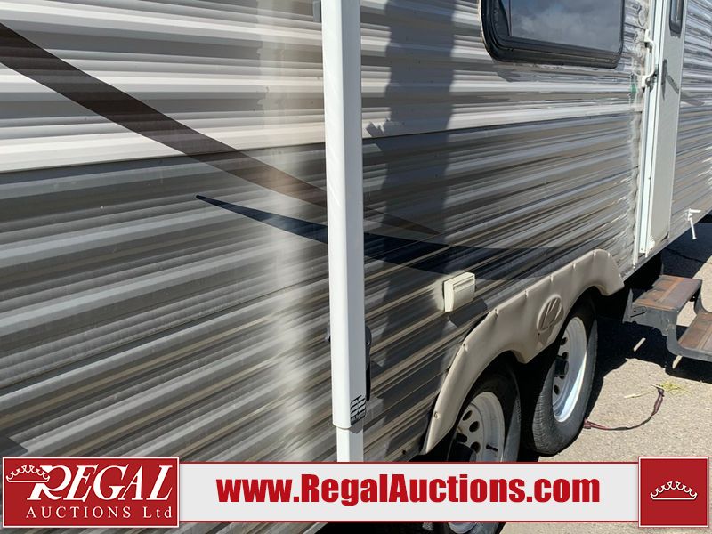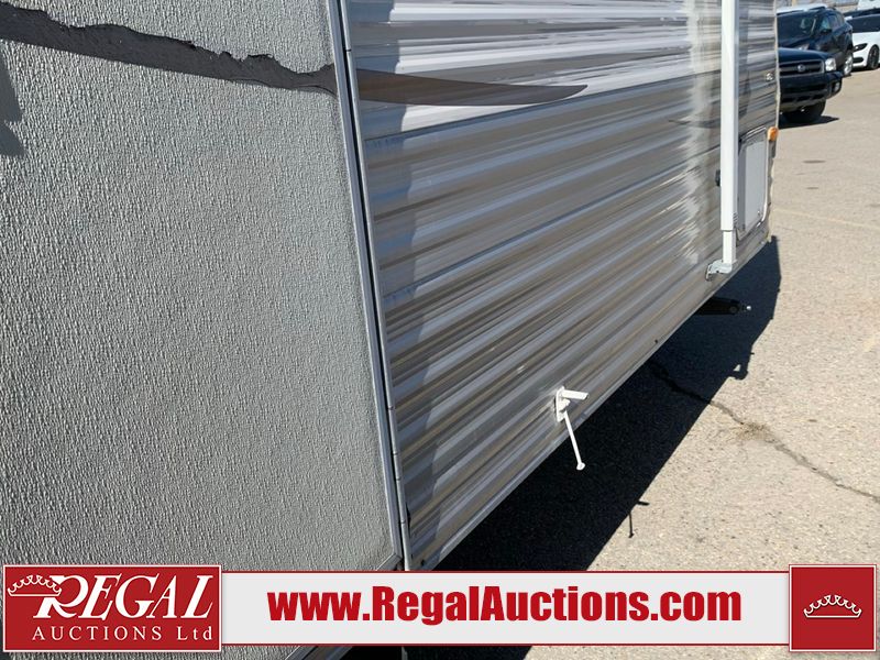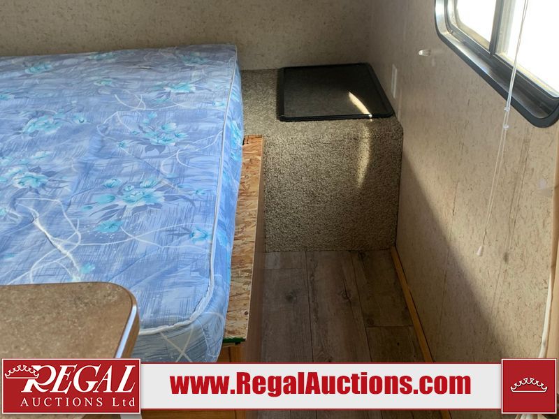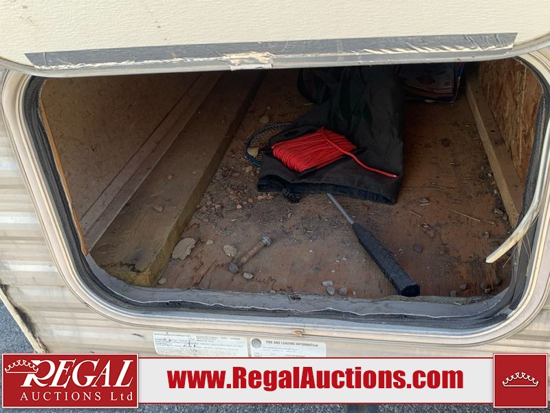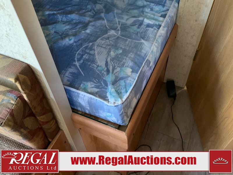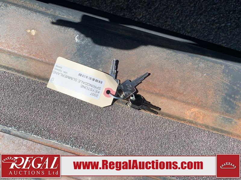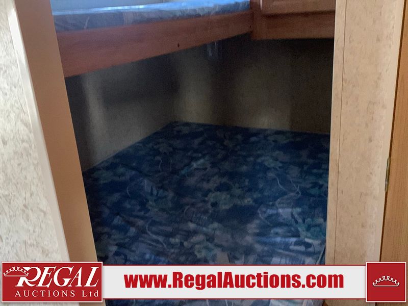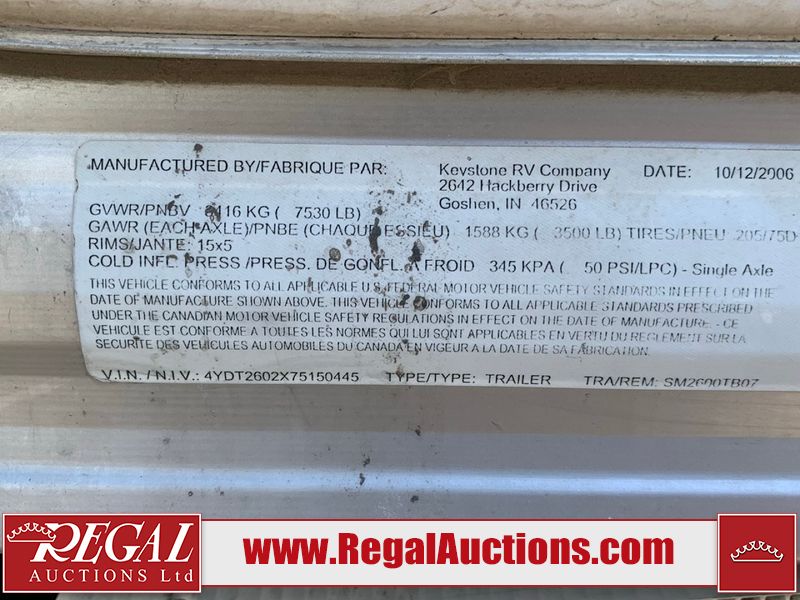 This RV is a 2007 Springdale Summerland Series TBL bumper 2600 model tandem axle pull trailer, it has a single door entry, and roof air. The interior is dirty. There are some scratches, and scuffs on some walls. The power outlet in the master bedroom is cracked. The floor is separating. The exterior walls are made out of soft wall aluminum. There are some scratches and dents on some walls. The left fender is cracked. The unit is missing the battery and propane tanks. The tires are mounted to steel wheels and appear to be in good enough condition for use. The unit is equipped with a television, stereo system, three stove burner top, microwave, oven, television, and a refrigerator. The layout consist of the master bedroom at the front, dinette/kitchenette in the center, and a bunkhouse/bathroom at the rear.