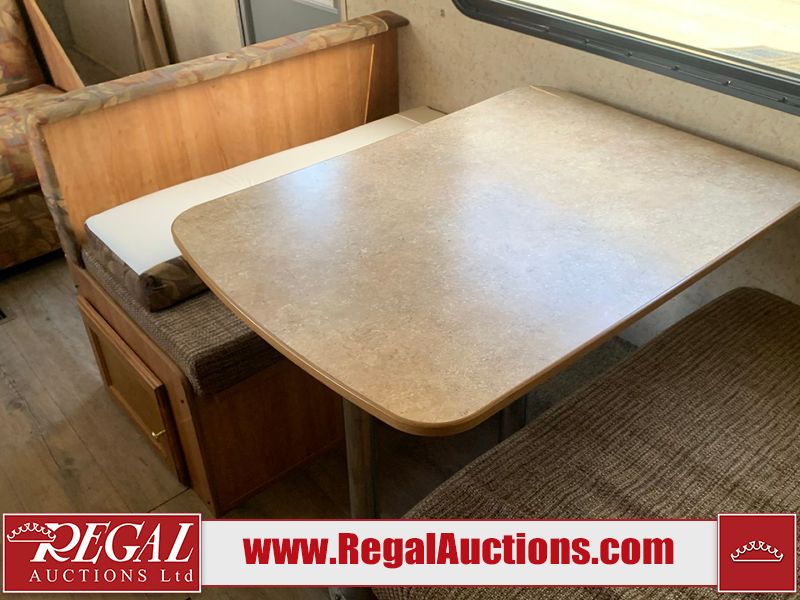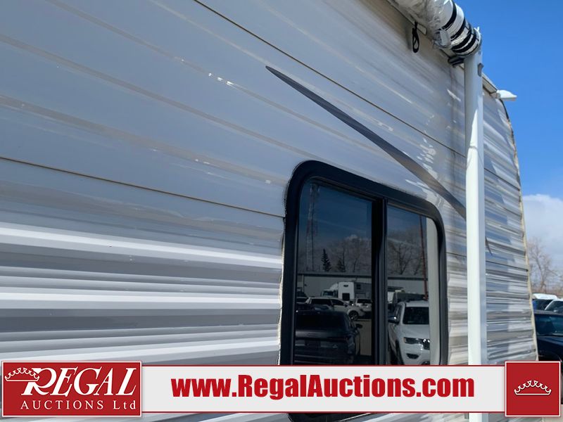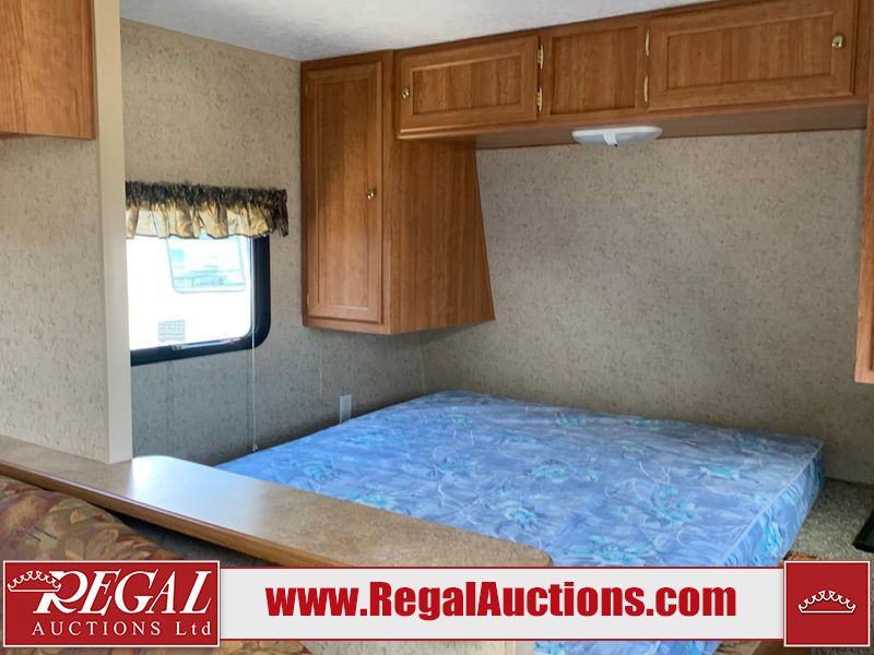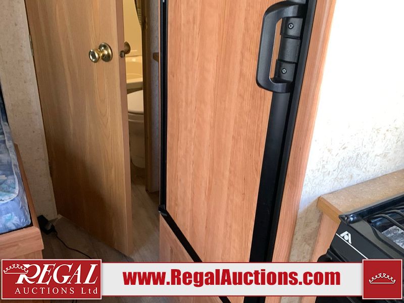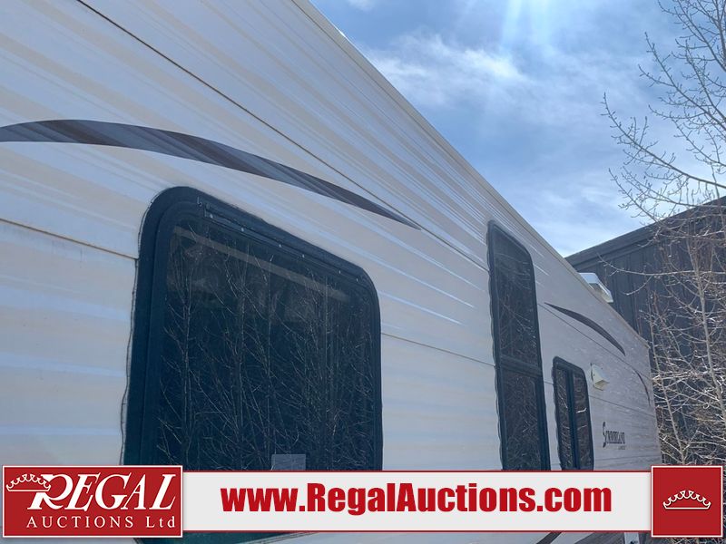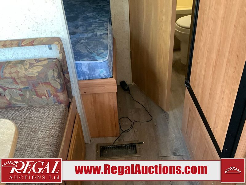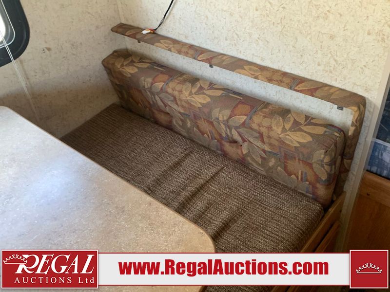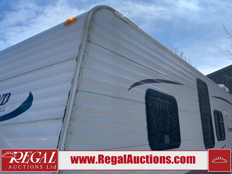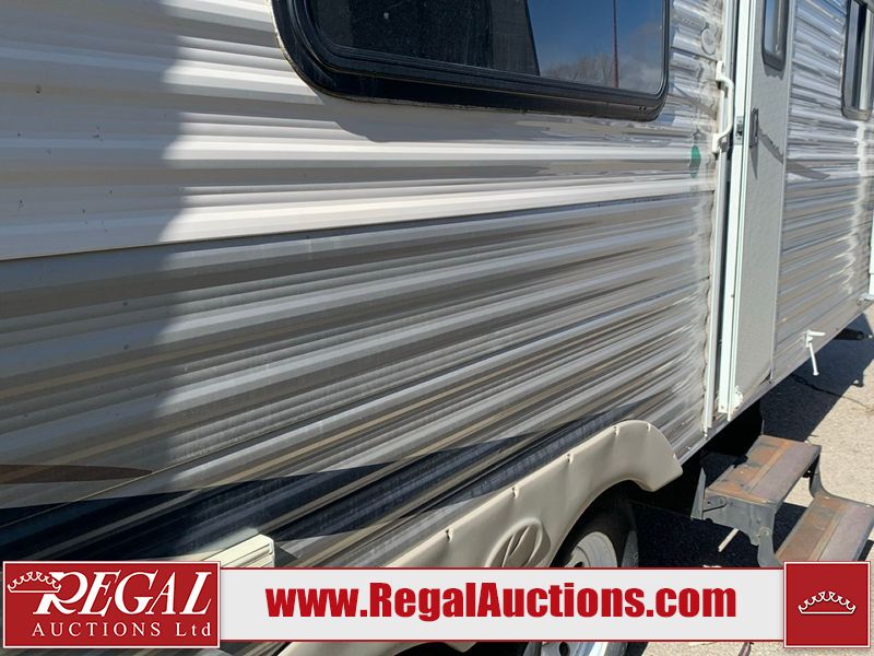 This RV is a 2007 Springdale Summerland Series TBL bumper 2600 model tandem axle pull trailer, it has a single door entry, and roof air. The interior is dirty. There are some scratches, and scuffs on some walls. The power outlet in the master bedroom is cracked. The floor is separating. The exterior walls are made out of soft wall aluminum. There are some scratches and dents on some walls. The left fender is cracked. The unit is missing the battery and propane tanks. The tires are mounted to steel wheels and appear to be in good enough condition for use. The unit is equipped with a television, stereo system, three stove burner top, microwave, oven, television, and a refrigerator. The layout consist of the master bedroom at the front, dinette/kitchenette in the center, and a bunkhouse/bathroom at the rear.