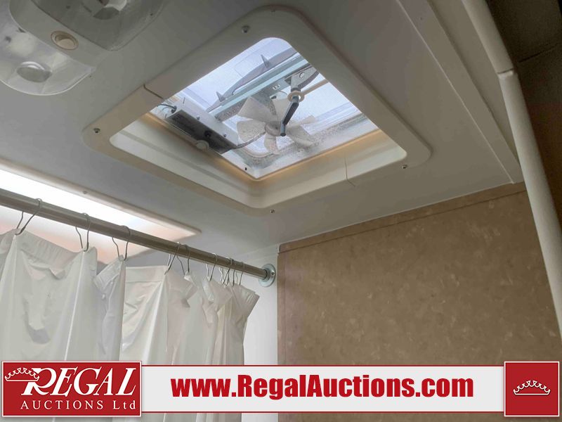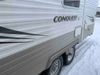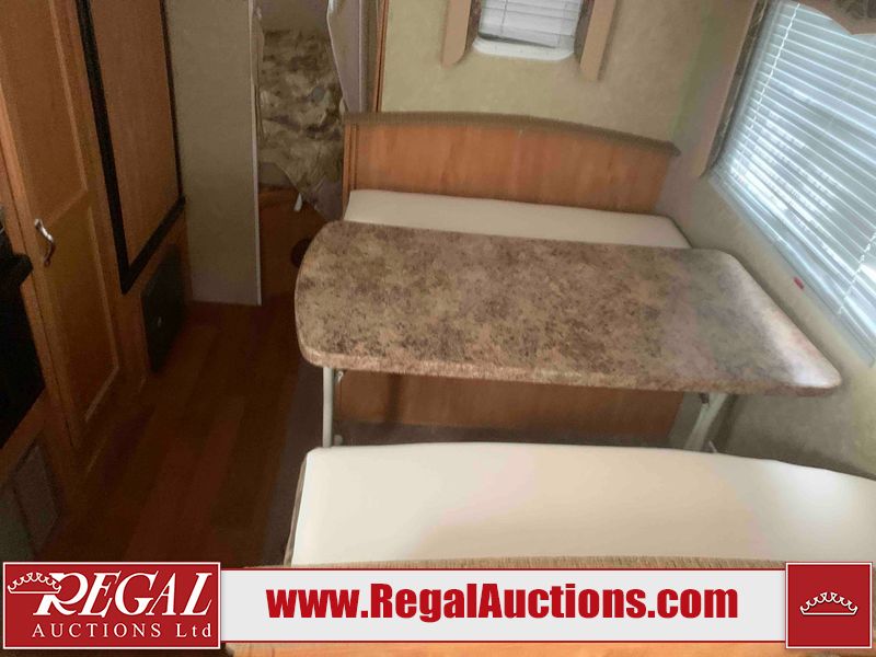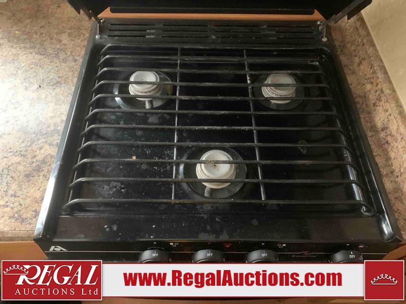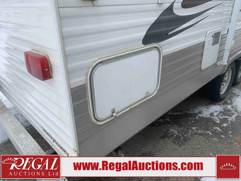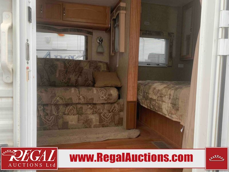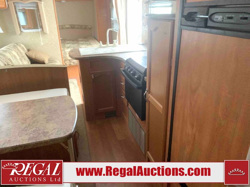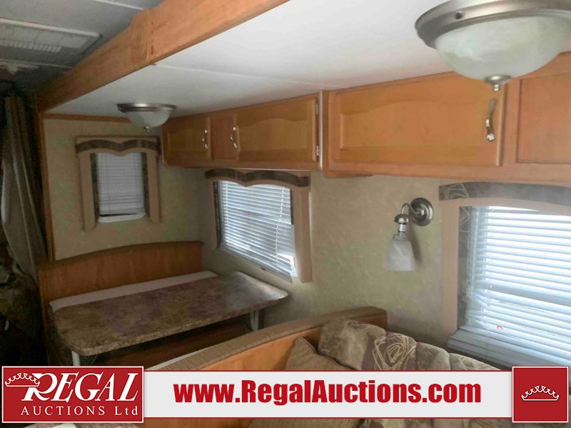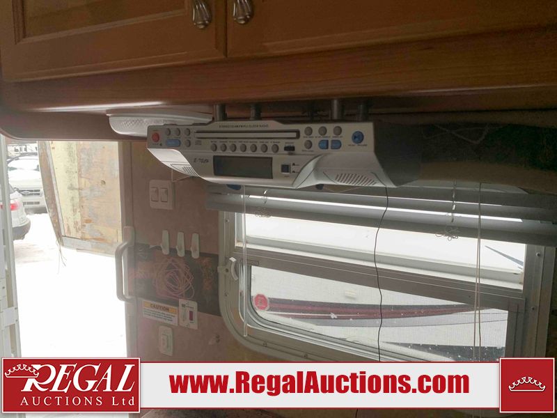This RV is a 2010 golf stream coach Inc. conquest 259BHL model Tatum axle bumper pole trailer. It has a single door entry, roof air, and a single slide out accommodating the living area. The interior is dirty. Some walls are showing scratches and scuffs. The screen door is torn. The slide out trim is peeling. The shower curtain is worn. The ceiling fan trim is cracked. The exterior walls are made of soft wall aluminum. I was a showing scratches and scuffs. All walls have hail damage. Some decals are peeling. This unit does not get power with external power applied. The slide out cannot be tested. The battery is dead. This unit is equipped with a battery, and two propane tanks. The tires are mounted to steel rims and appear to be in good enough condition for use. This unit is equipped with a refrigerator, oven, three burner stove top, microwave, and a stereo system. The layout consist of a master bedroom in the front, kitchenette/dinette in the center, and a bathroom/bunkhouse in the rear.