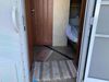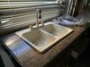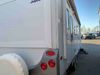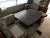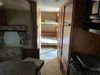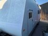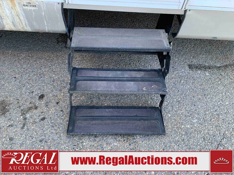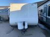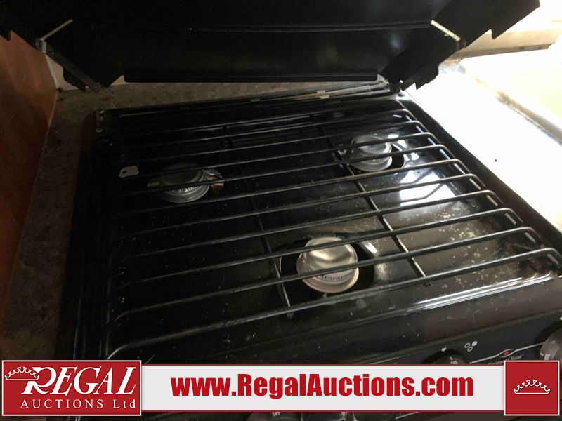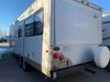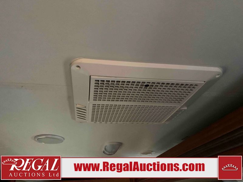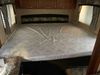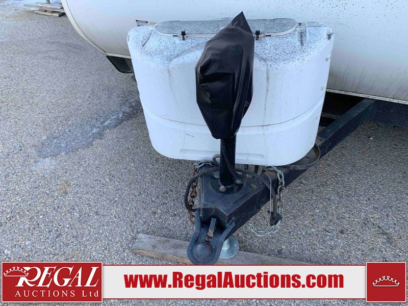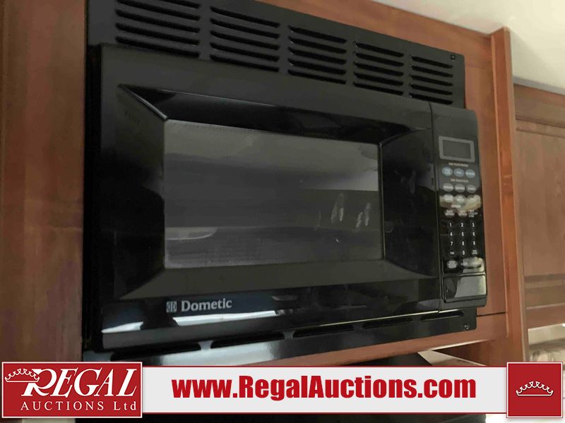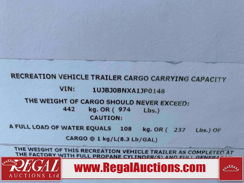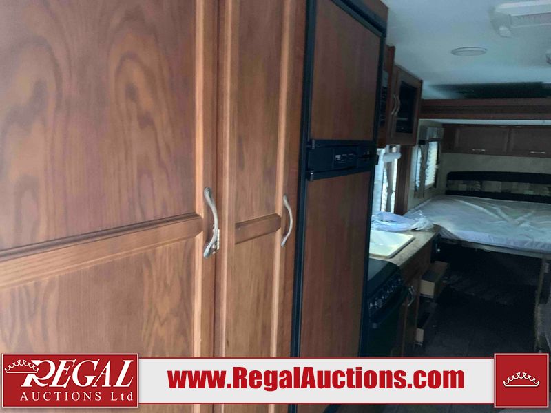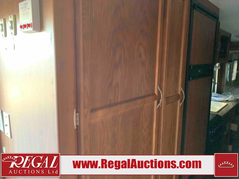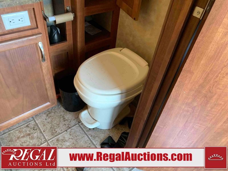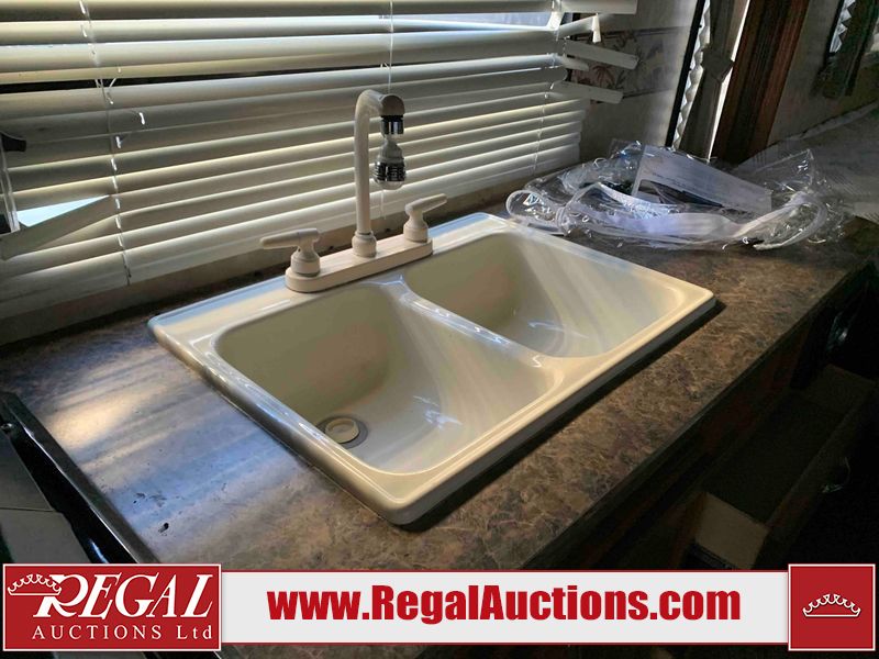 This 28' RV is a 2010 Jayco Feather EXP Series 26P model bumper pull travel trailer. It has two entry doors, roof air and two slide out accommodating, the dinette and the master bedroom. The interior is dirty. The wood trims are showing scratches and scuffs. The ceiling trim is peeling. The kitchen curtains are broken. The exterior walls are made of hard wall fiberglass. All walls have mold spots. Both side walls have scratches and scuffs. The lower curb side wall trim has dents. The door lock is broken. This unit comes with a battery. Both propane tanks are missing. The tires have been mounted to alloy rims and appear to be in good enough condition for use. This unit does not get power with external power applied, the slide outs have not been tested. It is equipped with a refrigerator, microwave, three burner stove top, oven, television, and a stereo system. The layout consists of a bunkhouse/bathroom at the front, kitchen/dinette in the centre and master bedroom at the rear.