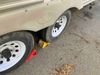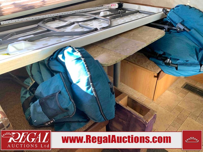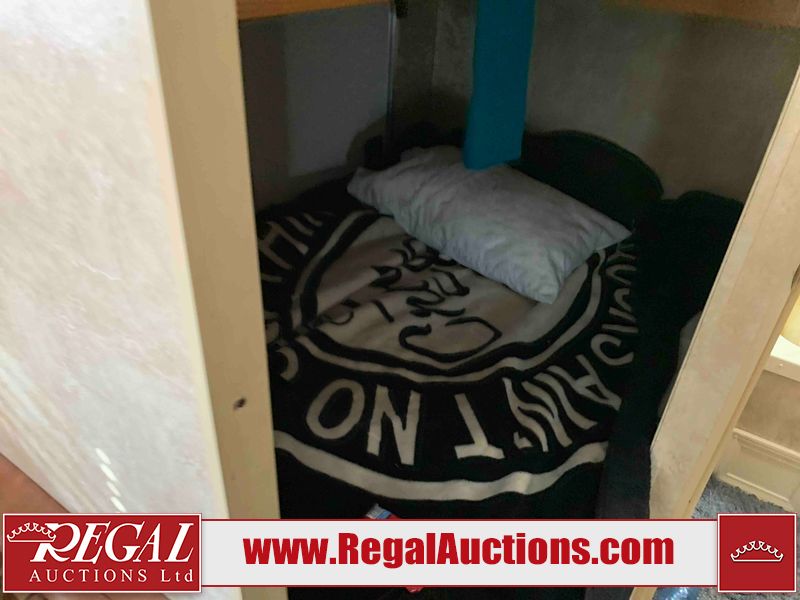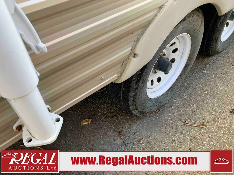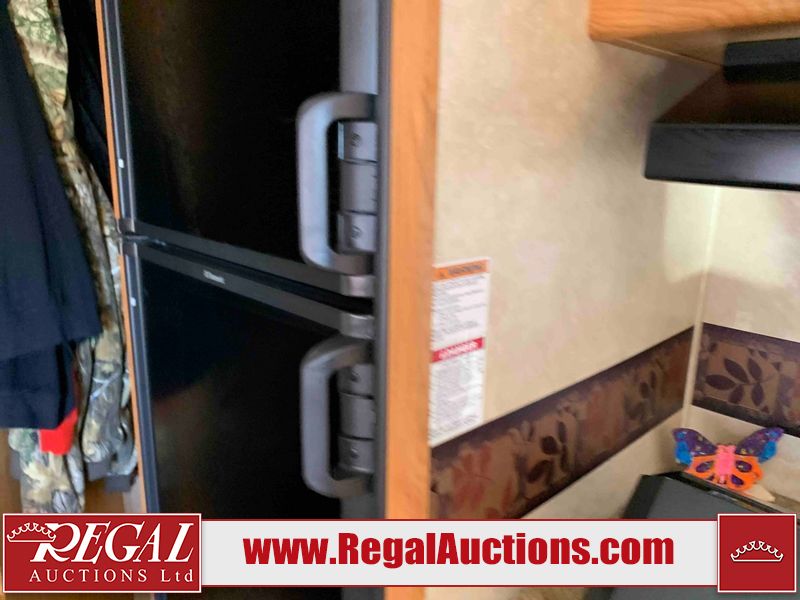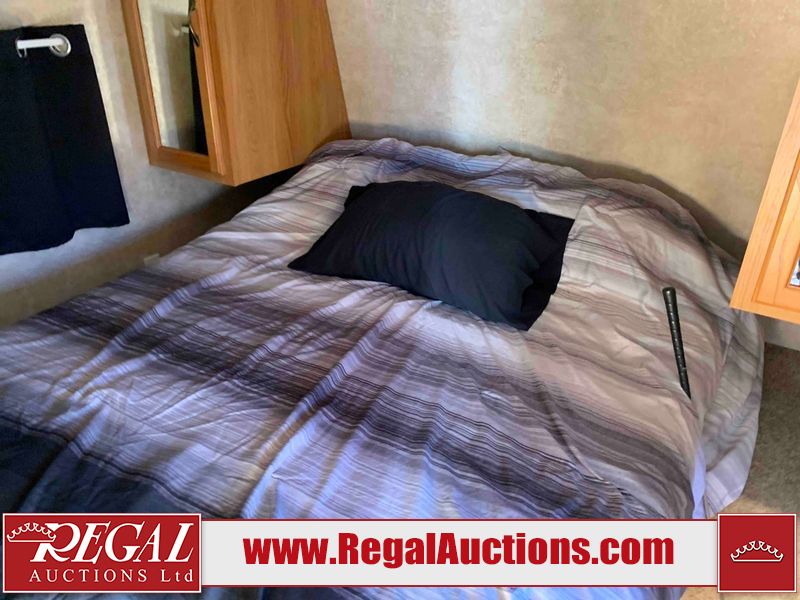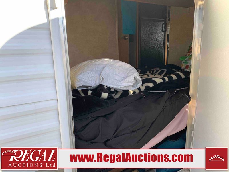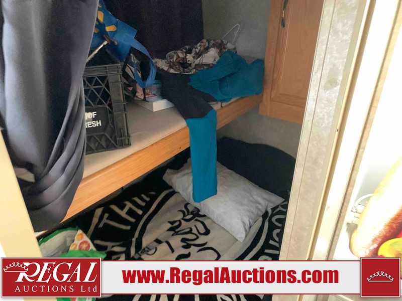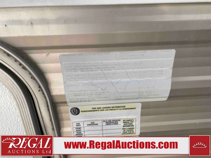 This unit is a 2010 Keystone Springdale 260 Model bumper pull travel trailer. This unit has a single entry door and roof air. The interior is dirty and full of personal items. Some of the wood trim had scratches. The bathroom wall has water damage. The master bedroom wall has missing trim. The exterior walls are made of soft wall aluminum. There are chips on the front wall. All panels have scratches and dents. The plastic fenders are cracked. Steel rims are mounted, the tires appear to be in good enough condition for use. This unit is equipped with 2 propane tanks and a battery. This unit is equipped with a 3 burner stove top, oven, microwave, refrigerator and a stereo system. The layout consists of a master bedroom at the front and a bunkhouse/washroom at the rear.