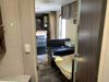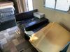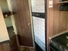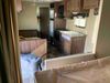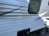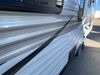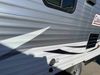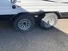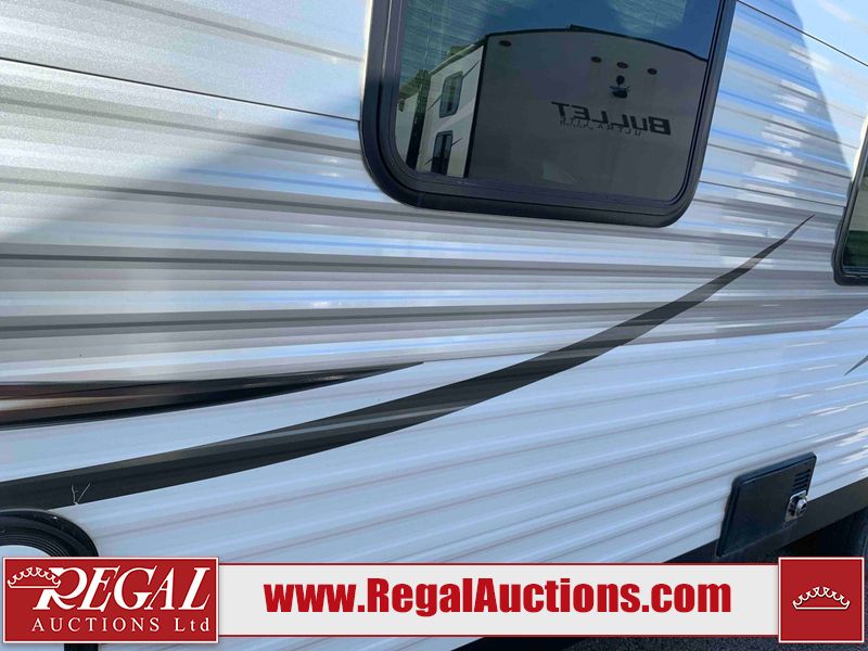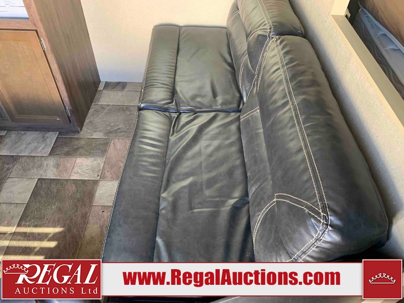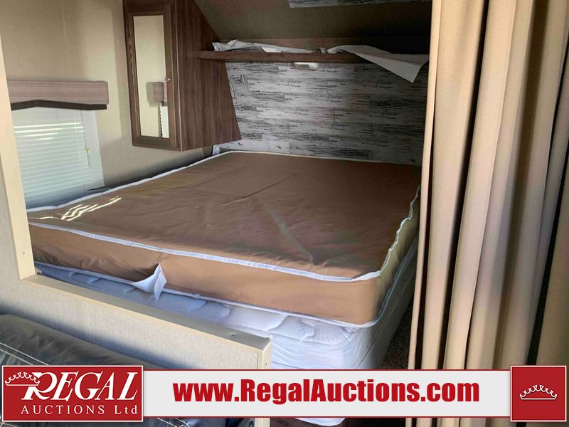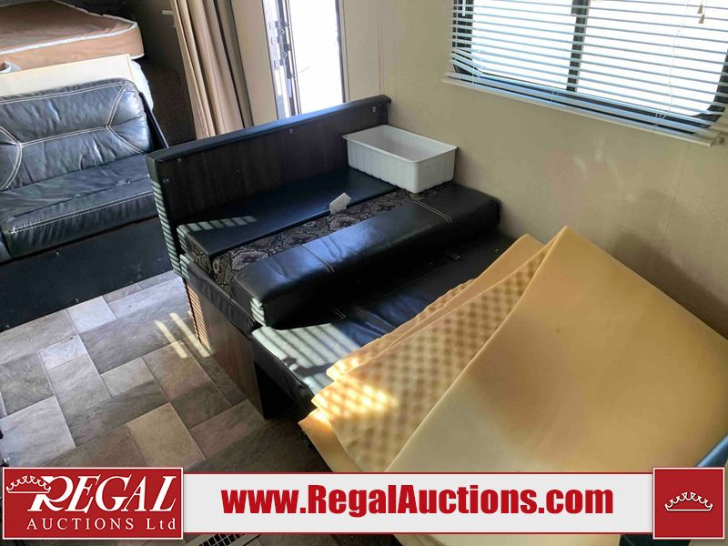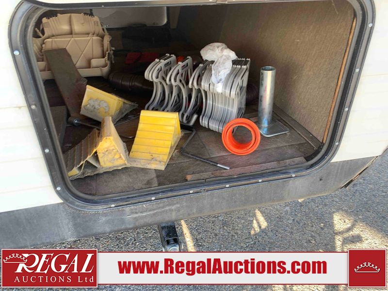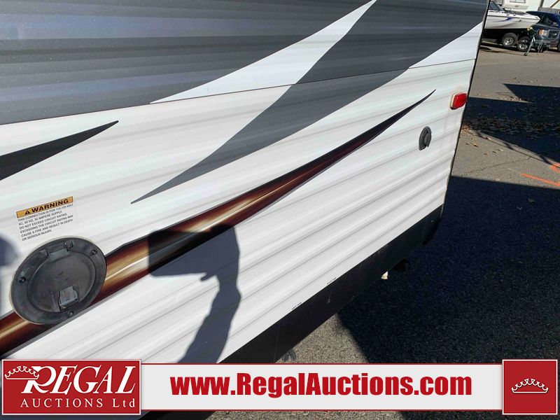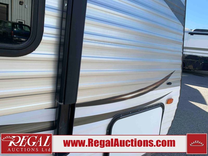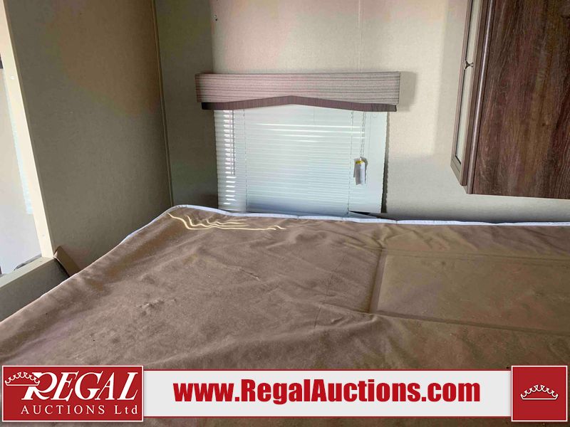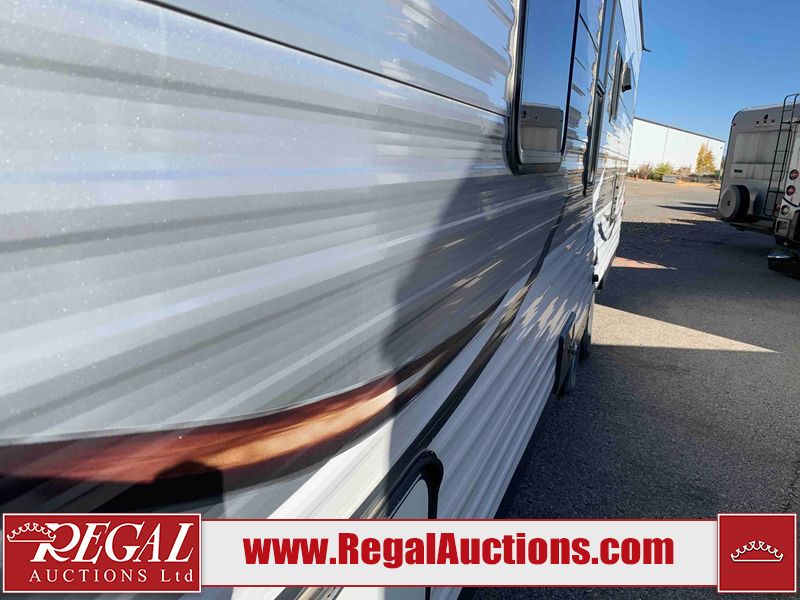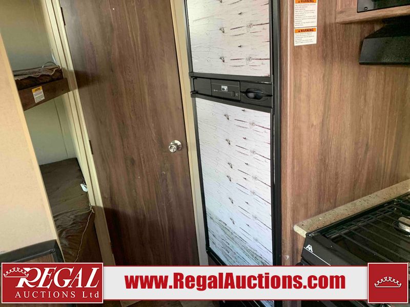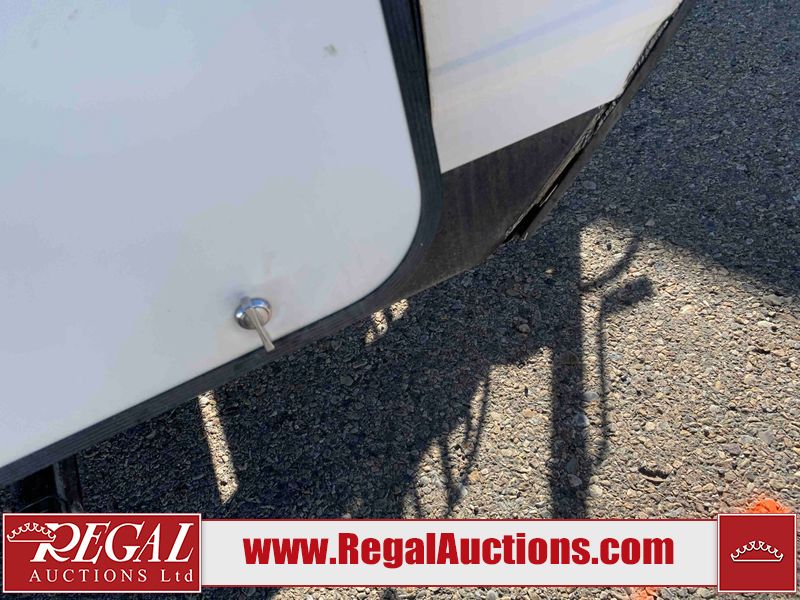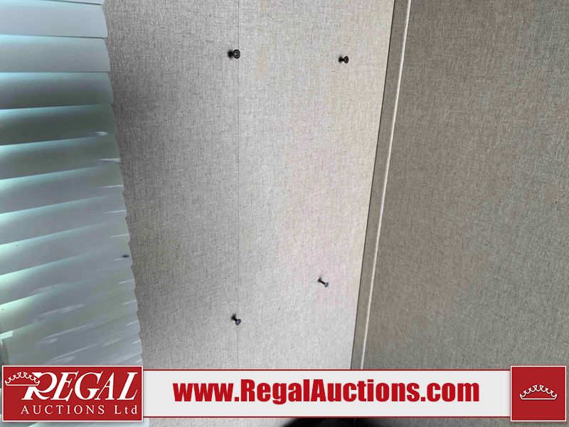 This RV is a 2015 Dutchman Coleman CT 2074BH model tandem axle bumper pull trailer. it has a single door entry, and roof air. The interior is dirty. Some walls show scratches and scuffs. The wallpaper in the master bedroom is peeling. There are two holes in the wall. There are multiple screws in each panel. The couch panel is chipped. The kitchen cabinet and dinette panel are separating. The bathroom sink trim is separating. The exterior walls are made of soft wall aluminum. Most panels are showing scratches and scuffs. The frame has peeling paint. The front, left, and rear wall are showing hail damage. The front left storage cabinet trim is peeling. The right rear wall is gouged. The right rear the right rear storage cabinet trim is peeling. The battery is dead. This unit gets power with external power applied. Both propane tanks are missing. The tires are mounted to alloy rims and appear to be in good enough condition for use. This unit is equipped with a refrigerator, microwave, three burner stove top, oven, and a battery.