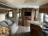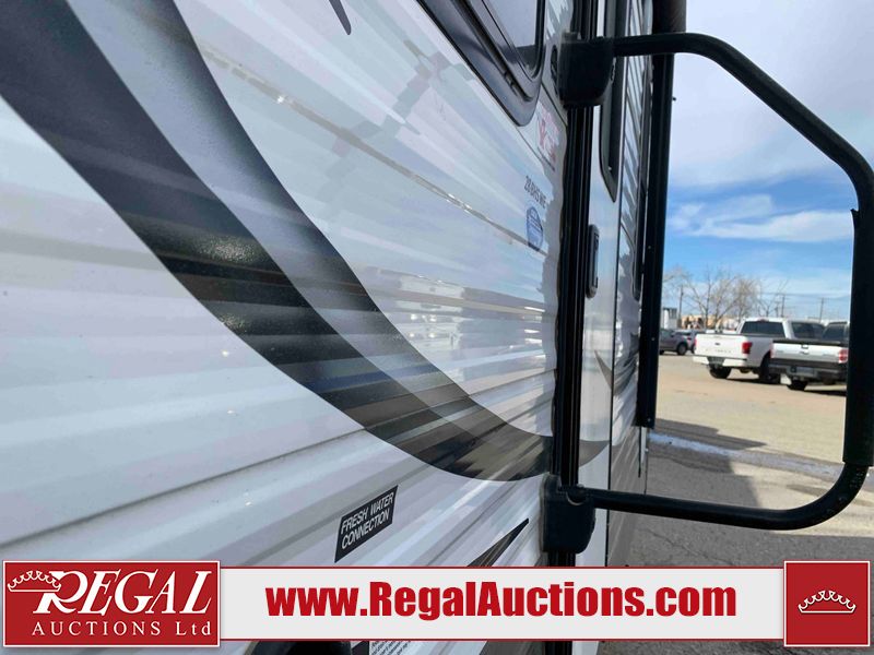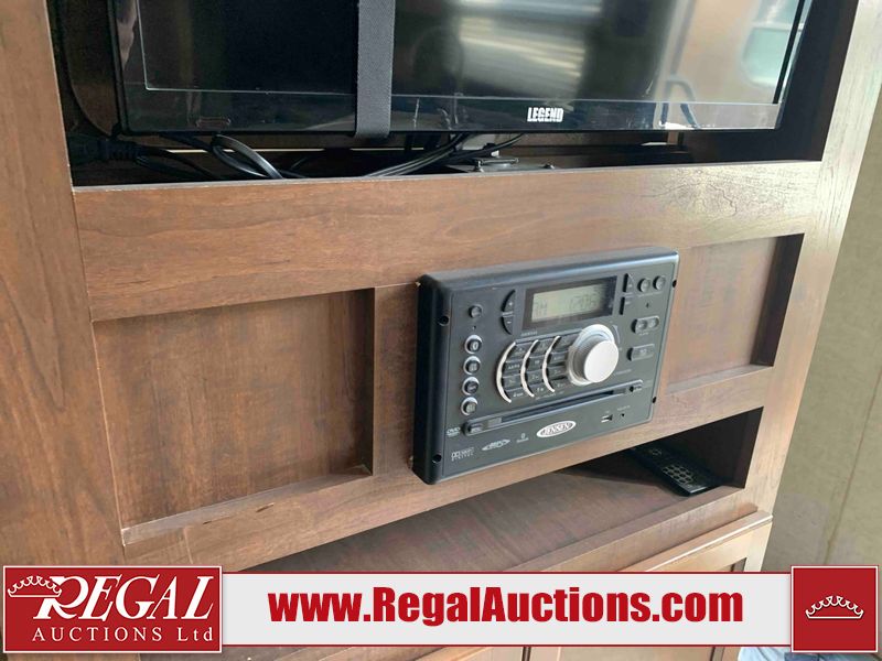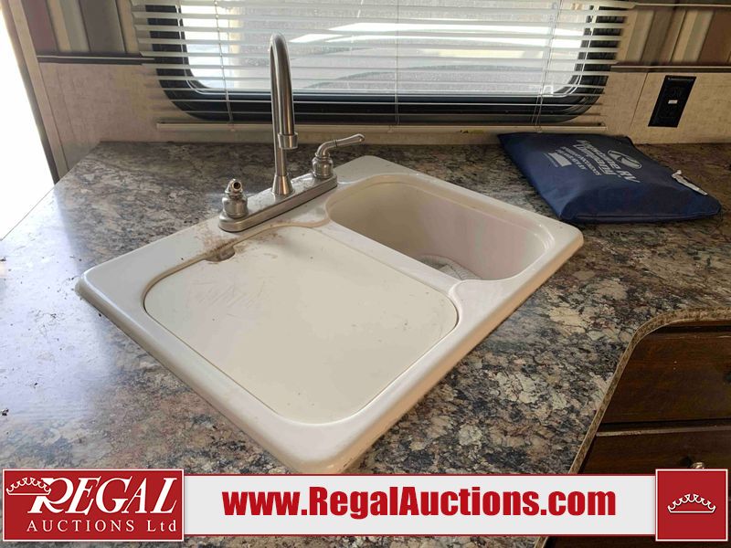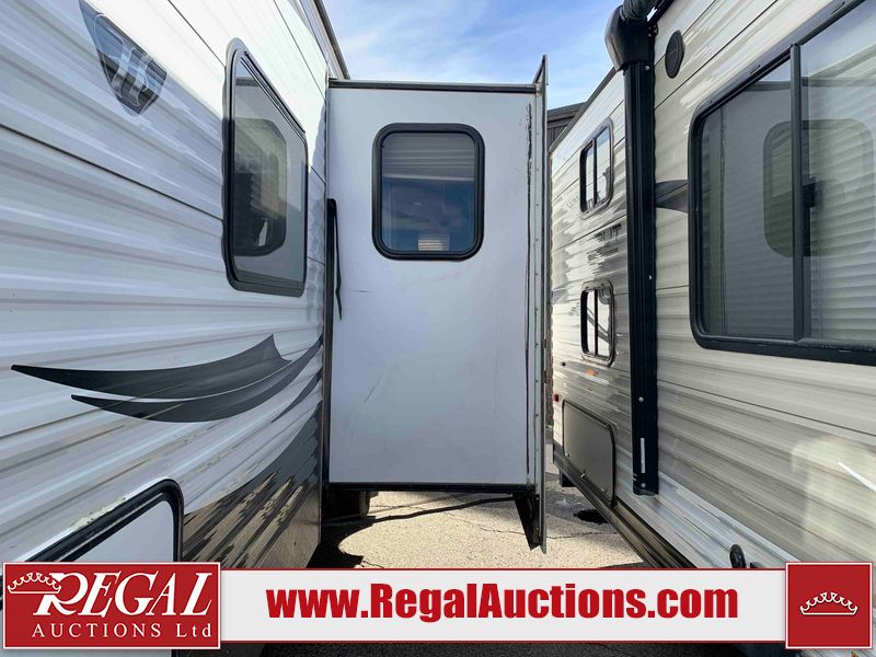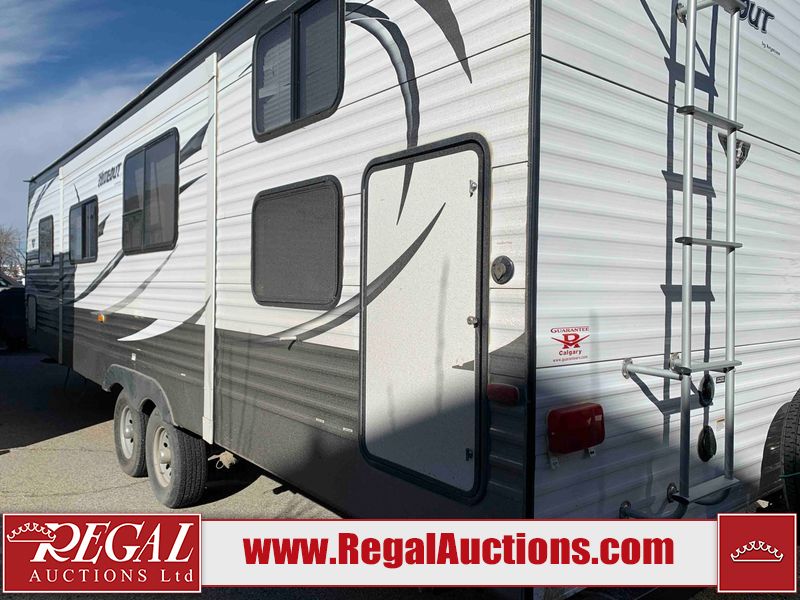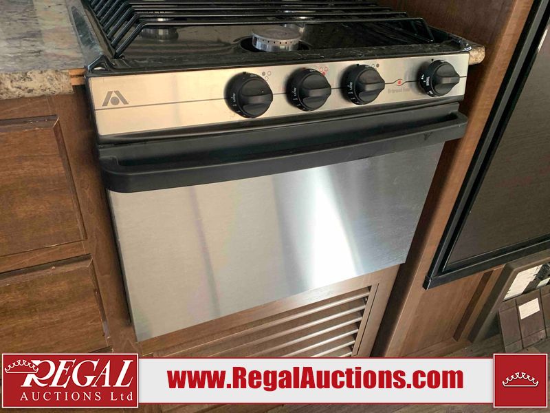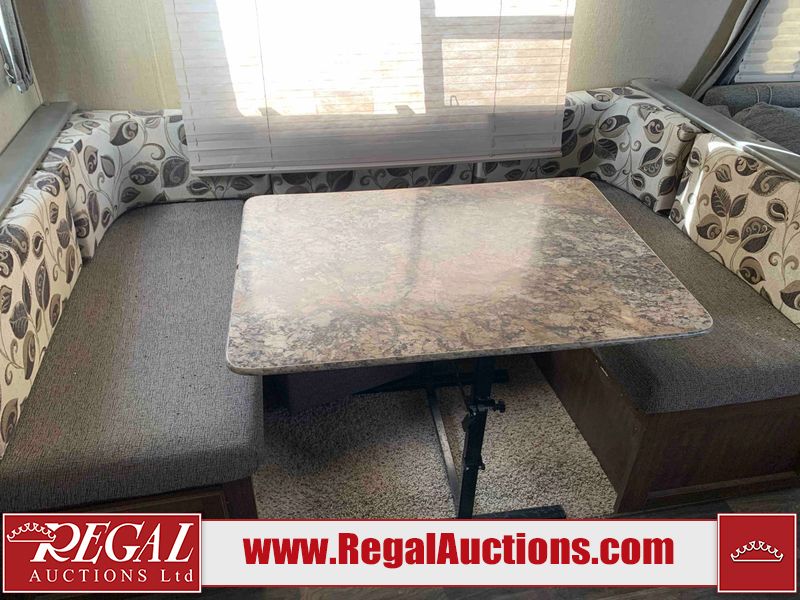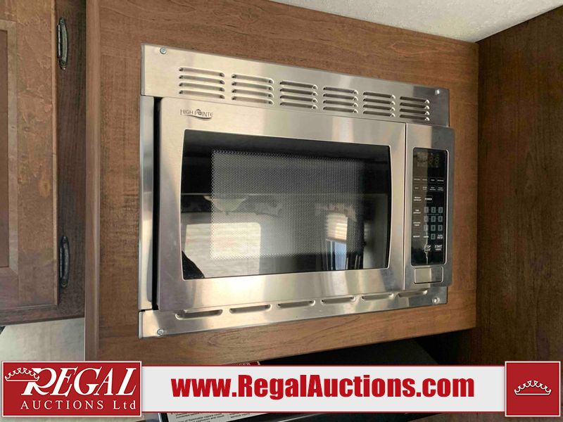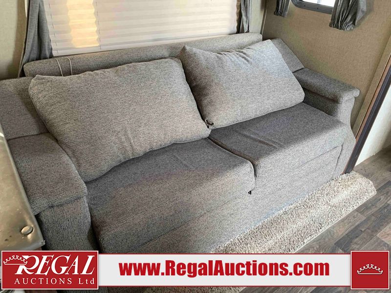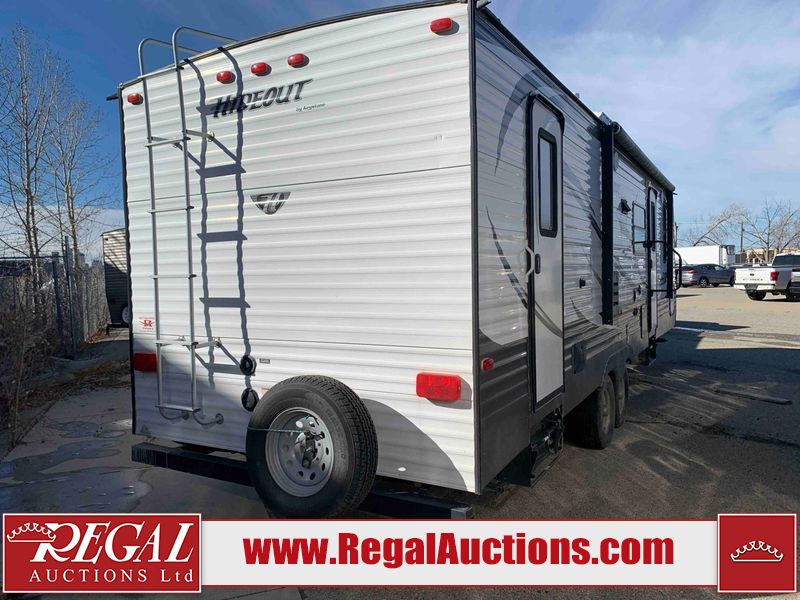 This 32' RV is a 2015 Keystone RV Hideout Series 28BHSWE model bumper pull travel trailer. It has two entry doors, roof air and a single slide out accommodating the living area. There is severe rodent activity throughout the entire trailer. The wood trims are showing scratches and scuffs. The exterior walls are made of soft wall aluminum. The front checker plate has dents. Both side walls and rear wall have dents and scratches. The curb side wall has hail damage. The slide out weather stripping is peeling. The decals are cracked. This unit comes with two batteries and two propane tanks. The tires have been mounted to steel rims and appear to be in good enough condition for use. It is equipped with a stereo system, flat screen television, three burner stove top, microwave, oven and refrigerator. The layout consists of a master bedroom at the front, kitchen/living area in the centre and bunkhouse/bathroom at the rear.