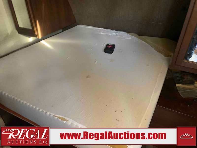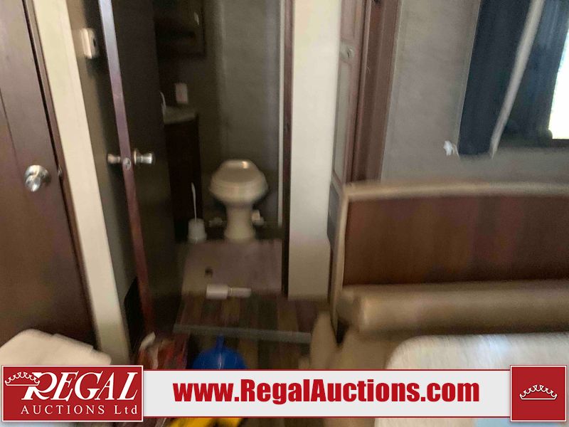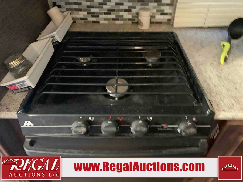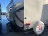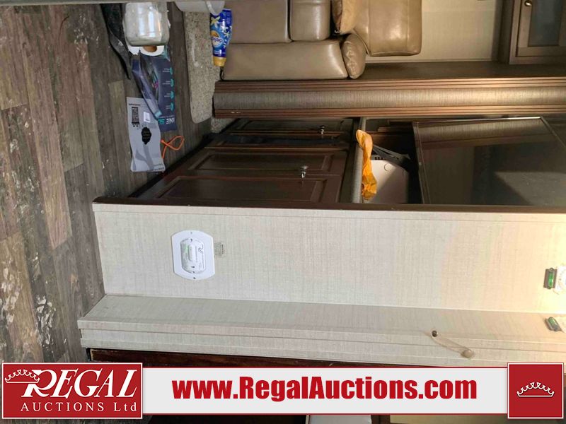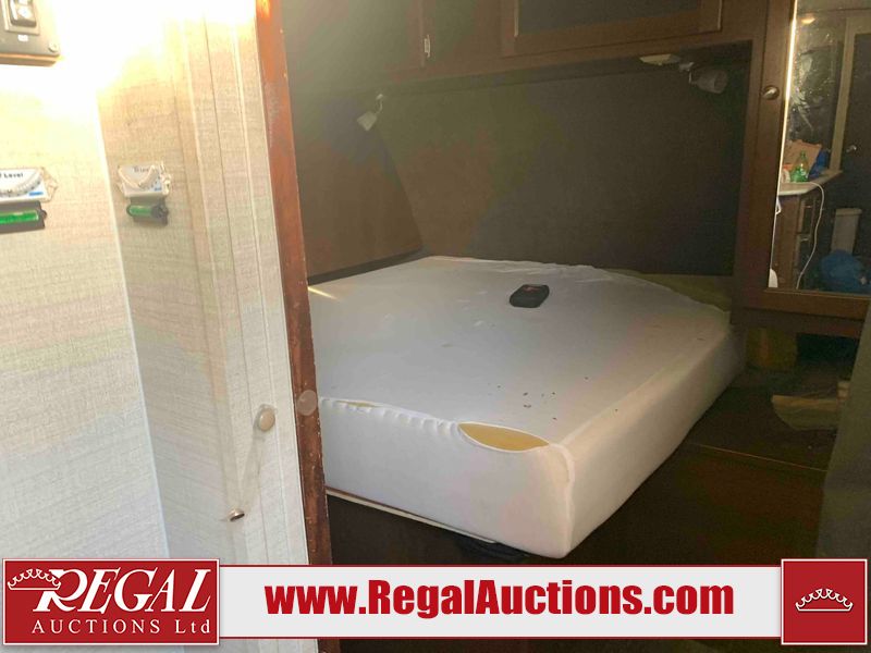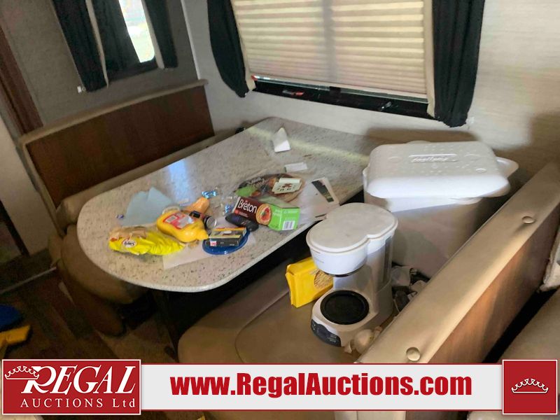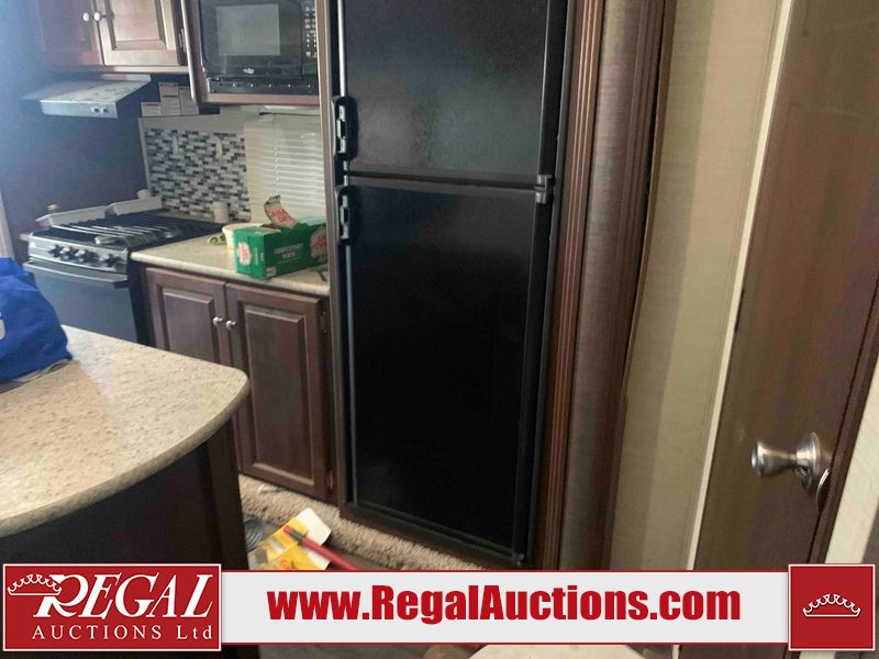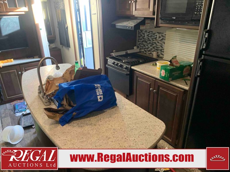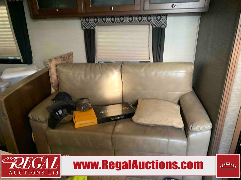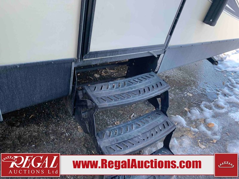 This RV is a 2016 Keystone bullet premier 26RBPR model Tale bumper pull travel trailer. It has a single door entry, roof air, and two slide outs accommodating the living area. The interior is dirty. Some walls are showing scratches and scuffs. The master bed is torn. The ceiling fan is broken. Exterior walls are made of hard wall fiberglass. All walls are sewing scratches and scuffs. The left, rear, and right walls are showing water delamination. The right wall is cracked. The right fender is broken. The left wall slide out does not open all the way, diagnostics will need to be performed to determine its exact issues. This unit is equipped with two batteries, and is missing both propane tanks. The tires are mounted to alloy rims and appear to be in good enough condition for use. This unit is equipped with two televisions, microwave, refrigerator, three burner stove top, oven, and a stereo system. The layout consists of a master bedroom in the front, a kitchenette/dinette in the center, and a bathroom in the rear.