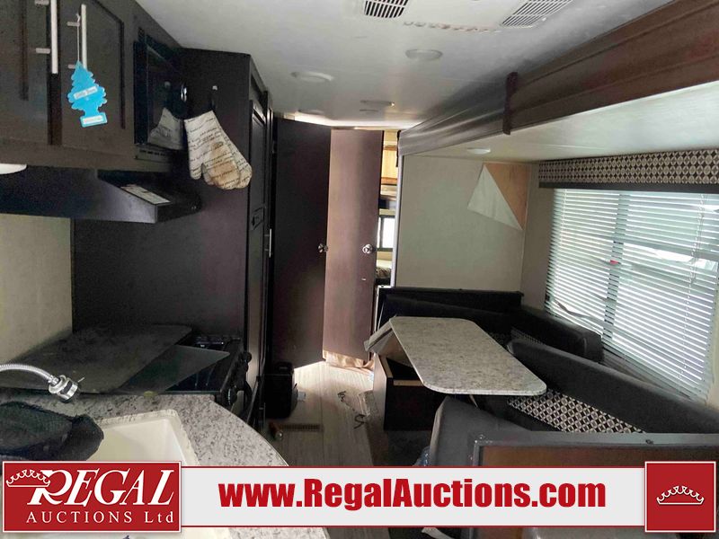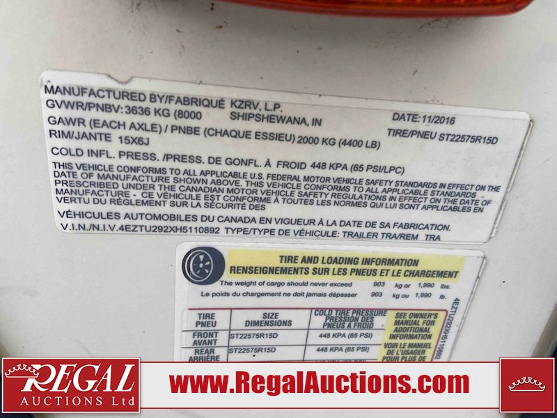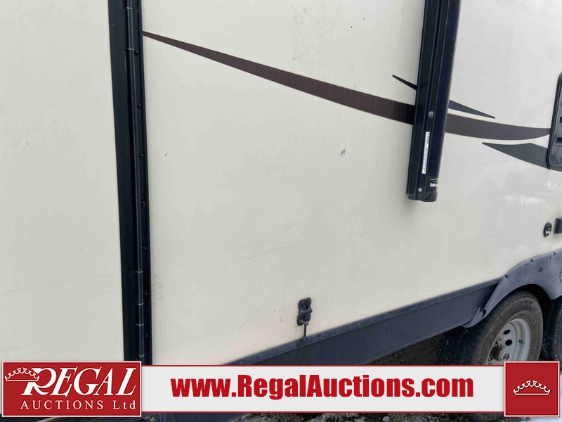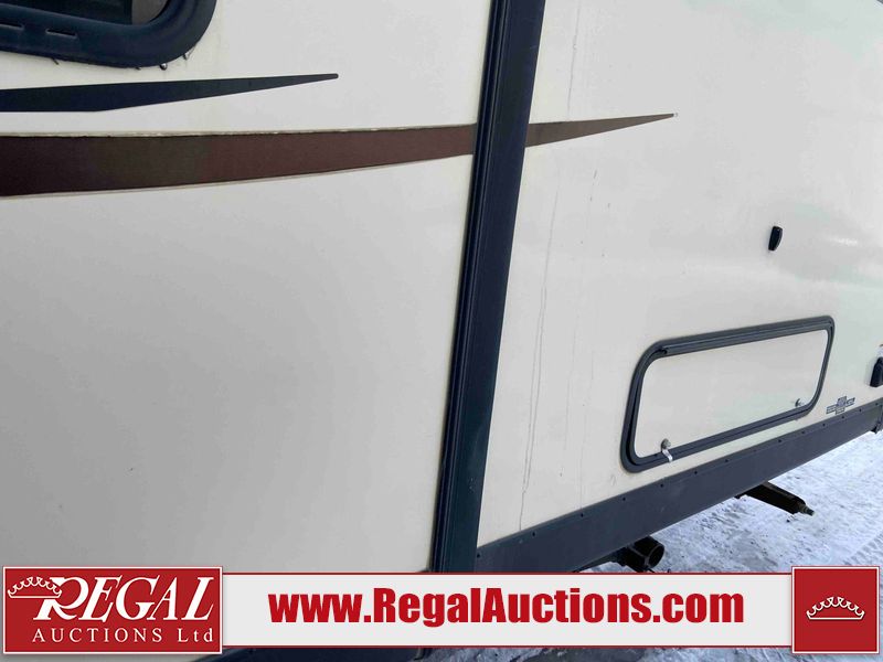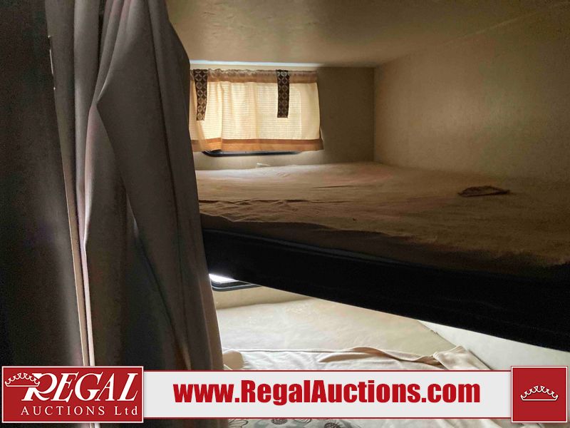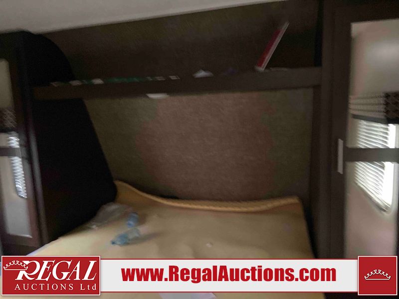 This RV is a 2017 venture RV KZINC model 291BHLW Tottenham axle travel trailer. It has a dual door entry, roof air, and a single slid out accommodating the living area. Interior is dirty. All walls are showing scratches and scuffs. Most window blinds are warped. The master bedroom doorhandle is missing. The TV counter is chipped. One of the power outlets is misaligned. The dinette seats appears to be damaged and are misaligned. The slide out wallpaper is separating. The bunkhouse mattresses are worn. The exterior walls are made hard wall fiberglass. All panels are showing scratches and scuffs. Most decals are peeling. Both the left and right wall are showing water lamination. The right side fender is cracked. The slide outs cannot be tested. The battery is disconnected and placed into storage. ?The terminals appear to be frayed. The propane tanks are missing. This unit unit is equipped with a microwave, refrigerator, three burner stove, top, oven, and a stereo system. Layout consist of a master bedroom in the front, living area/kitchenette/diet in the center, and a bunkhouse/bathroom in the rear.