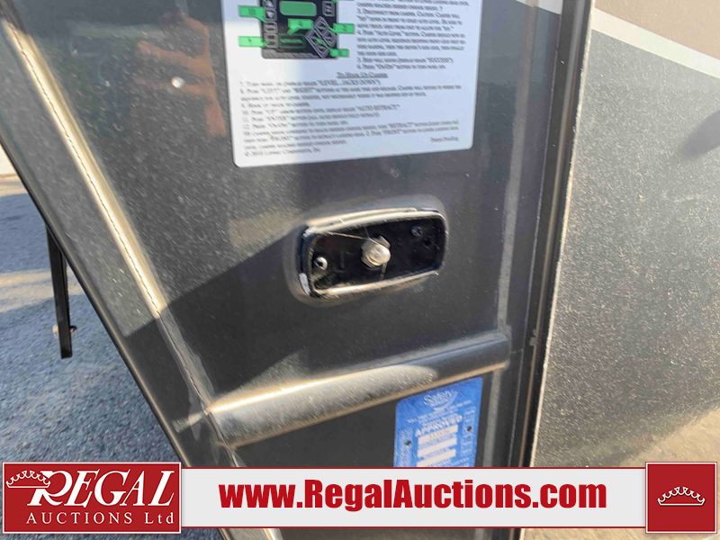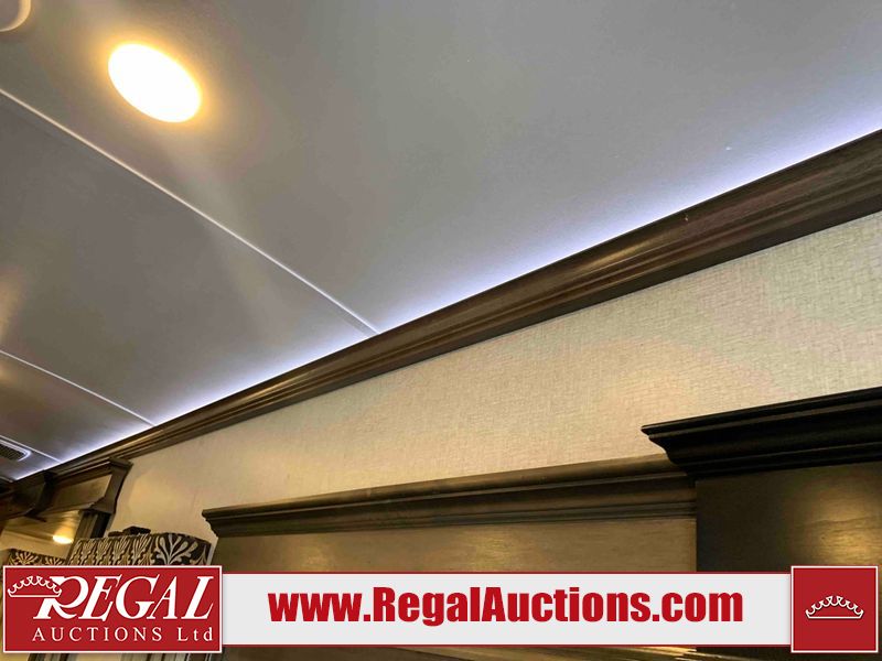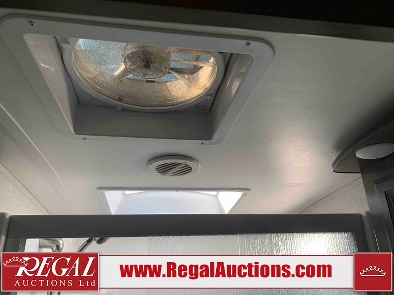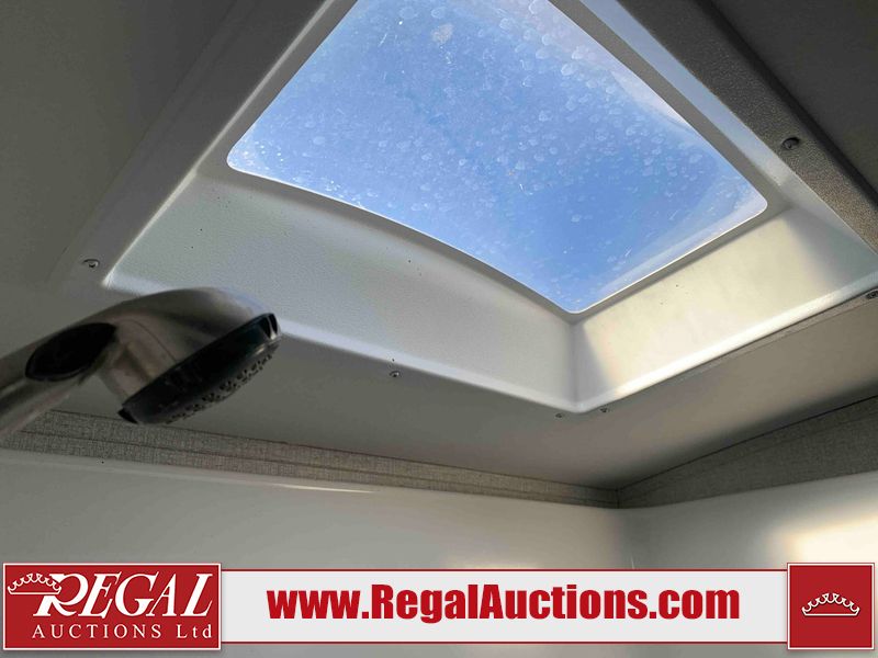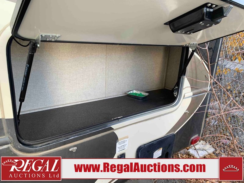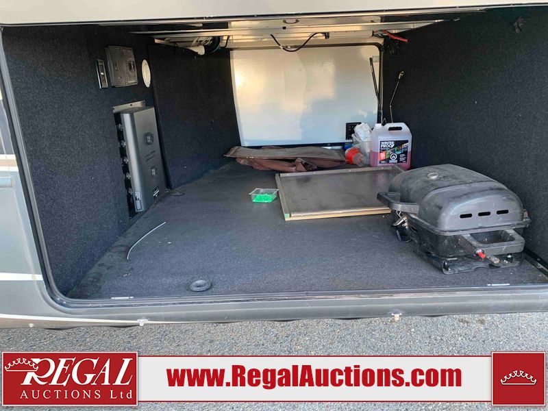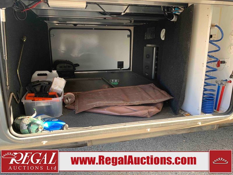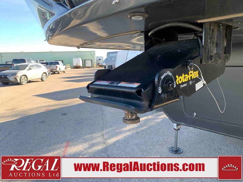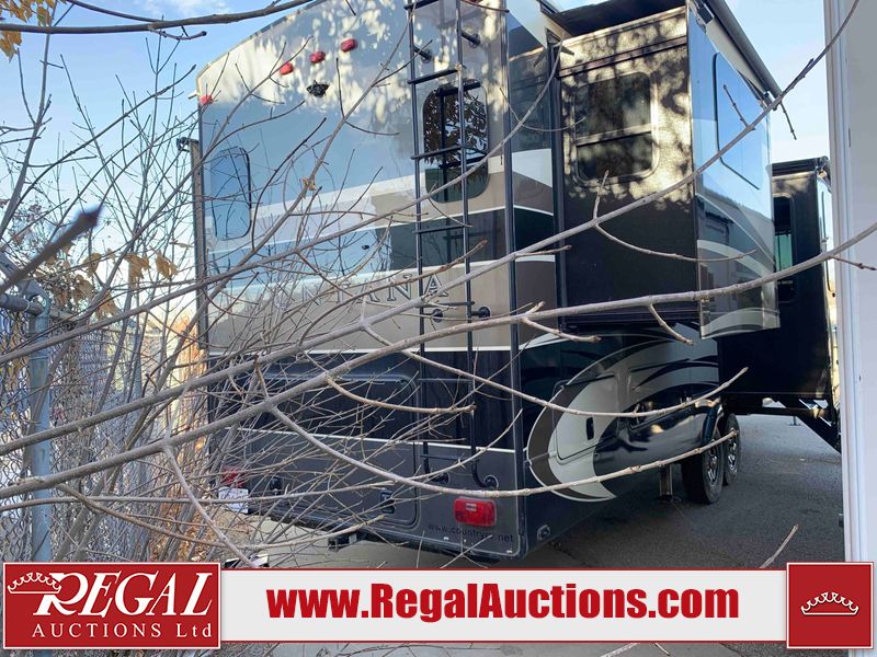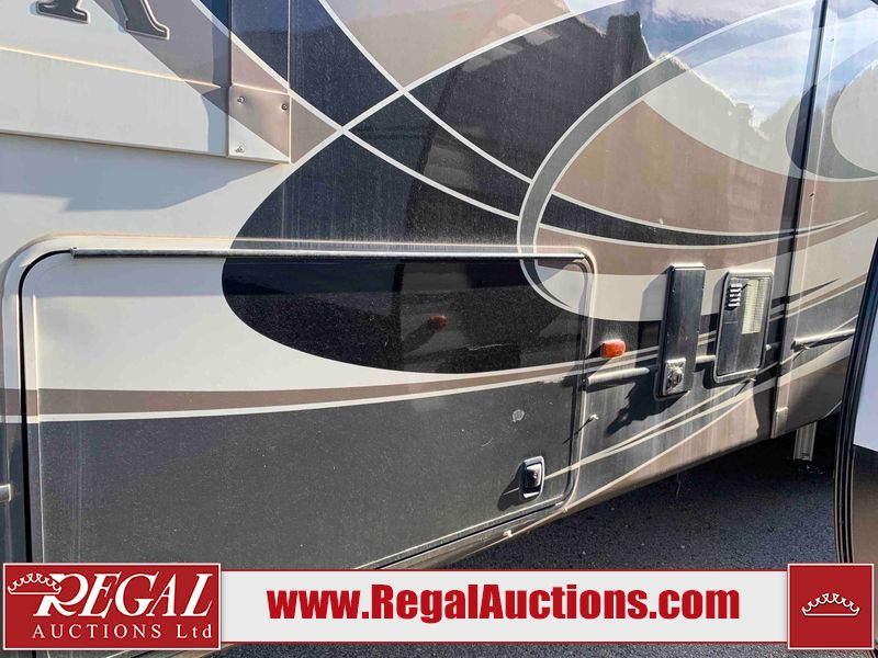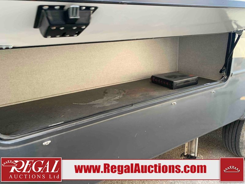 This unit is a 2018 Keystone Montana 3791RD model fifth wheel trailer. It has a single door entry and five slide outs accommodating the master bedroom, kitchenette/dying it, and living area. The interior is dirty. Some walls are showing scratches and scuffs. The master bed is missing. The bathroom skylight is broken. The bathroom fan trim is cracked. The kitchenette cupboards have paint peeling. The stove counter top is cracked. The dinette counter is stained and scuffed. Exterior walls are made of hard wall fibreglass. All walls are showing scratches and scuffs. The front wall and weatherstripping is cracked. The left wall has water de-lamination. The left wall storage compartment has peeling paint. The left fender is cracked. The left front and right rear reflectors are broken. The right front panel has dents. The tires are mounted to alloy rims and appear to be in good enough condition for use. This unit is missing one propane tank. This unit is equipped with a two televisions, microwave, three burner stove top, oven, refrigerator, and an electrical fireplace. The layout consist of a master bedroom/bathroom in the front, kitchenette/dinette in the centre, and a living area in the rear.