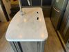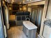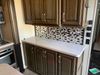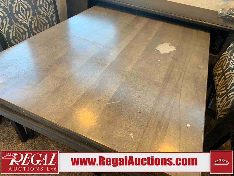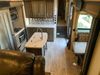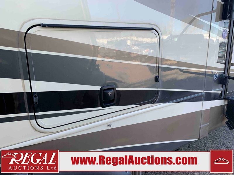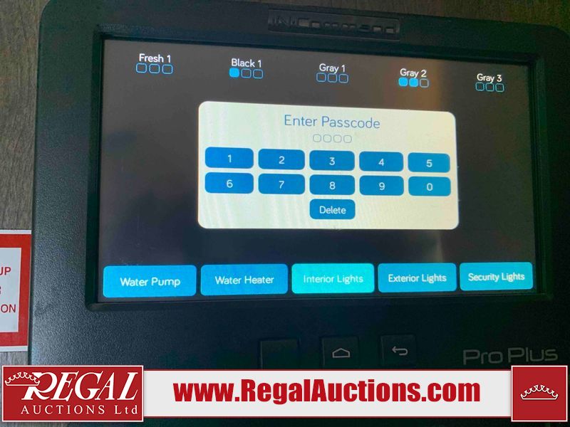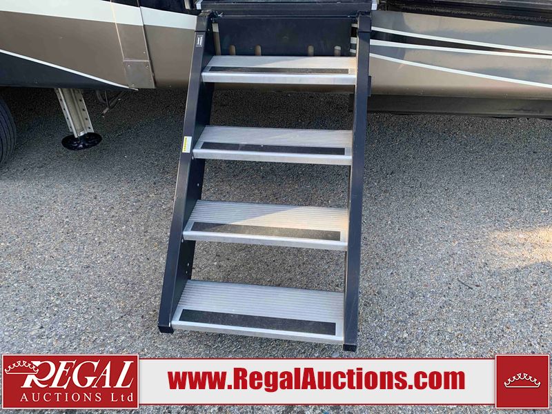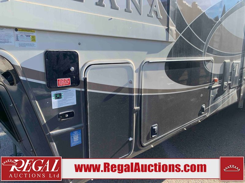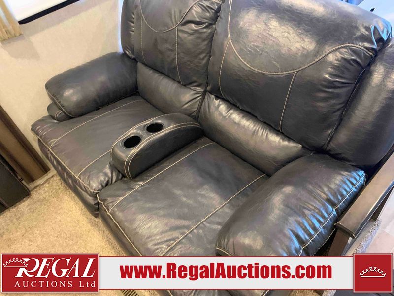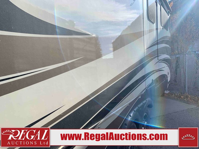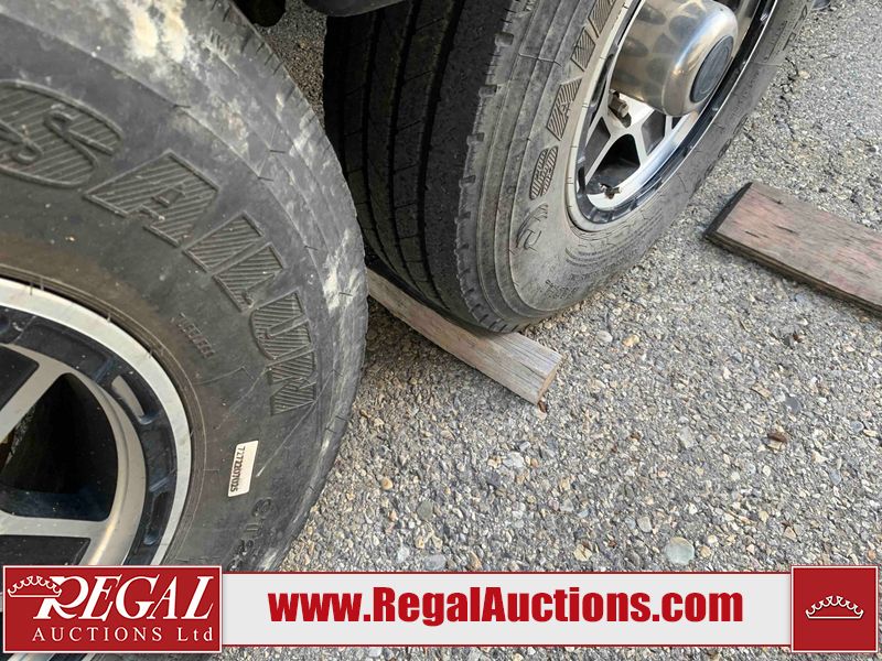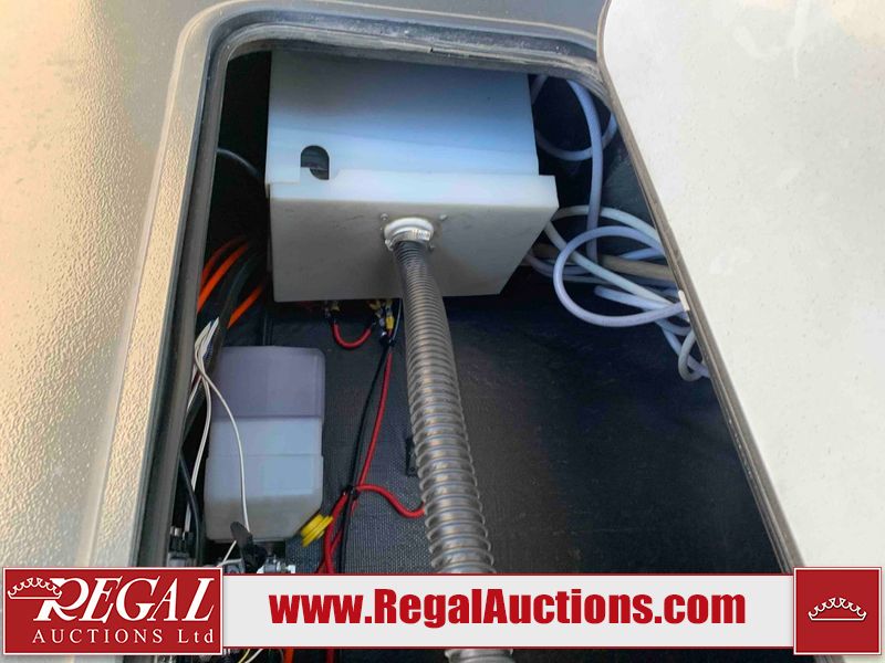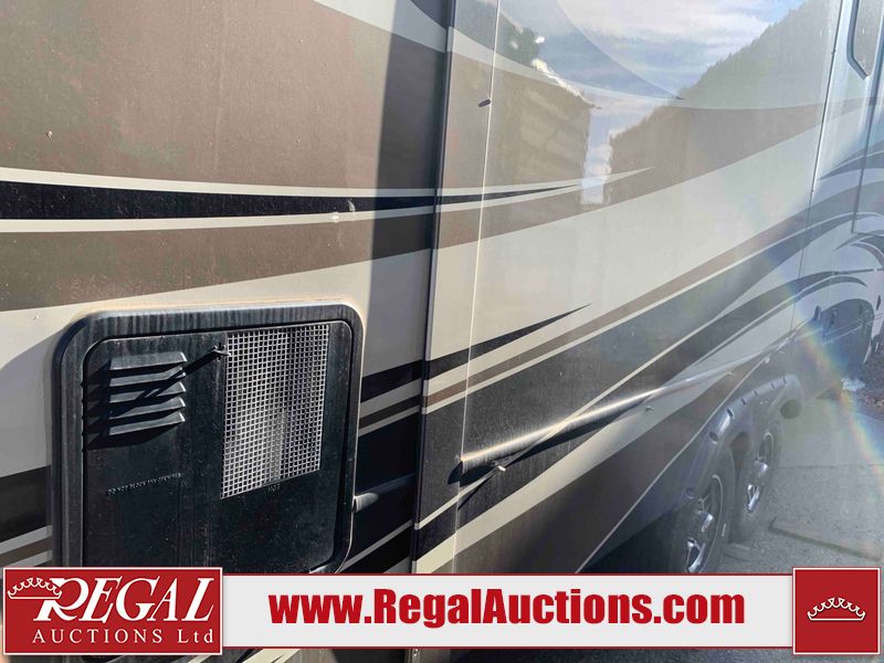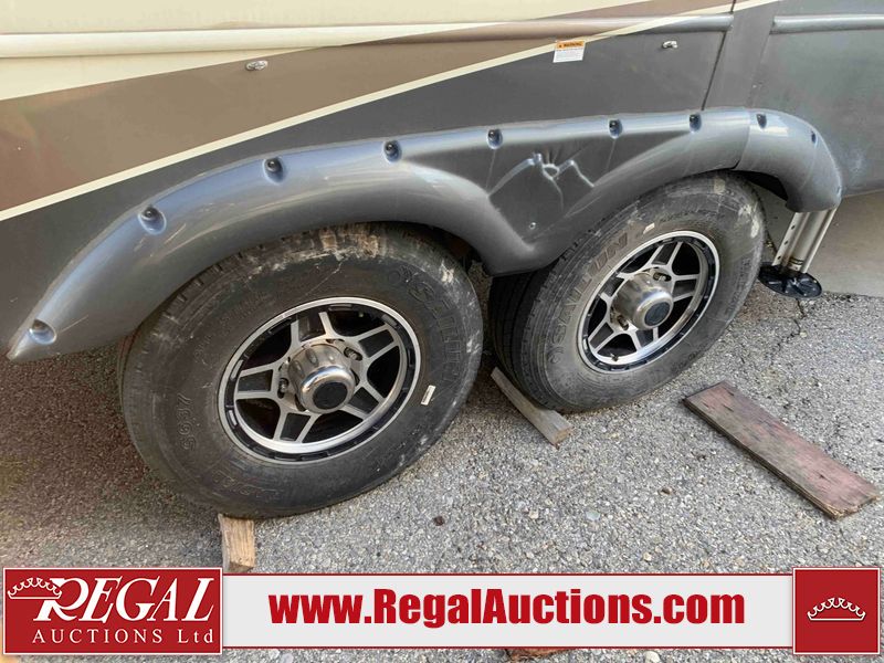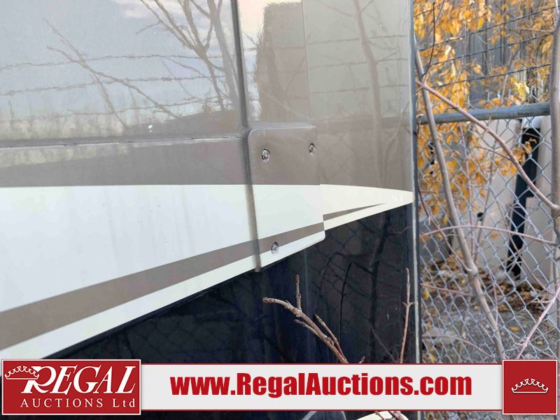 This unit is a 2018 Keystone Montana 3791RD model fifth wheel trailer. It has a single door entry and five slide outs accommodating the master bedroom, kitchenette/dying it, and living area. The interior is dirty. Some walls are showing scratches and scuffs. The master bed is missing. The bathroom skylight is broken. The bathroom fan trim is cracked. The kitchenette cupboards have paint peeling. The stove counter top is cracked. The dinette counter is stained and scuffed. Exterior walls are made of hard wall fibreglass. All walls are showing scratches and scuffs. The front wall and weatherstripping is cracked. The left wall has water de-lamination. The left wall storage compartment has peeling paint. The left fender is cracked. The left front and right rear reflectors are broken. The right front panel has dents. The tires are mounted to alloy rims and appear to be in good enough condition for use. This unit is missing one propane tank. This unit is equipped with a two televisions, microwave, three burner stove top, oven, refrigerator, and an electrical fireplace. The layout consist of a master bedroom/bathroom in the front, kitchenette/dinette in the centre, and a living area in the rear.